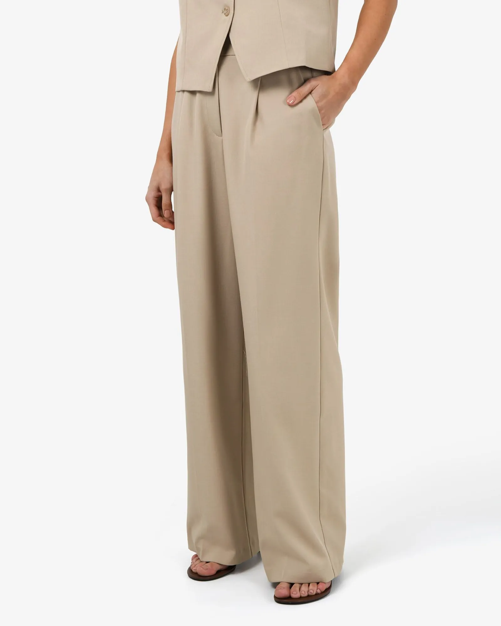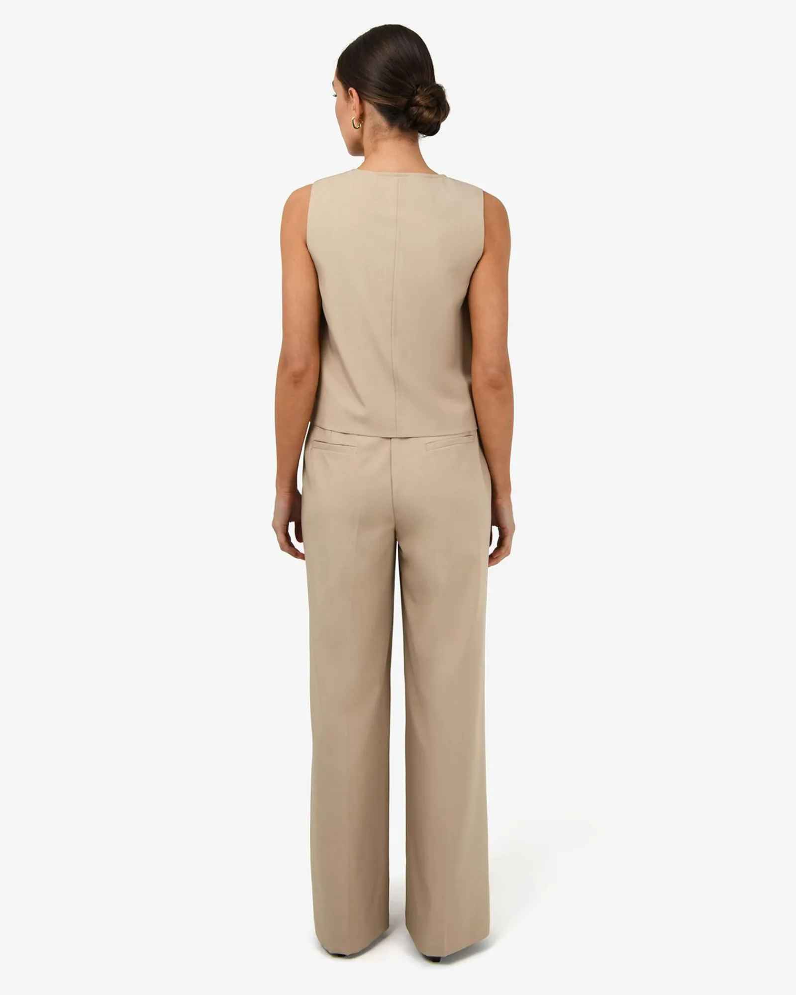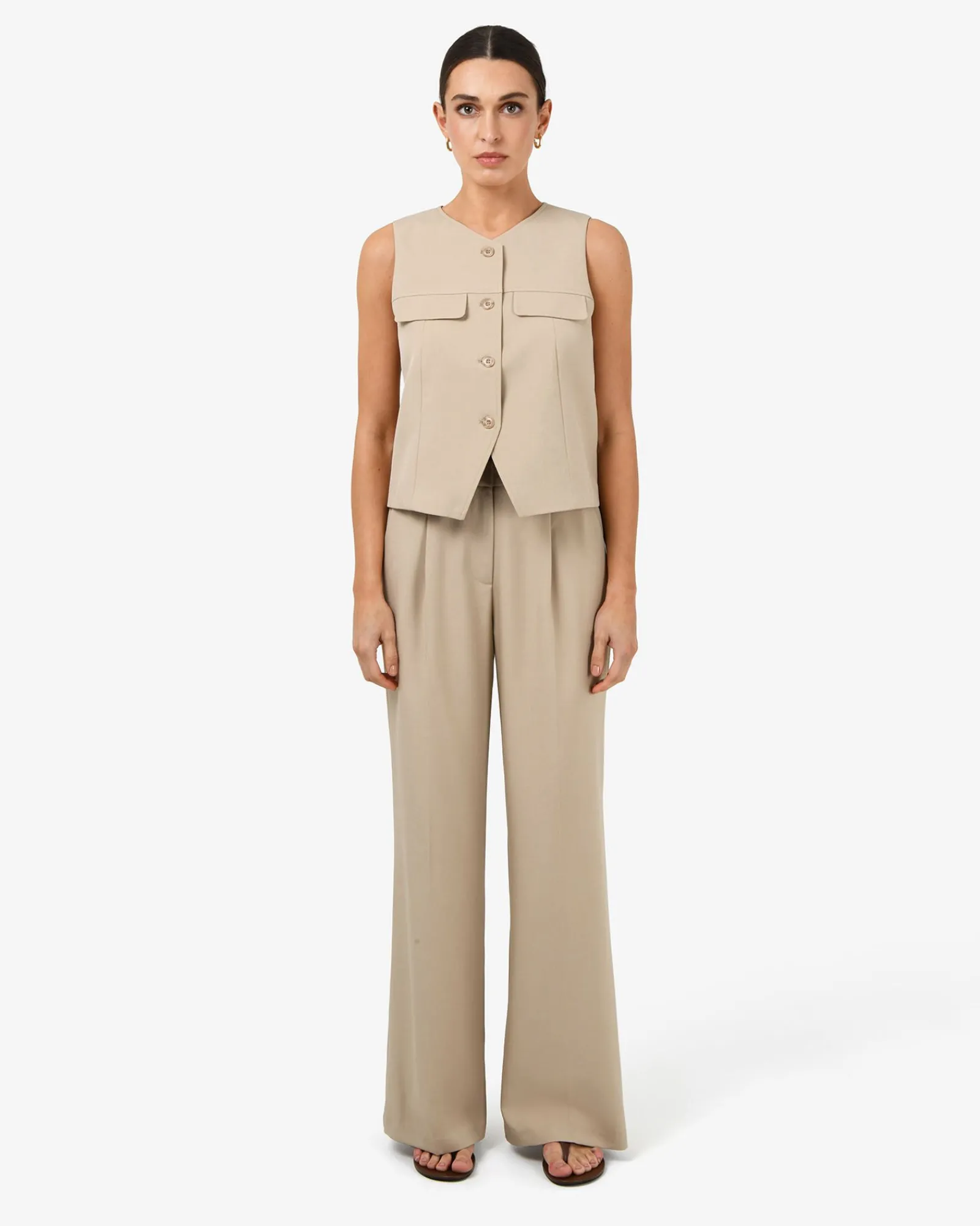 The Abel Straight Leg Pants feature front pleats, a relaxed straight leg cut, and a fixed waistband with decorative buttons for a polished finish. Lightweight with stretch and functional side pockets, they’re effortlessly versatile and can be styled with your essential tops, blouses and cardigans, or ideally paired with the matching Abel Relaxed Pocket Vest.