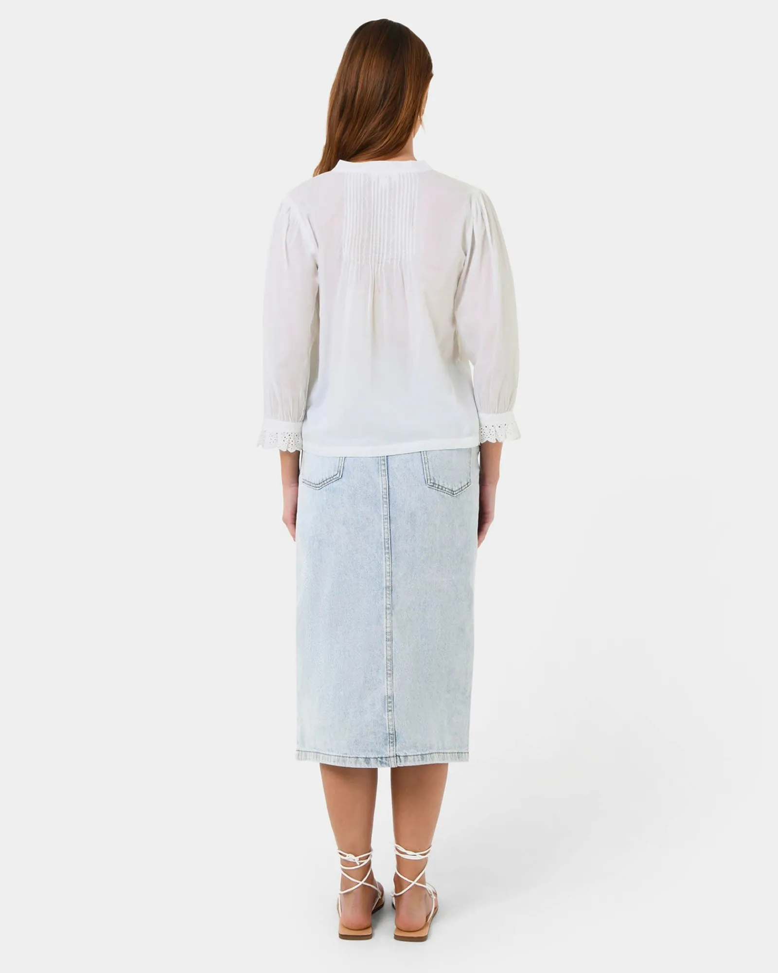 - Gathered detail with intricate embroidery detail on sleeves