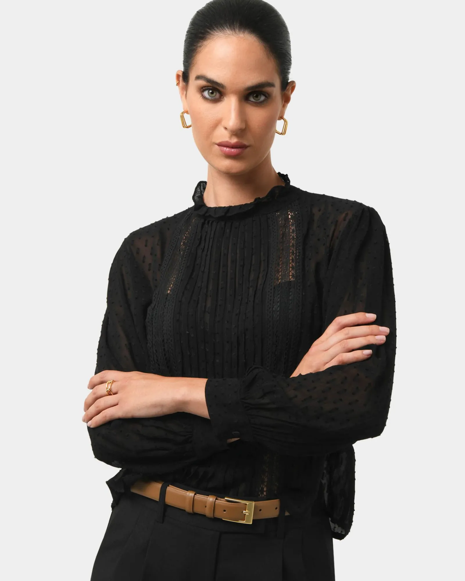 Add a touch of elegance with the Aliana Lace Blouse, a stunning piece that effortlessly combines femininity and sophistication. Whether dressing up for a special event or adding a chic touch to your everyday look, the blouse can be easily paired with tailored pants for the office or a trendy skirt for an evening out.