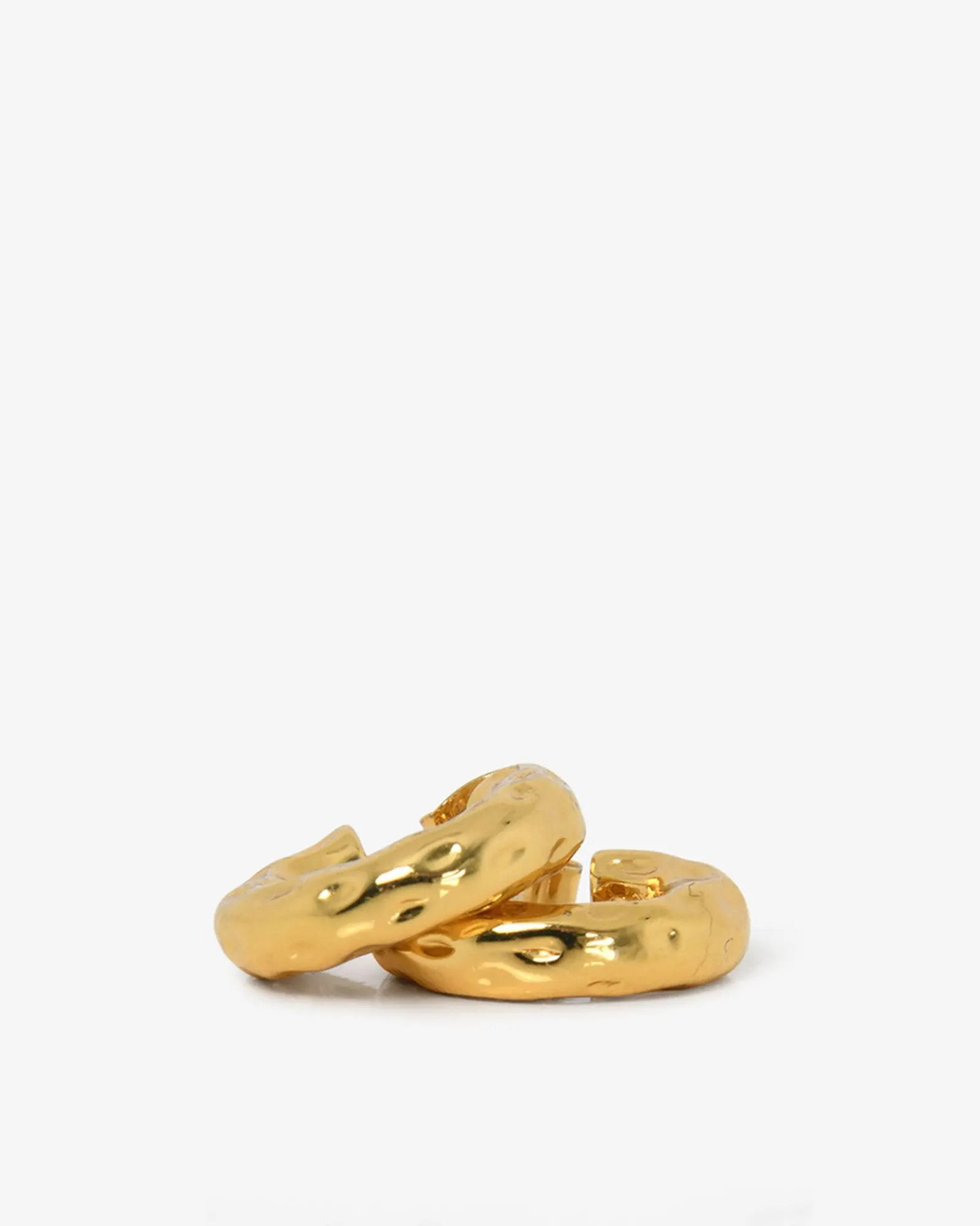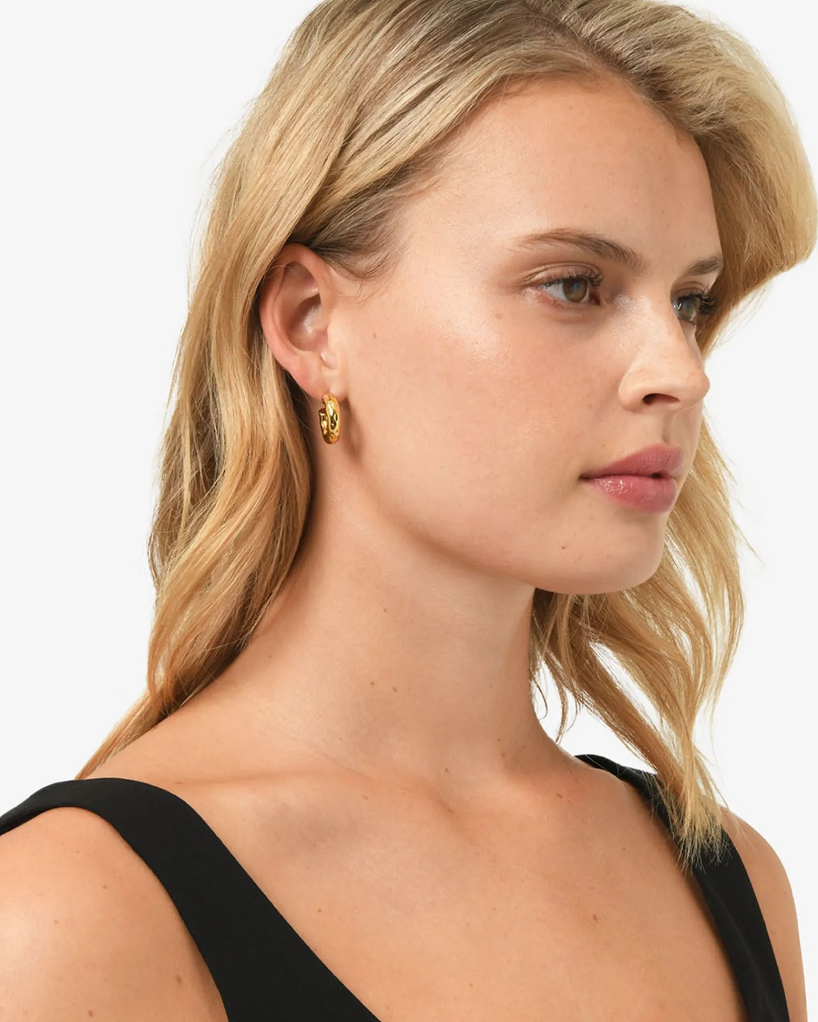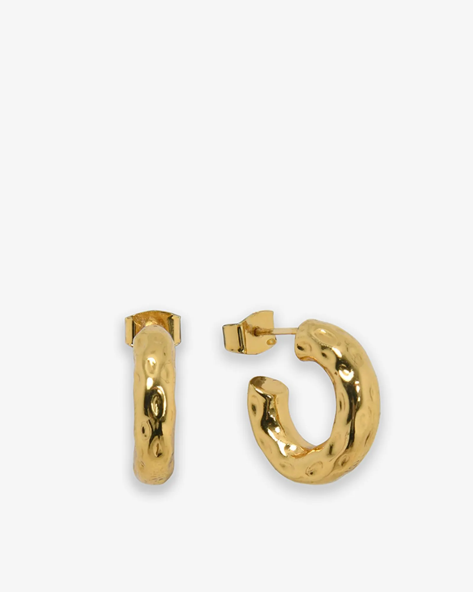 A refined take on everyday glam. Amaris Gold Hoop Earrings combine a classic silhouette with an artful hammered finish that reflects the light with every move. Lightweight and luminous, they’re perfect for elevating your look.