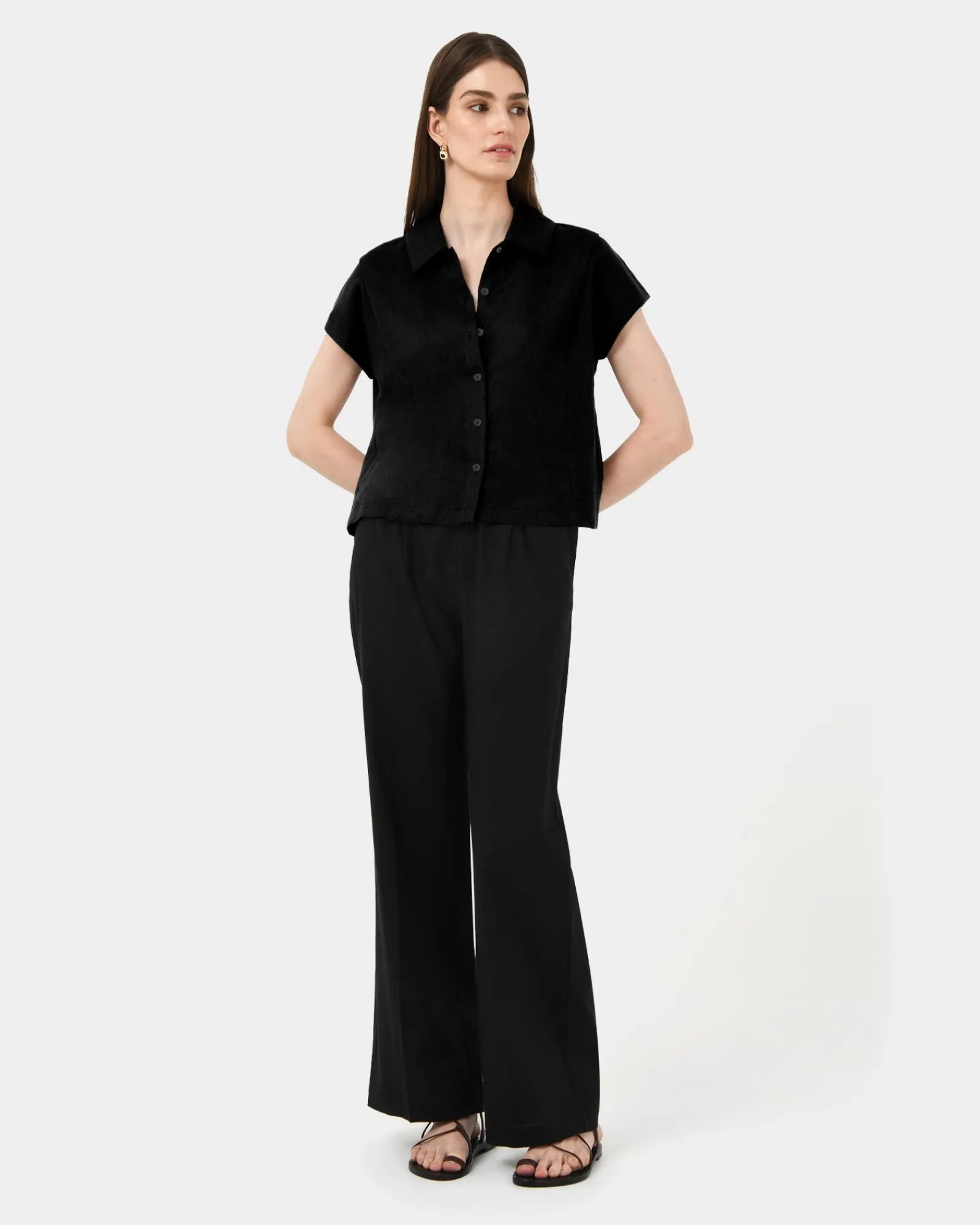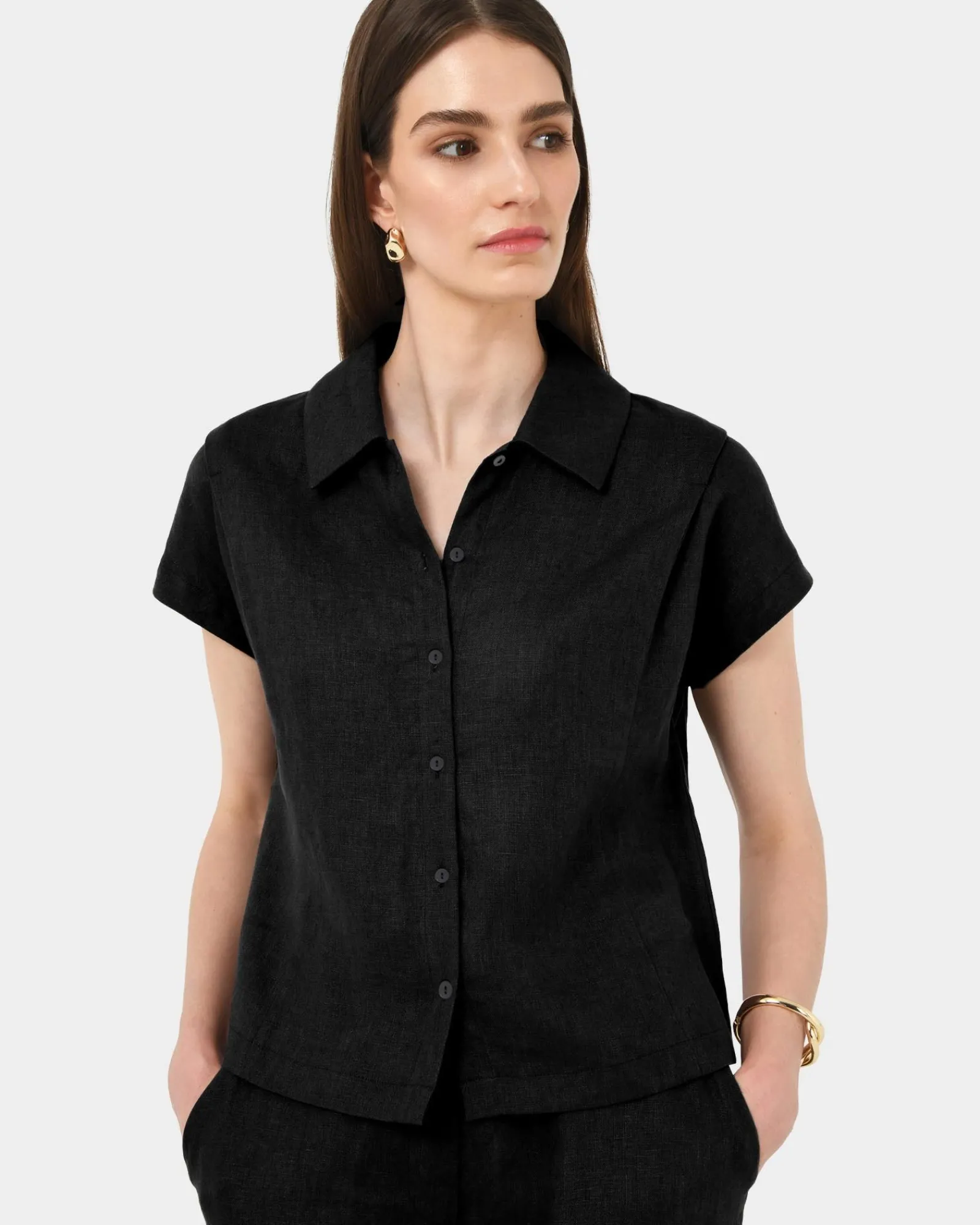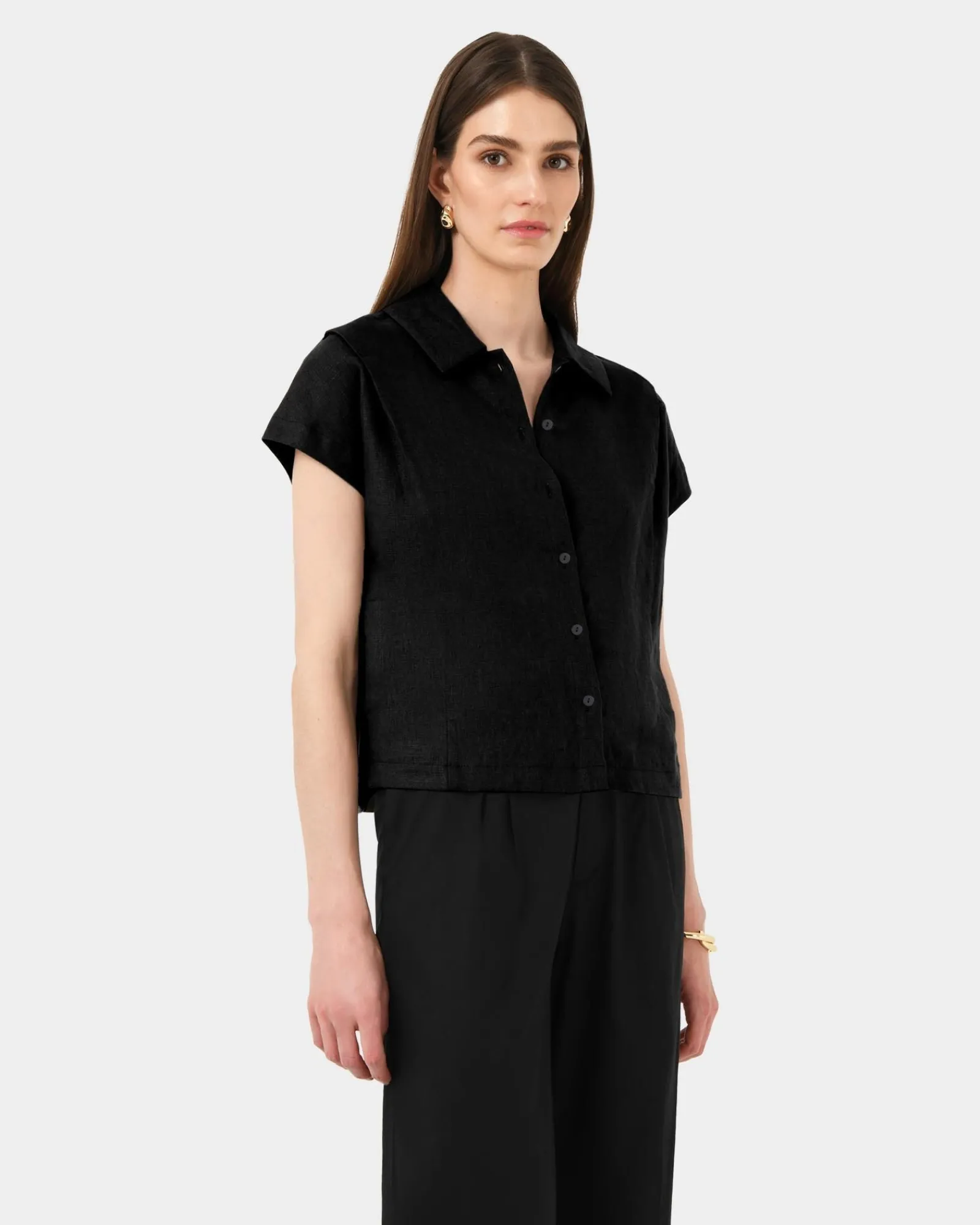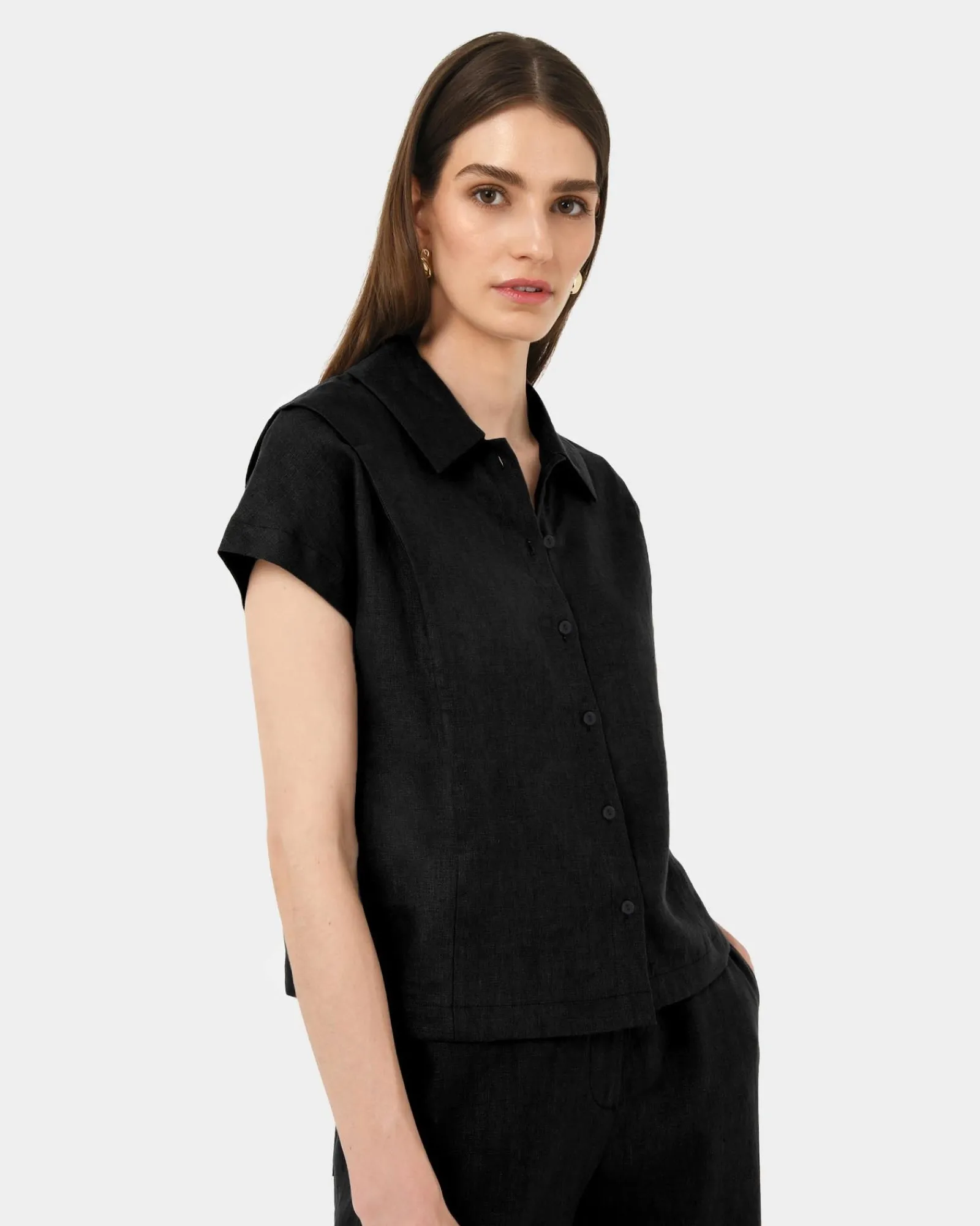 The Ami Linen Collar Shirt is made from 100% Linen and features a classic collar, shoulder pleat details and a button-down front. With its relaxed fit and slightly cropped in length, it pairs perfectly with the matching Ami Wide Leg Linen Pants, or can be styled with shorts or lightweight pants for a fresh, high-summer look.
