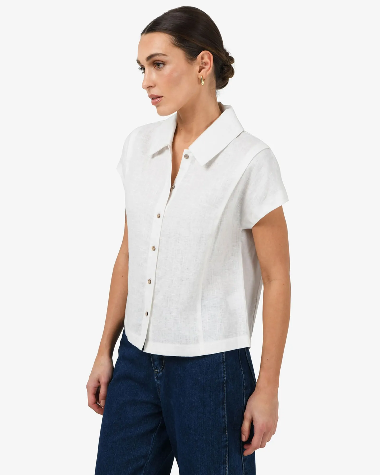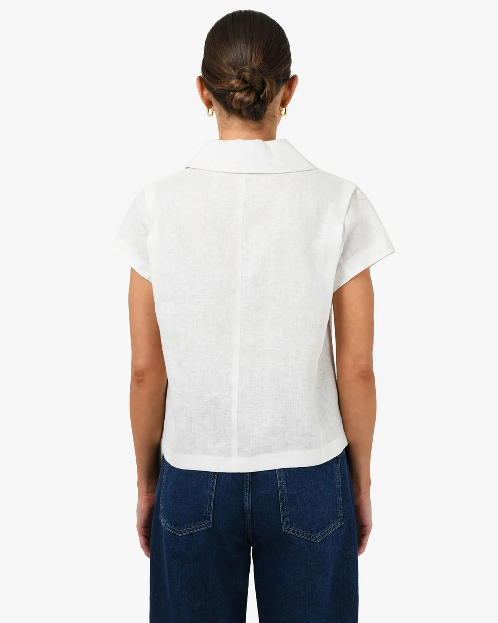The Ami Linen Collar Shirt is made from 100% Linen and features a classic collar, shoulder pleat details and a button-down front. With its relaxed fit and slightly cropped in length, it pairs perfectly with the matching Ami Wide Leg Linen Pants, or can be styled with shorts or lightweight pants for a fresh, high-summer look.