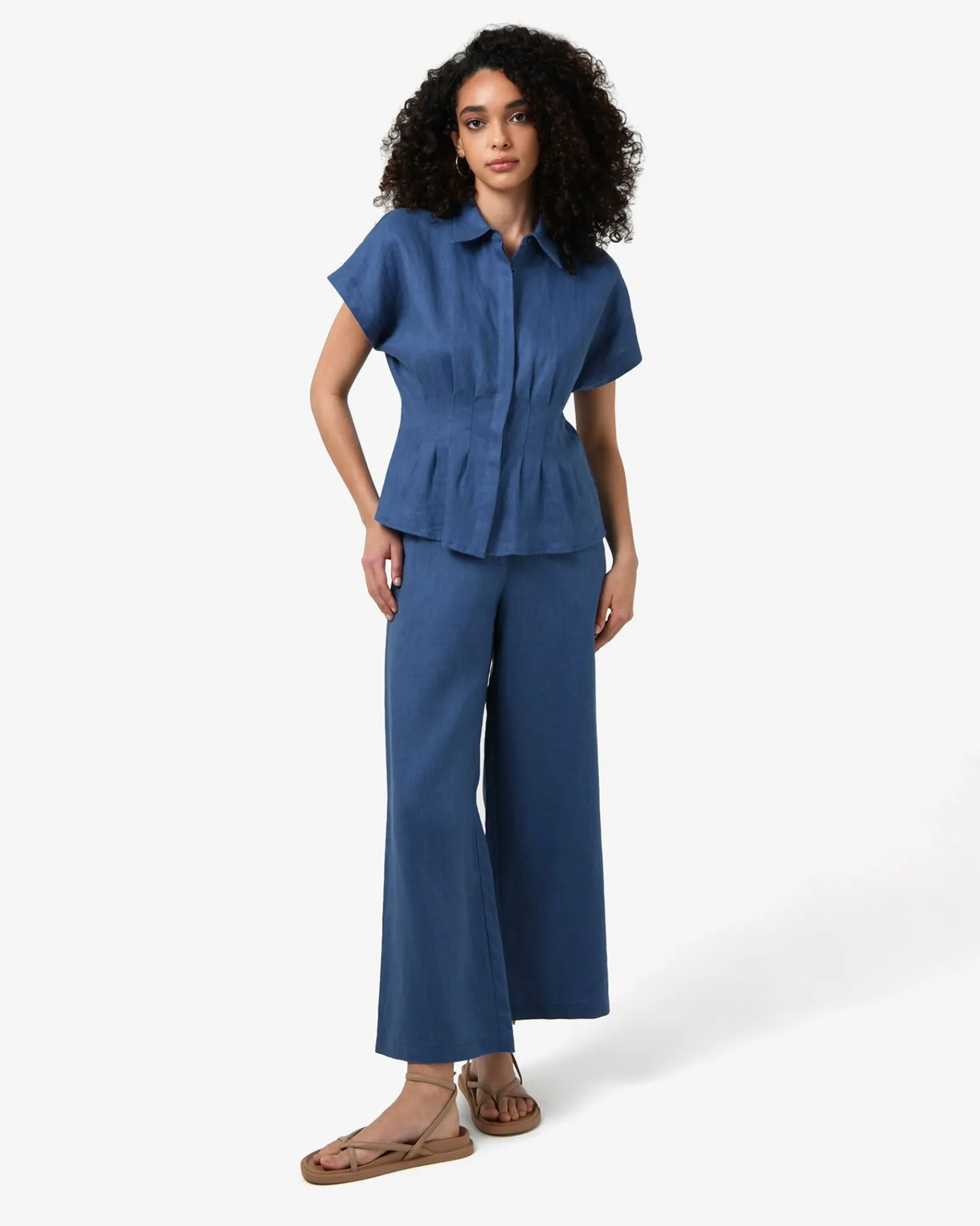Made from 100% Linen the Ami Wide Leg Linen Pants are a high-rise fit with a relaxed wide-leg silhouette. It has elastic at the back waistband for extra stretch and a concealed front fly with a double hook and bar fastening. Pair with the matching Ami Linen Collar Shirt for a coordinated look, or style with basic essentials for casual wear.