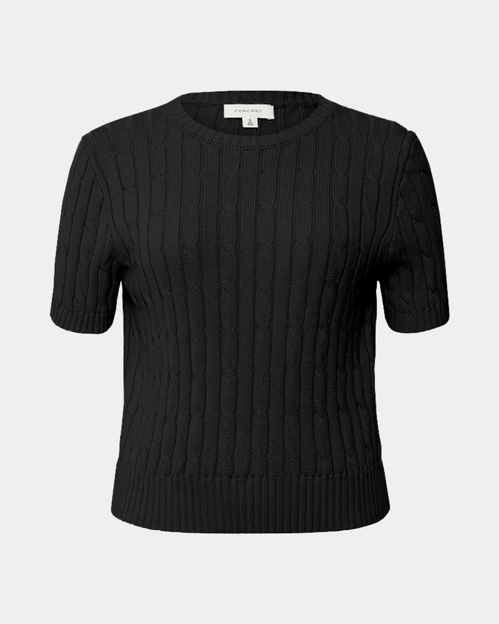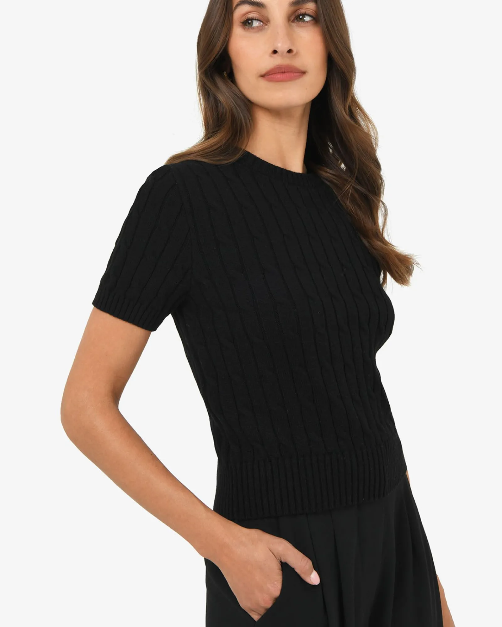 Discover effortless style with our Anita Short Sleeve Cable Knit. Featuring a classic cable pattern in a lightweight knit, this top combine simplicity with a touch of sophistication. Perfect for layering or wearing solo, its versatile design and soft fabric make it a must-have for any wardrobe.