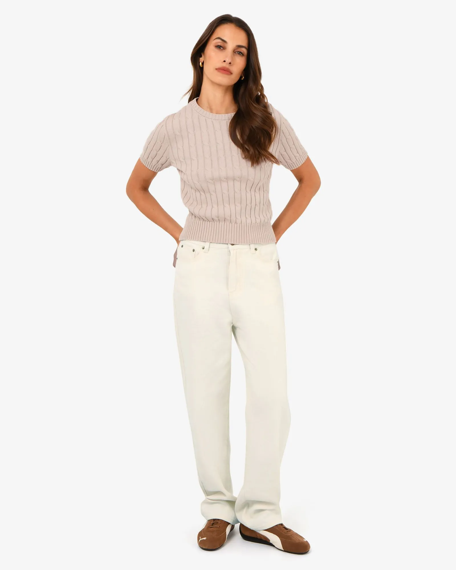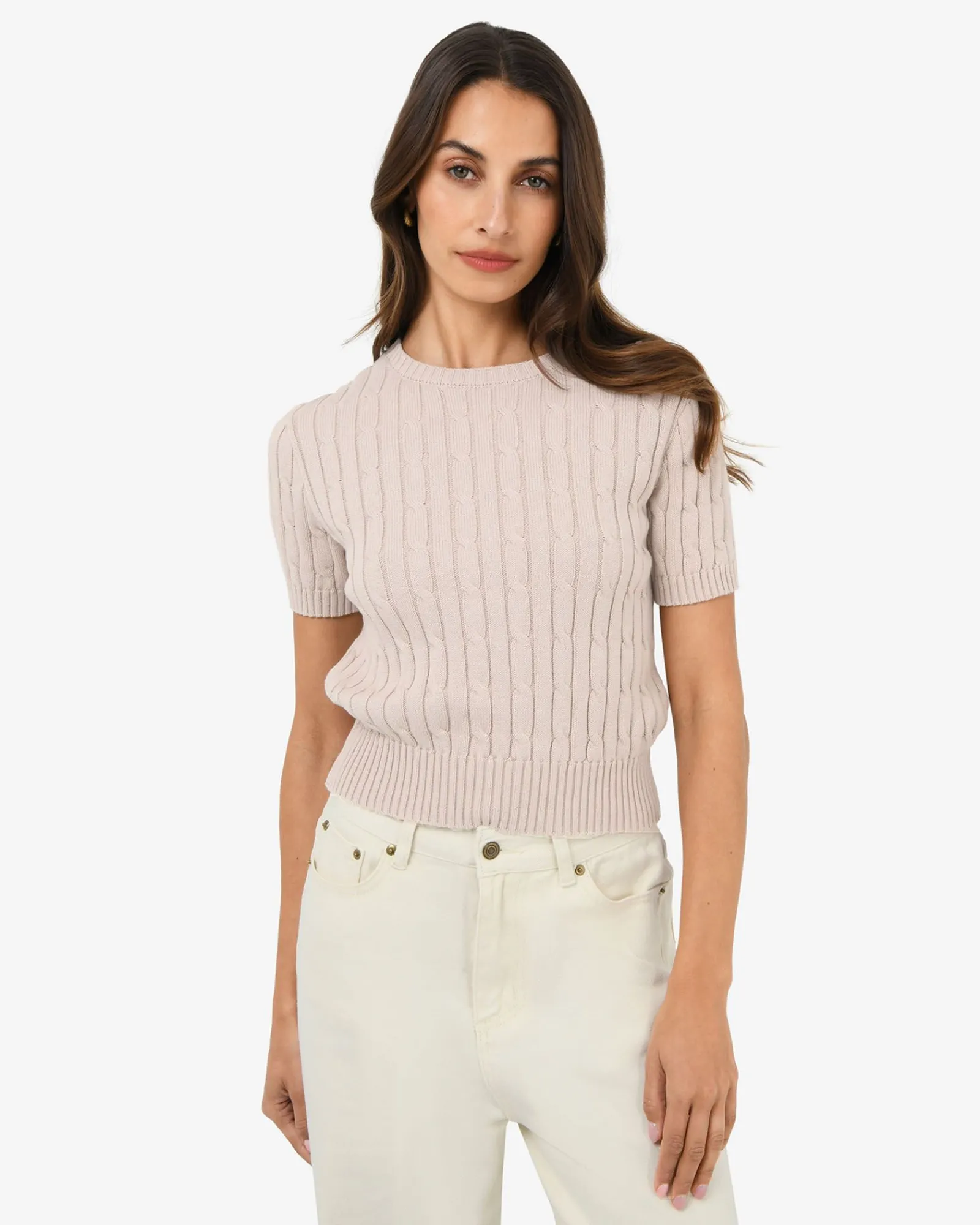 Discover effortless style with our Anita Short Sleeve Cable Knit. Featuring a classic cable pattern in a lightweight knit, this top combine simplicity with a touch of sophistication. Perfect for layering or wearing solo, its versatile design and soft fabric make it a must-have for any wardrobe.