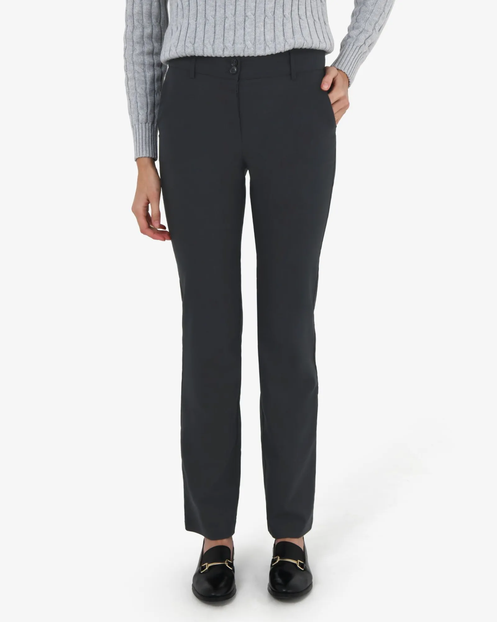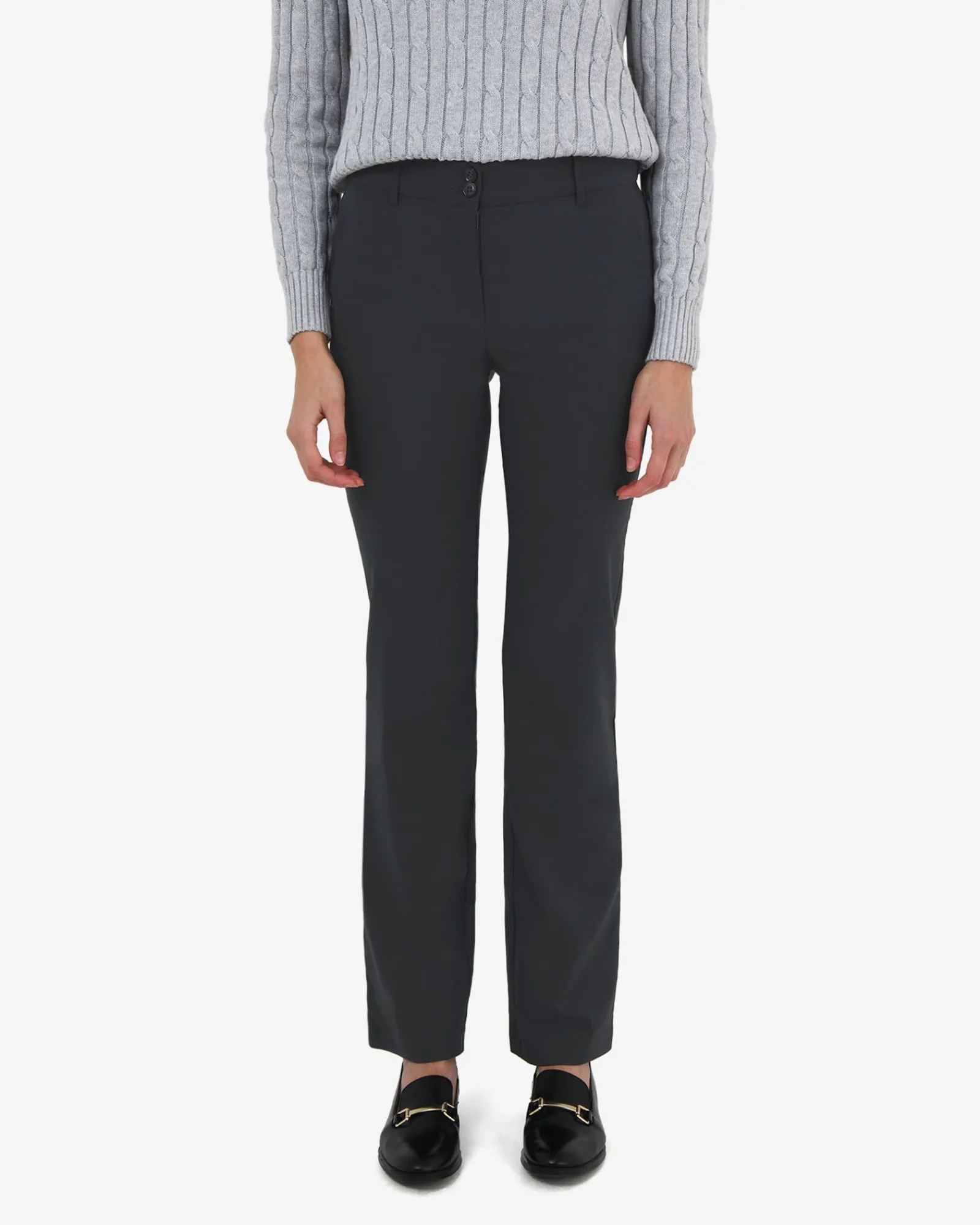 - Waistband with practical belt loopsDouble button, fly front zip fastening