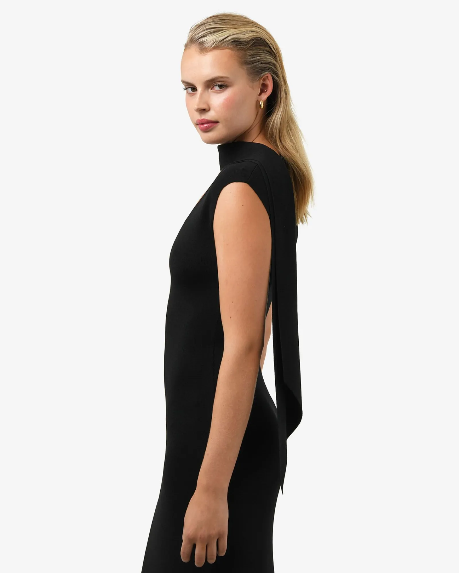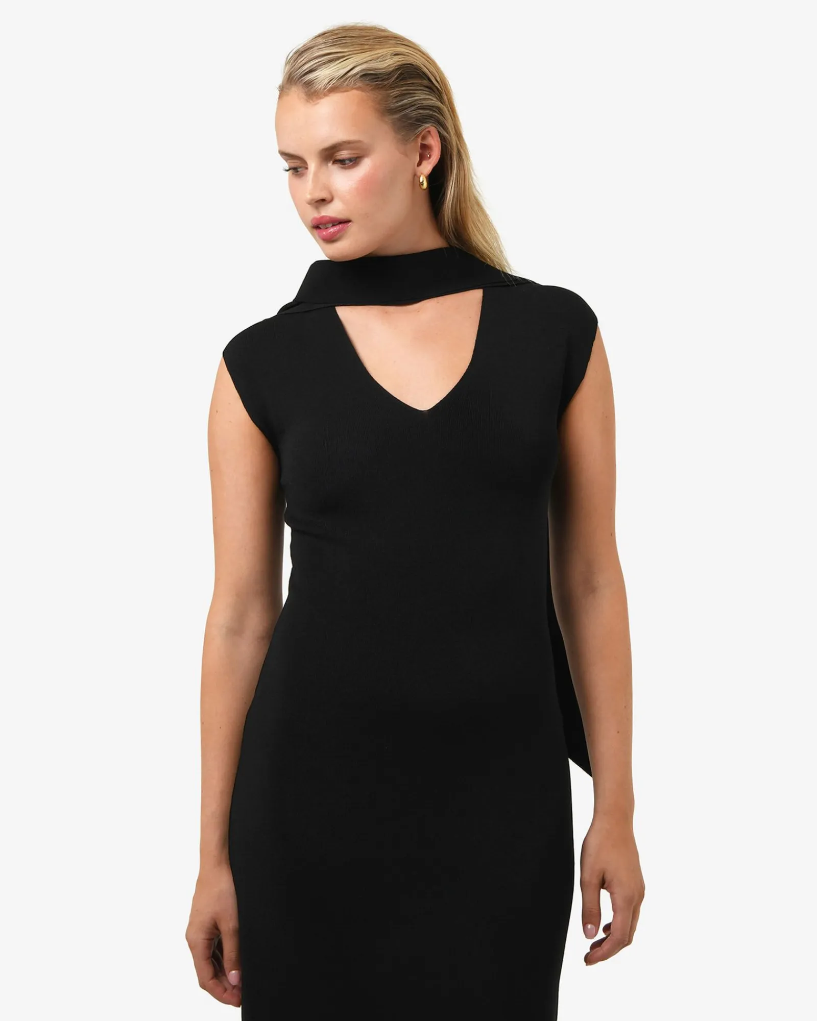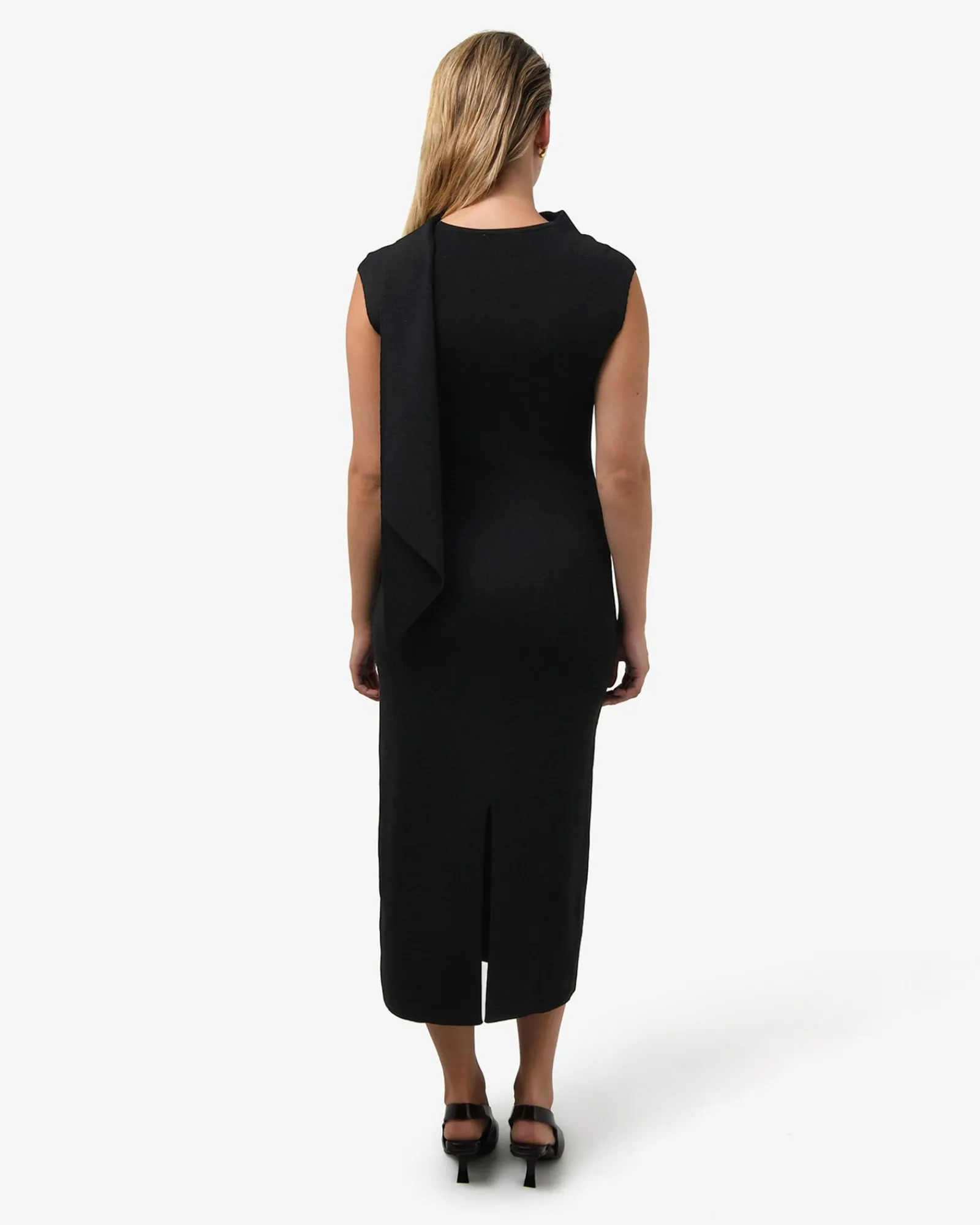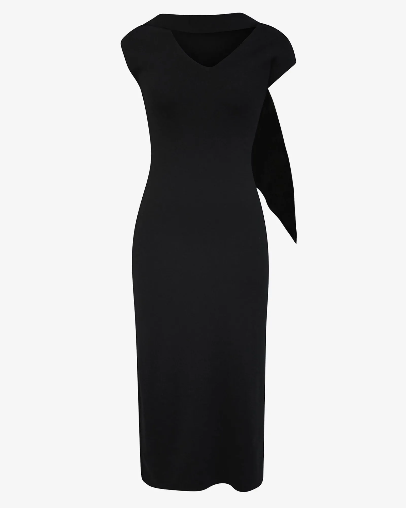 A dress that dares to be different. The Byron Scarf Knit Dress</strong pairs a sleek fitted silhouette with a draped scarf detail for a striking finish. Asymmetrical sleeves and a fluid scarf line create a look that’s both modern and timeless.