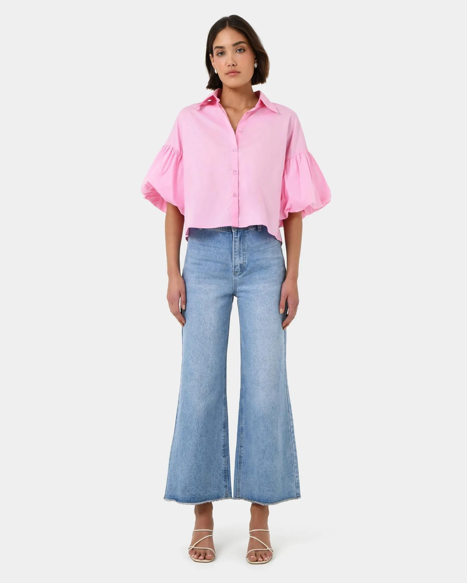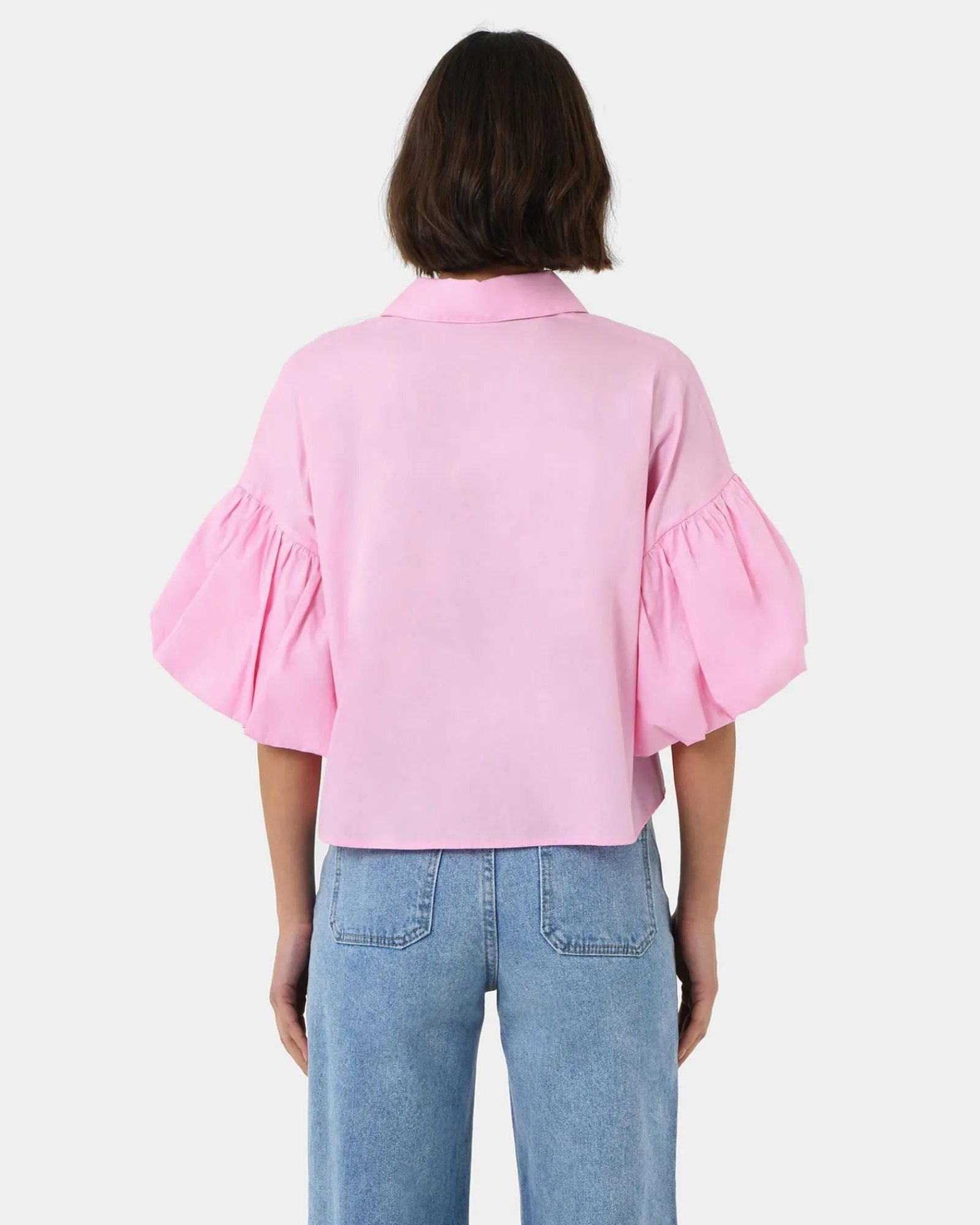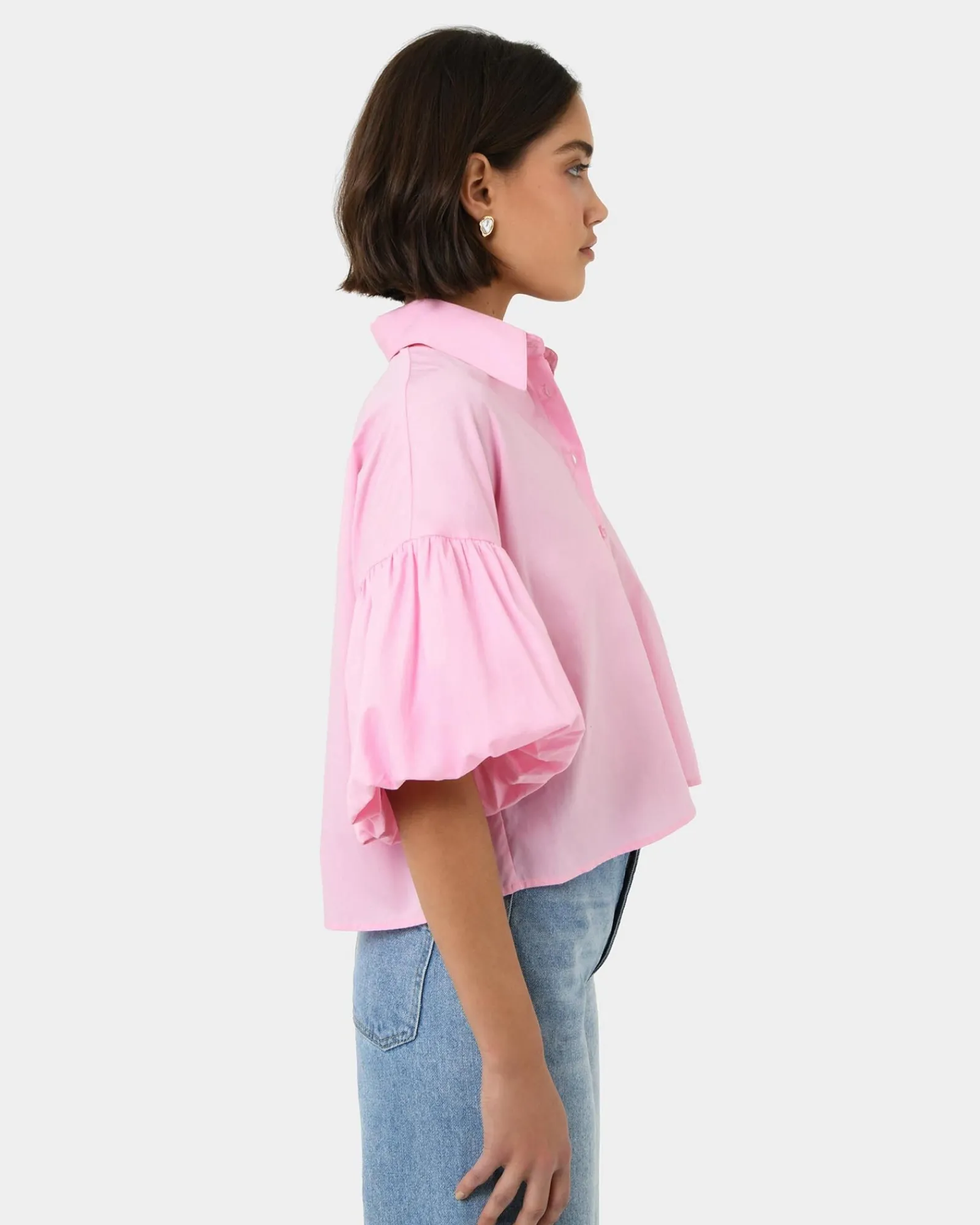 Embrace playful femininity with the Cali Puff Sleeve Crop Shirt . The puffed sleeves add a touch of whimsy to the classic button-down silhouette. The cropped length is perfect for pairing with high-waisted jeans, skirts, or shorts, making it an effortless choice for any outfit. Crafted from a crisp and comfortable fabric, it ensures all-day comfort.