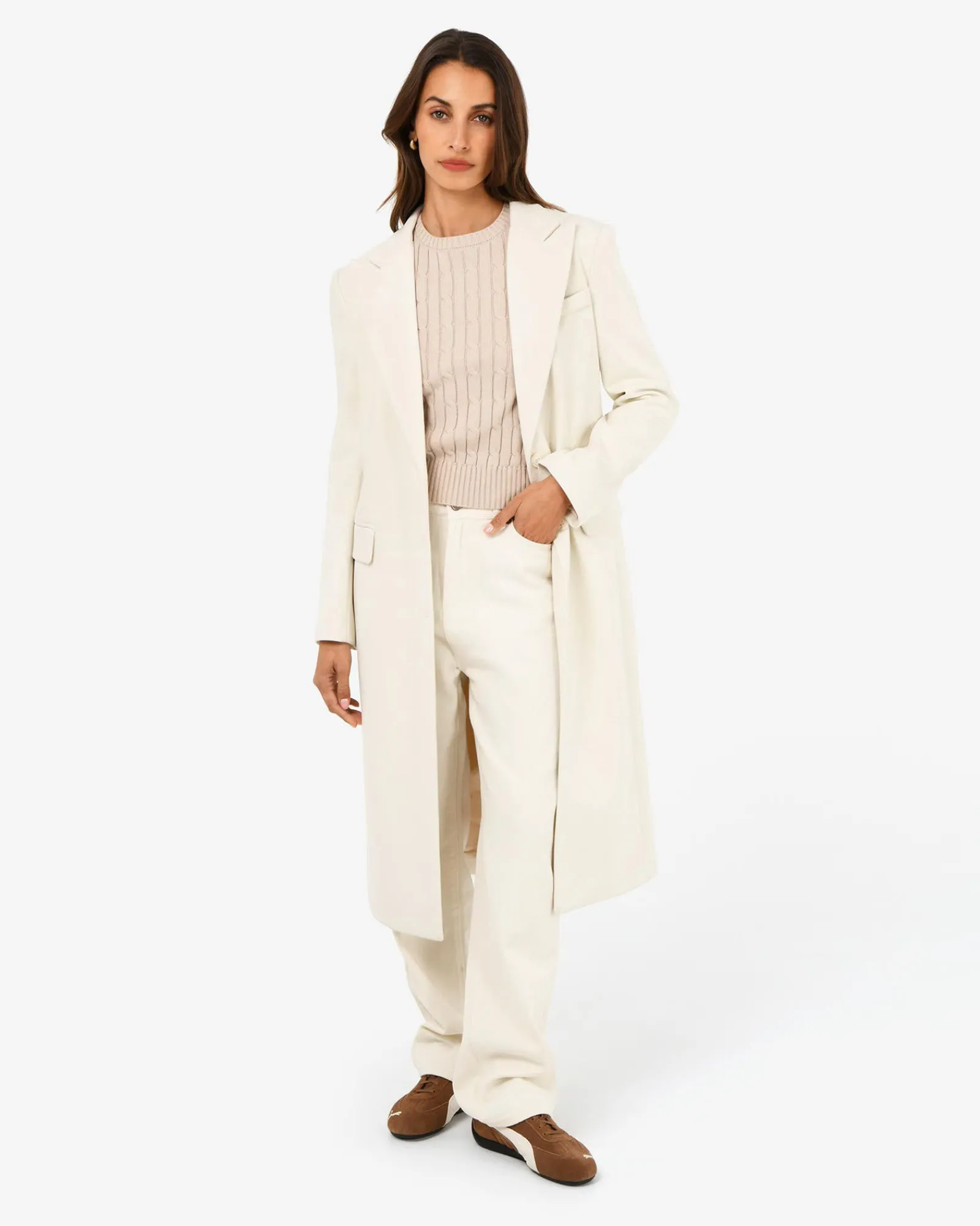 With its tailored shape and sharp shoulders, the Cassandra Tailored Coat is designed to create a sleek silhouette. Featuring functional front flap pockets and a back vent, it seamlessly combines style and comfort. Designed with medium to heavy weight fabric and midi length, it will provide comfortable layering during cooler weather.