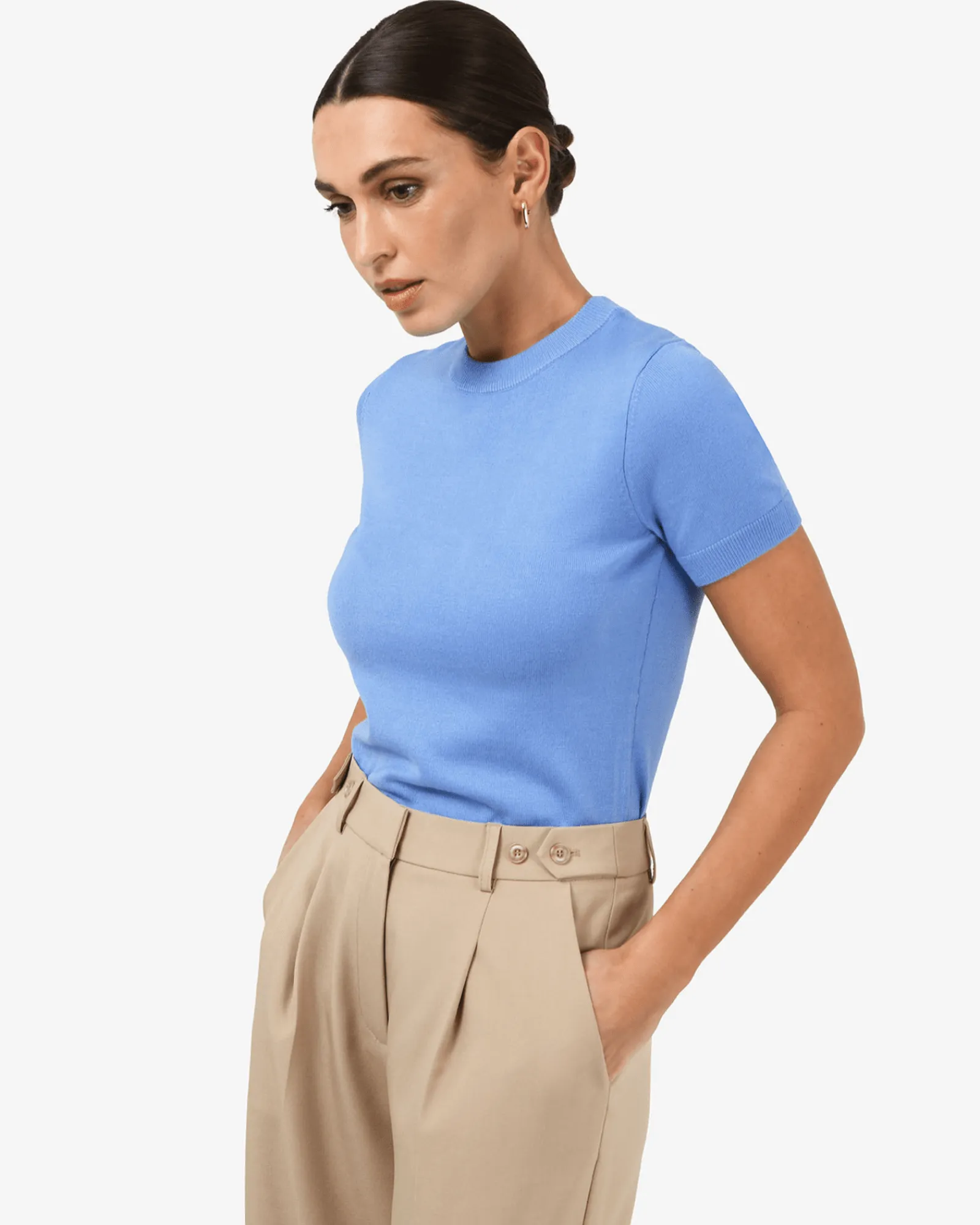 The Catherine Short Sleeve Knit is simple in design making it a versatile foundation for all your favourite separates