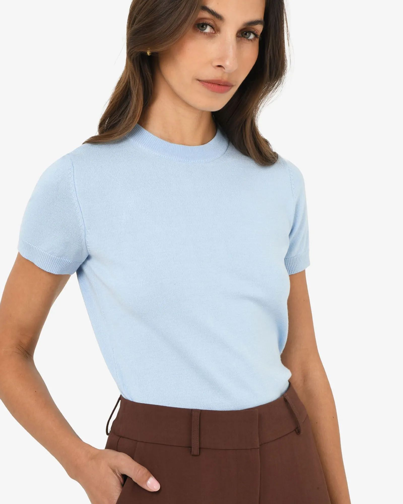 The Catherine Short Sleeve Knit is simple in design making it a versatile foundation for all your favourite separates.