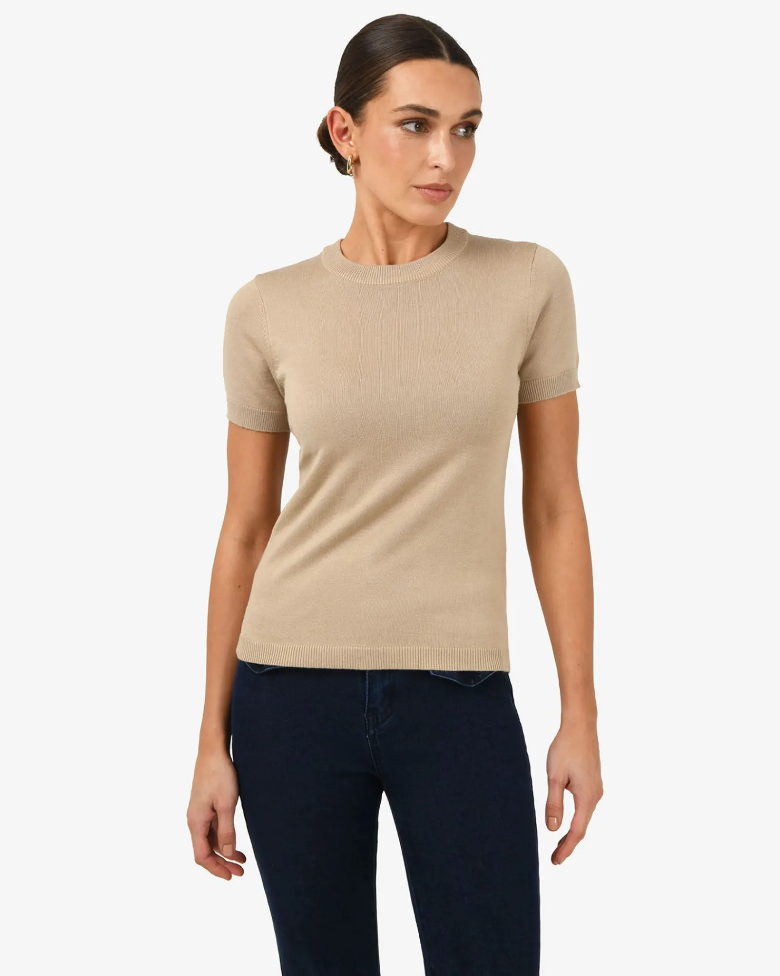The Catherine Short Sleeve Knit is simple in design making it a versatile foundation for all your favourite separates