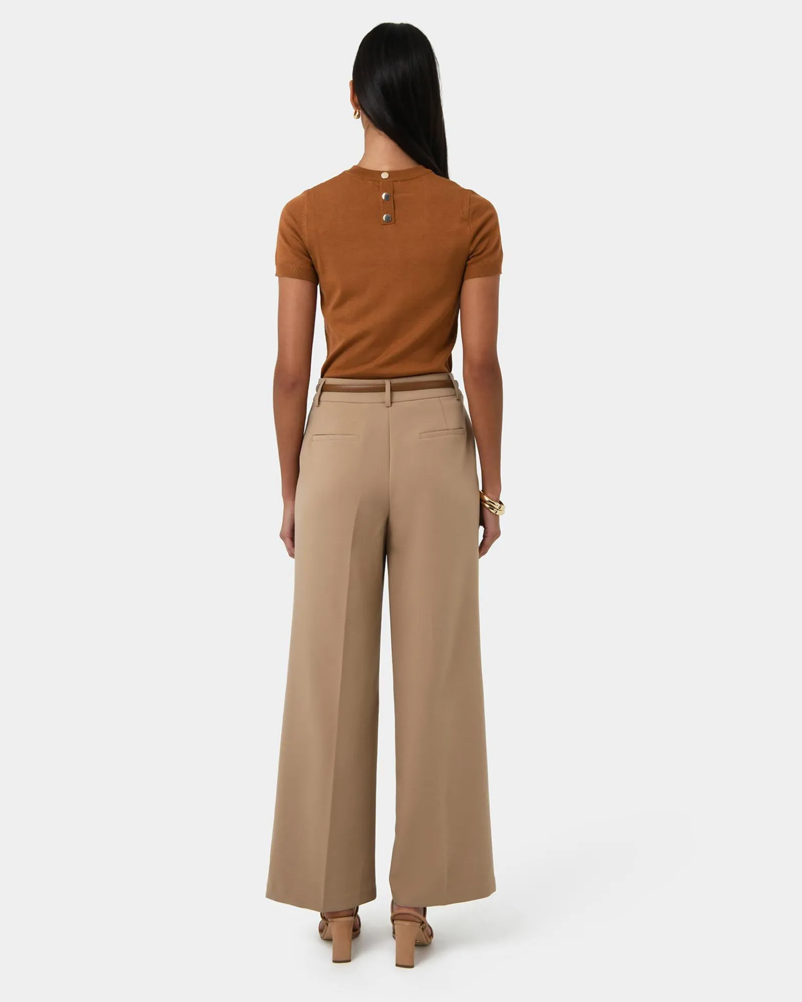 - Back neck gold-tone button detail