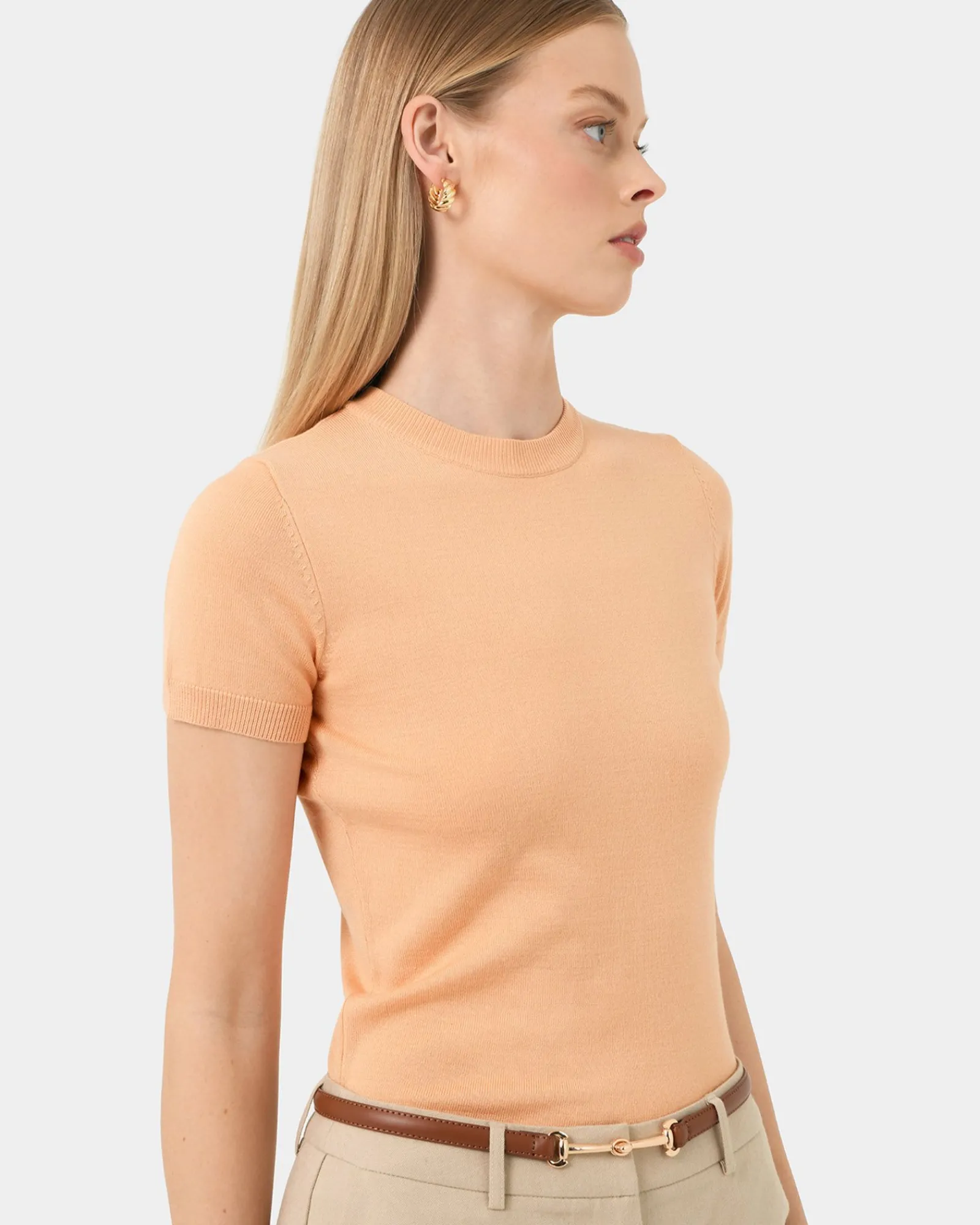 The Catherine Short Sleeve Knit is simple in design making it a versatile foundation for all your favourite separates.