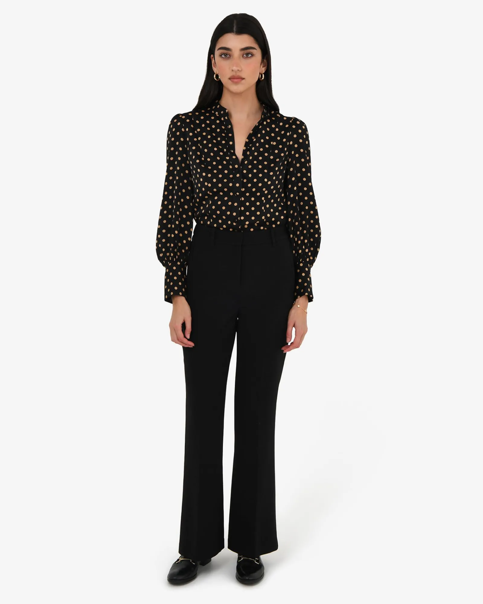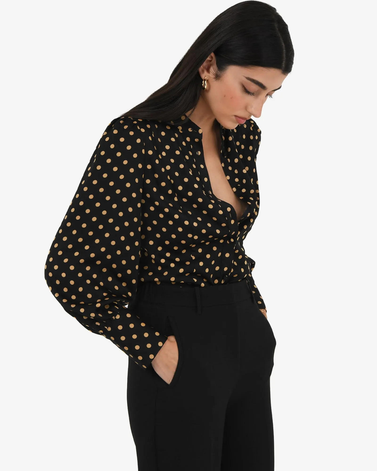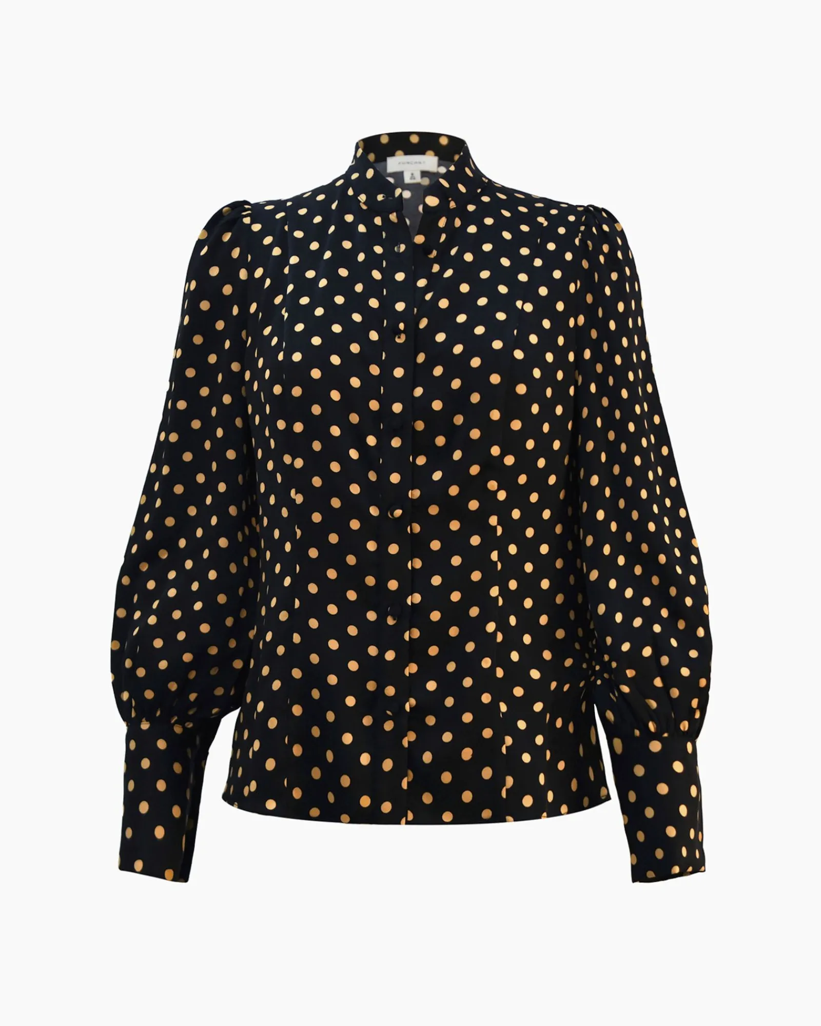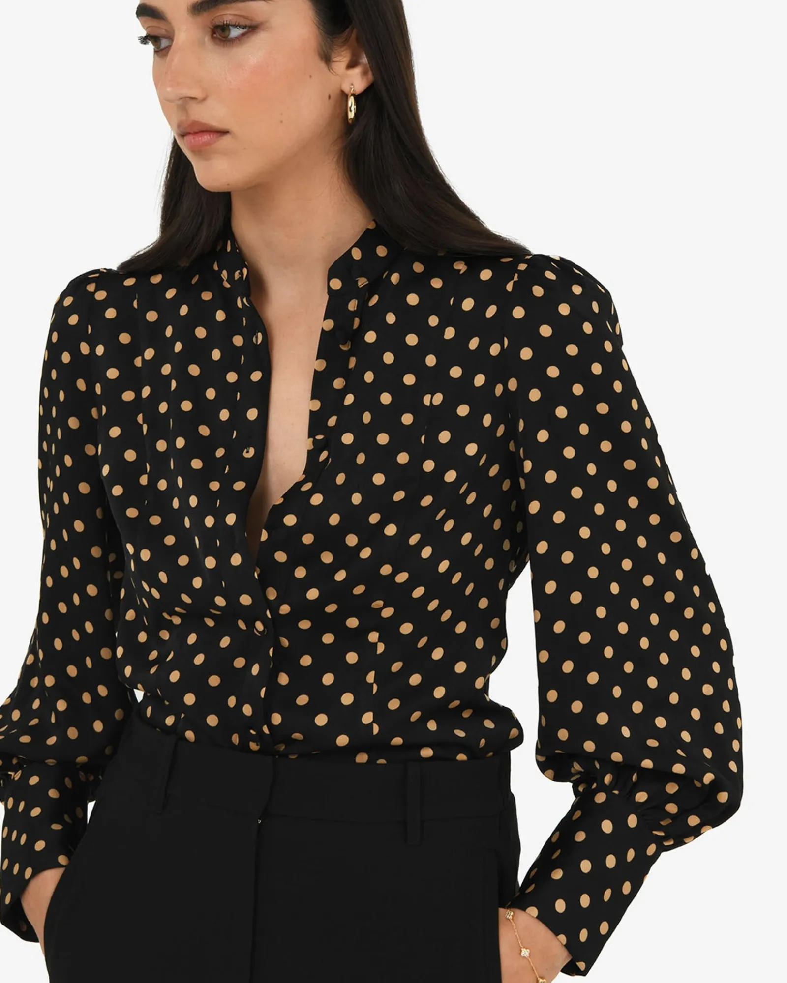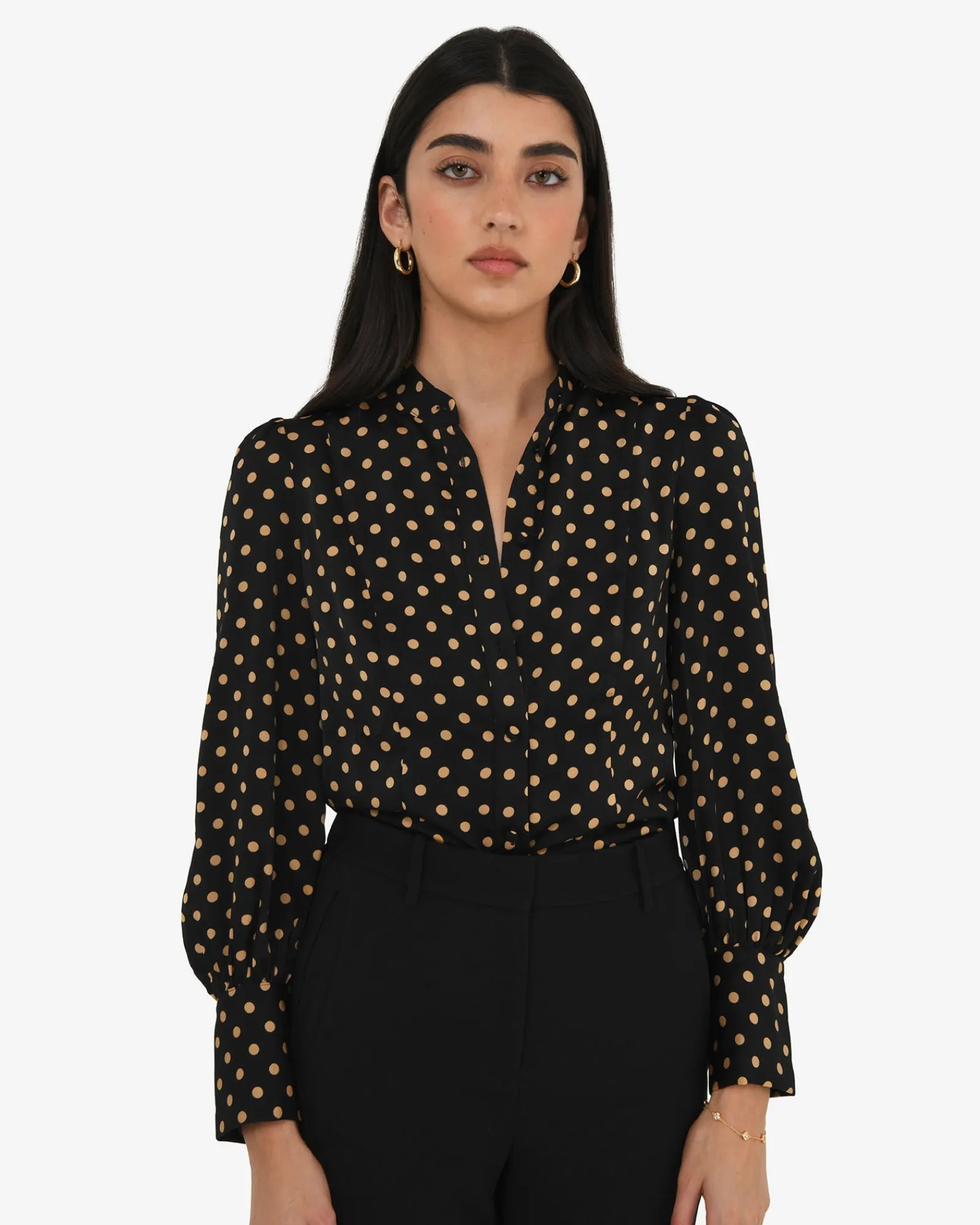 Add instant charm to your everyday look with the Dotti Polka Dot Printed Blouse. Designed with a loose fit and soft, flowing fabric, it balances polish and ease. The mandarin collar and long balloon sleeves add a refined touch to its fun, feminine features.