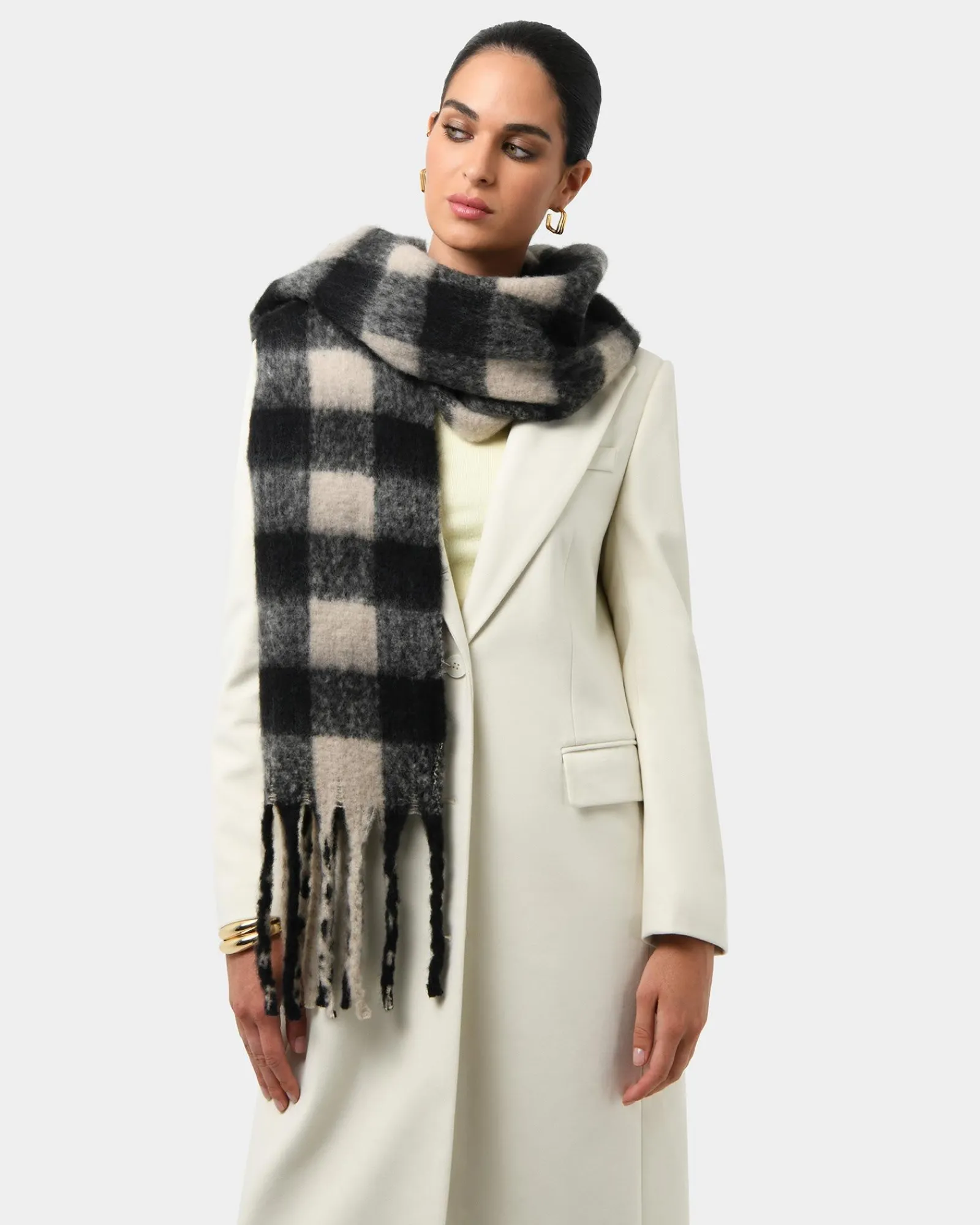 Snuggle up in style with the Elle Checked Scarf. Crafted from ultra-soft fabric and adorned with a timeless check pattern,it’s the perfect blend of warmth and style.