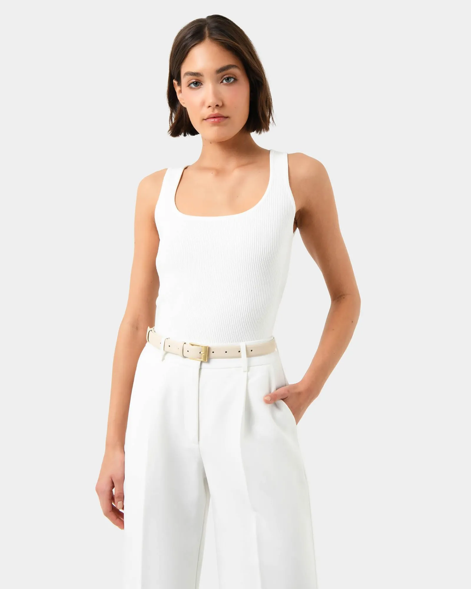 - Gold-toned square buckle