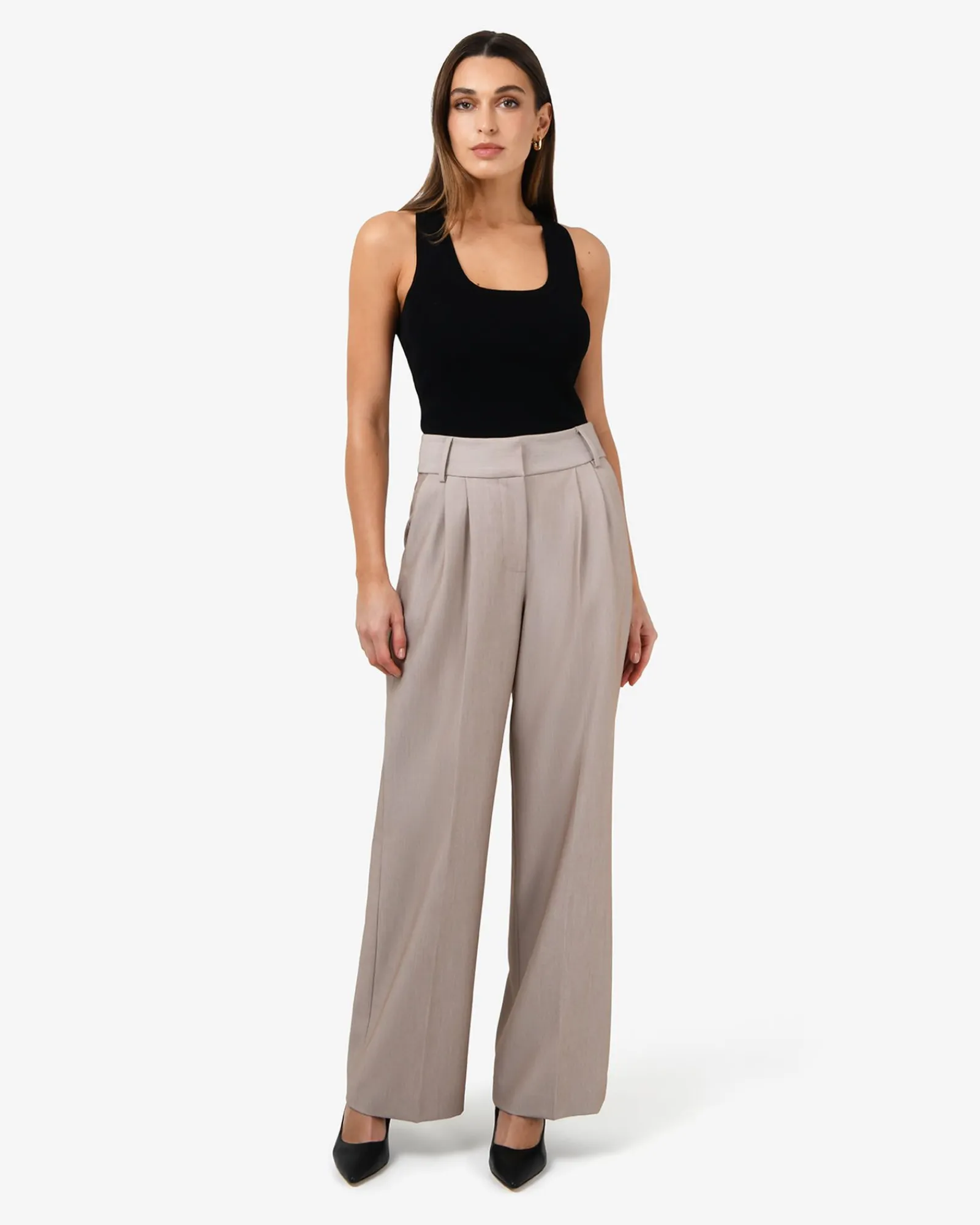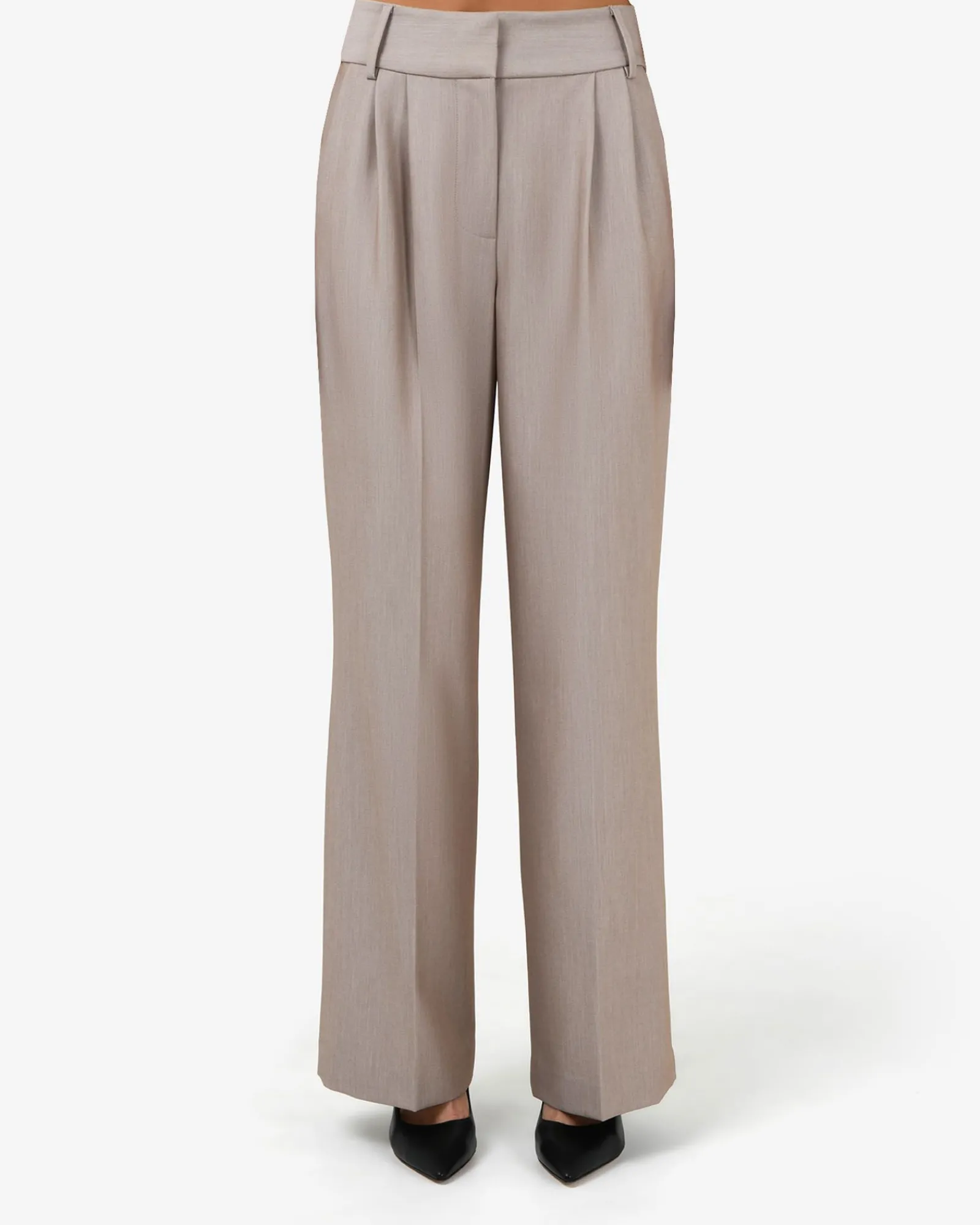The Fitzroy Pleated Pants take classic suiting and make it feel effortless. A high waist and wide-leg shape create a clean, elongated line, while sharp double pleas add a tailored finish. Made from a medium-weight stretch fabric that offers ease and flexibility, they balance between structure and comfort – easy to wear from the office to after-hours.
