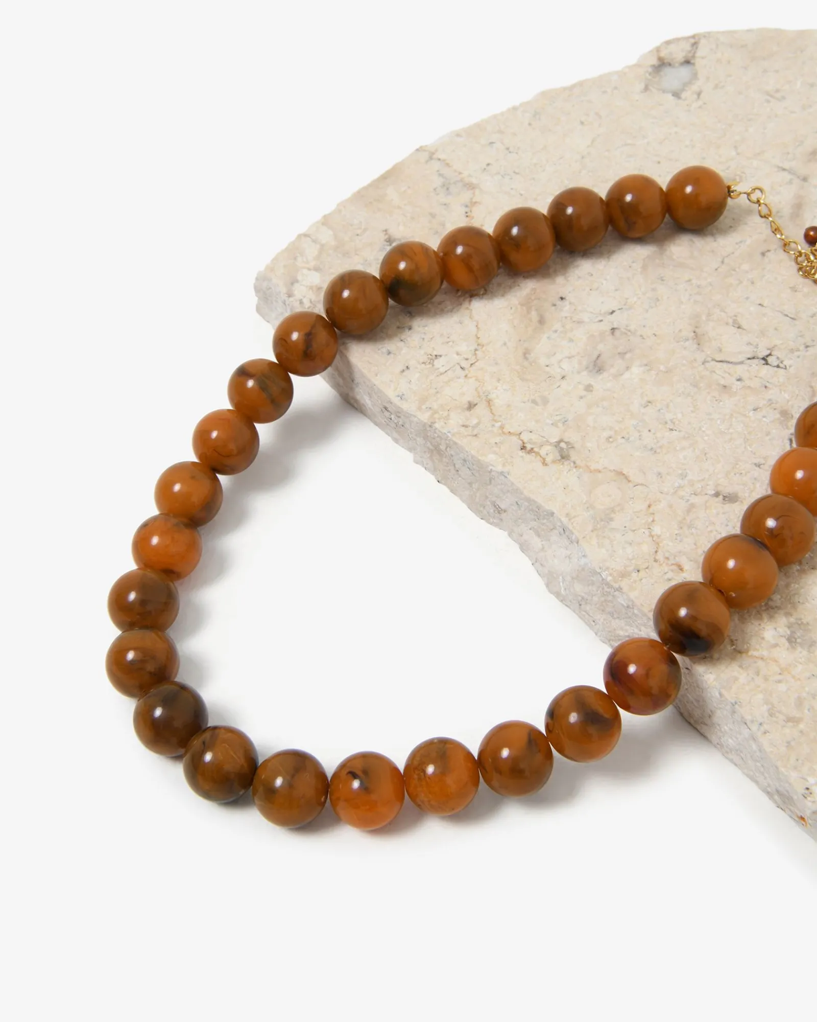 Bold yet effortless, the Gia Boho Resin Necklace is a statement piece designed to elevate any outfit. Featuring smooth resin beads strung together with a touch of gold hardware, this necklace blends modern elegance with a bohemian edge. Perfect for layering or wearing solo, it adds instant polish to both casual and dressy looks.