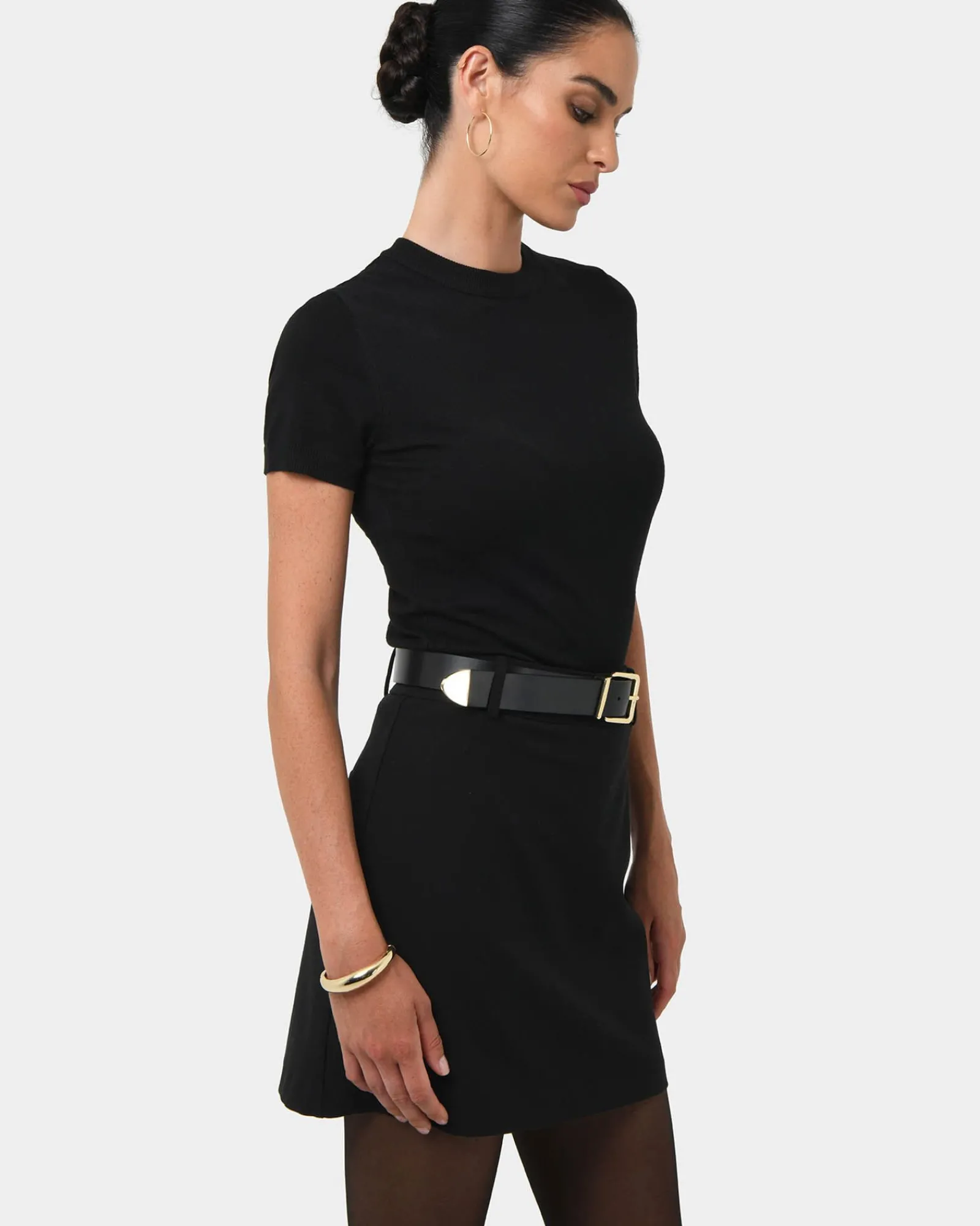 Unlock a flattering silhouette with the Gordon A-Line Mini Skirt– showcasing a structured A-line shape, a sleek high waist, and precise detailing that highlights your curves while keeping things effortlessly chic. The perfect foundation for countless outfits, from day to night.