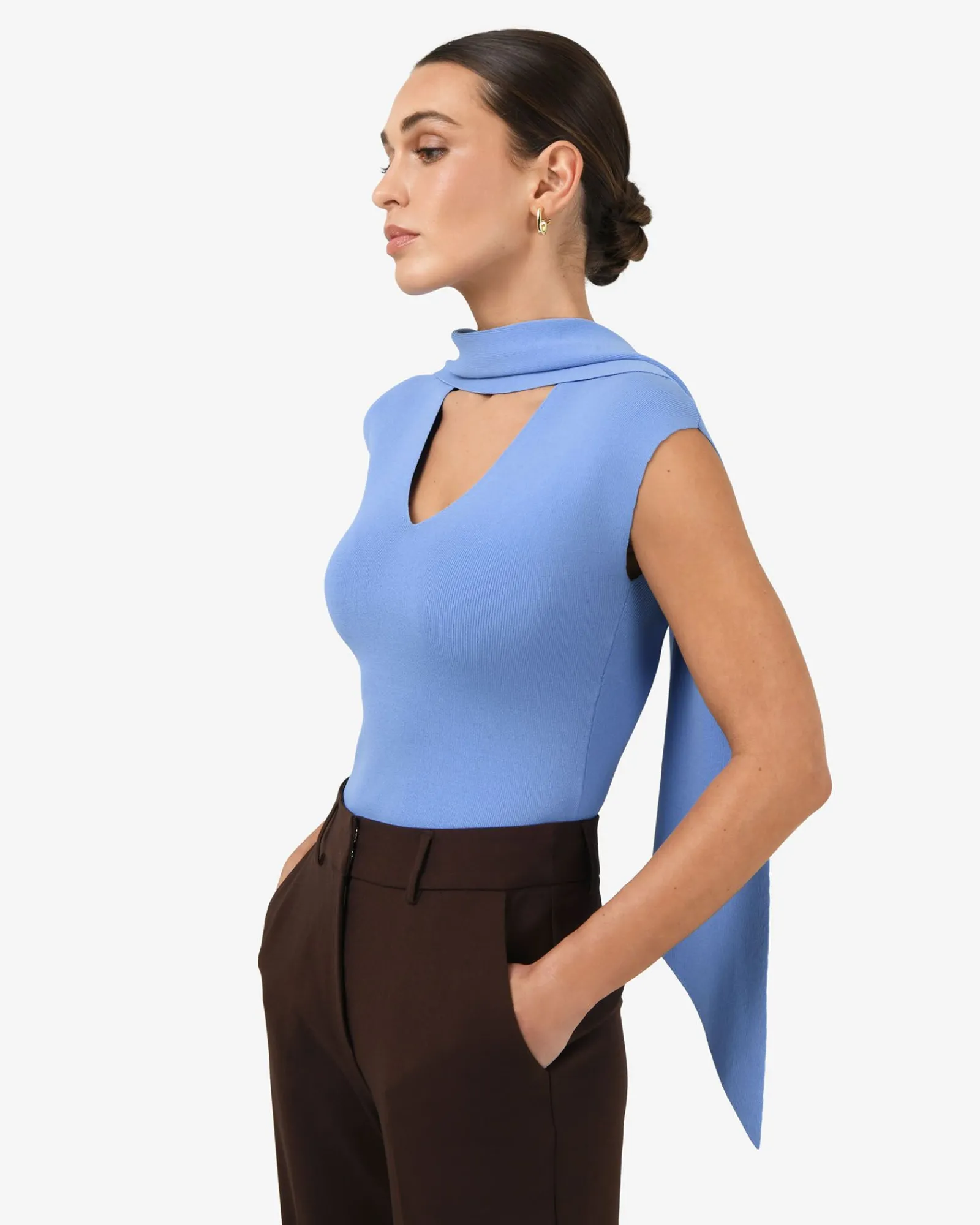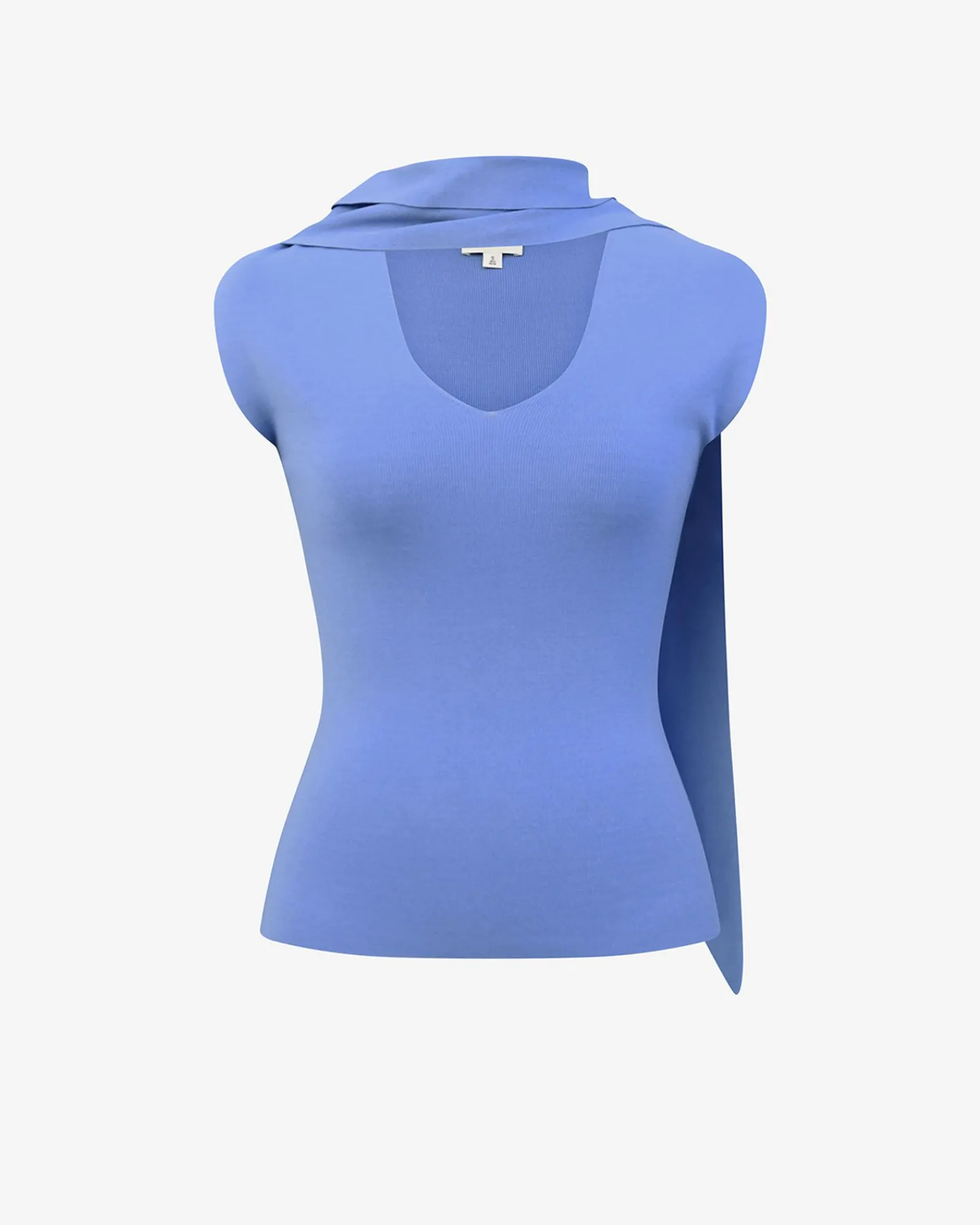Perfect for making a statement, the Isadora V-Neck Scarf Knit Top features a flattering V-neckline with an attached draped scarf for instant elegance. It is sleeveless, timeless and effortlessly chic. Where comforts meet elevated detail, it will be your new wardrobe favourite.