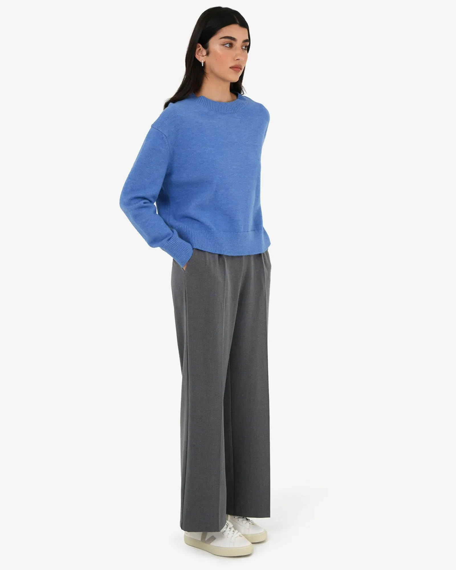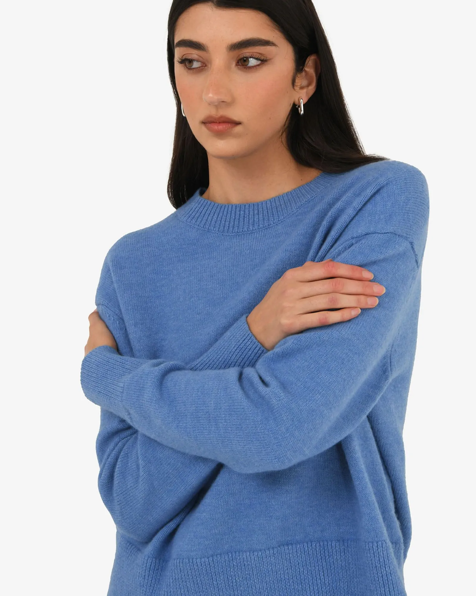 The Joyli Round Neck Knit is your go-to for staying warm. Made with a soft merino wool blend, this medium-weight knit keeps you cozy and comfy, whether you’re out and about or curled up at home.