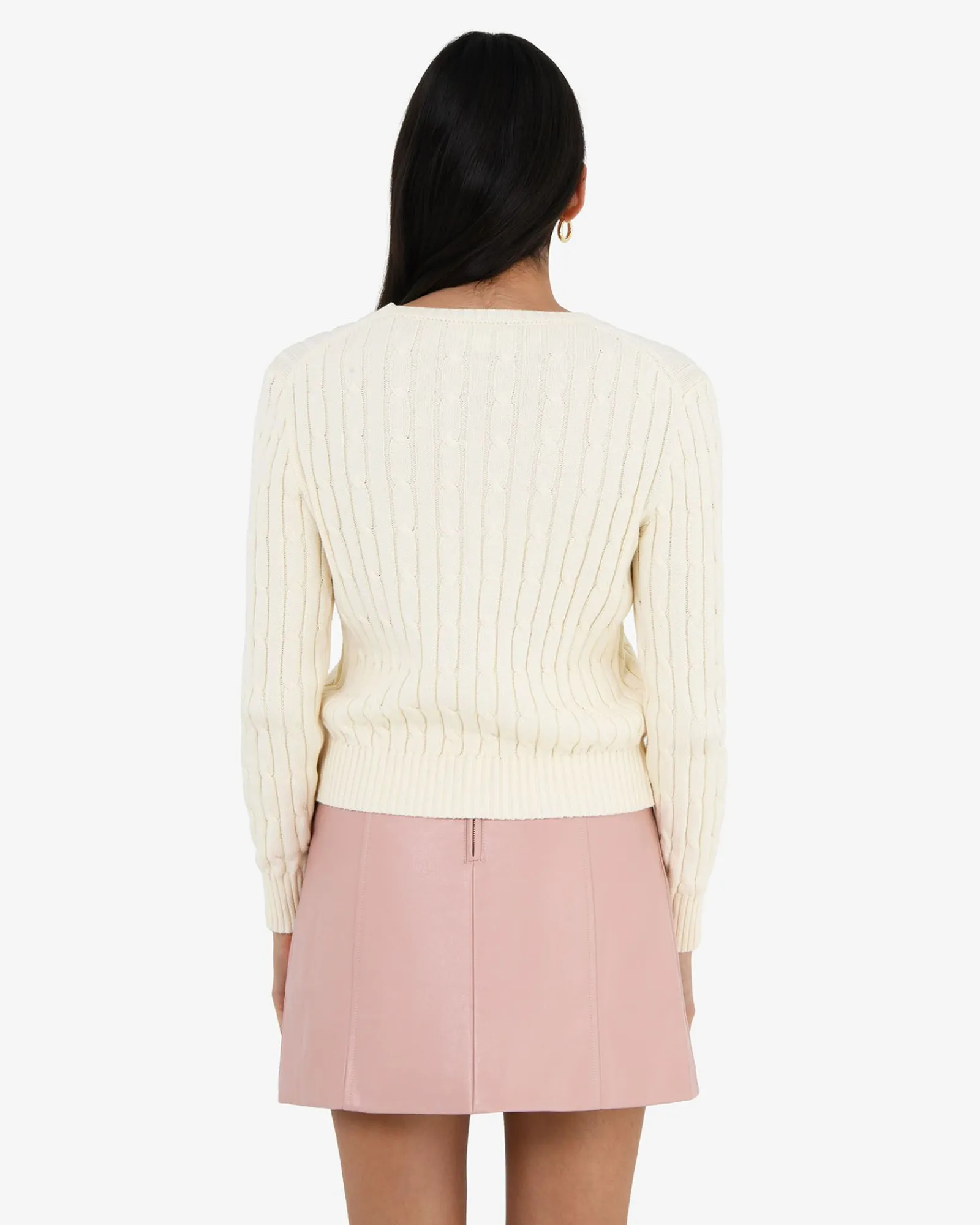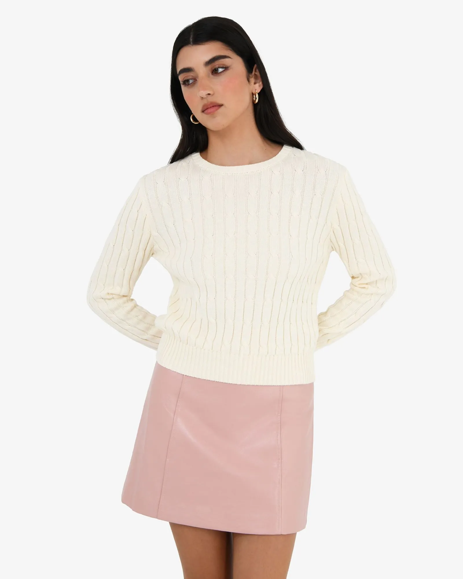 Cozy up in the Juanita Cotton Cable Knit. Crafted from soft cotton, it’s the perfect piece for transitioning between seasons, a timeless wardrobe staple that effortlessly blends comfort and style.