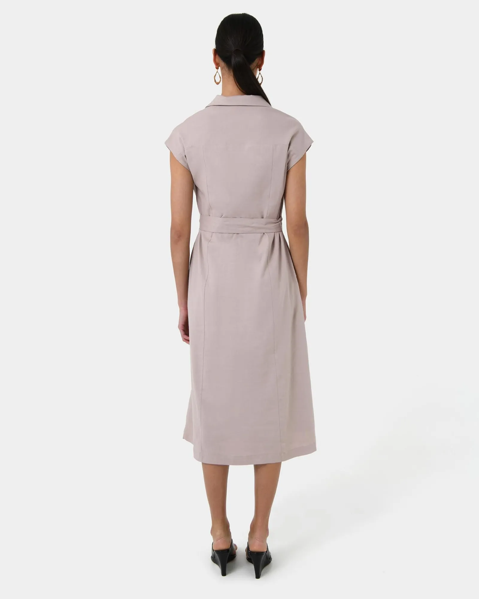 - Matching self-tie waist belt