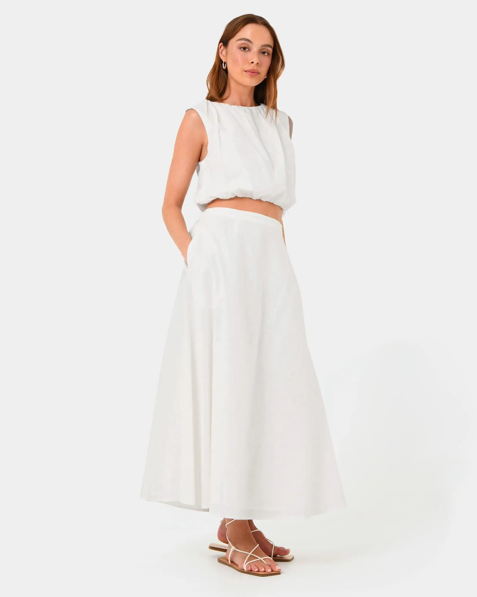 The Kenya Linen Skirt is a simple everyday linen midi skirt you’ll adore summer after summer. Crafted in a lightweight linen blend, the Kenya Linen Skirt combines style and comfort. Match it with the Kenya Top or any basic top for the perfect summer ensemble.