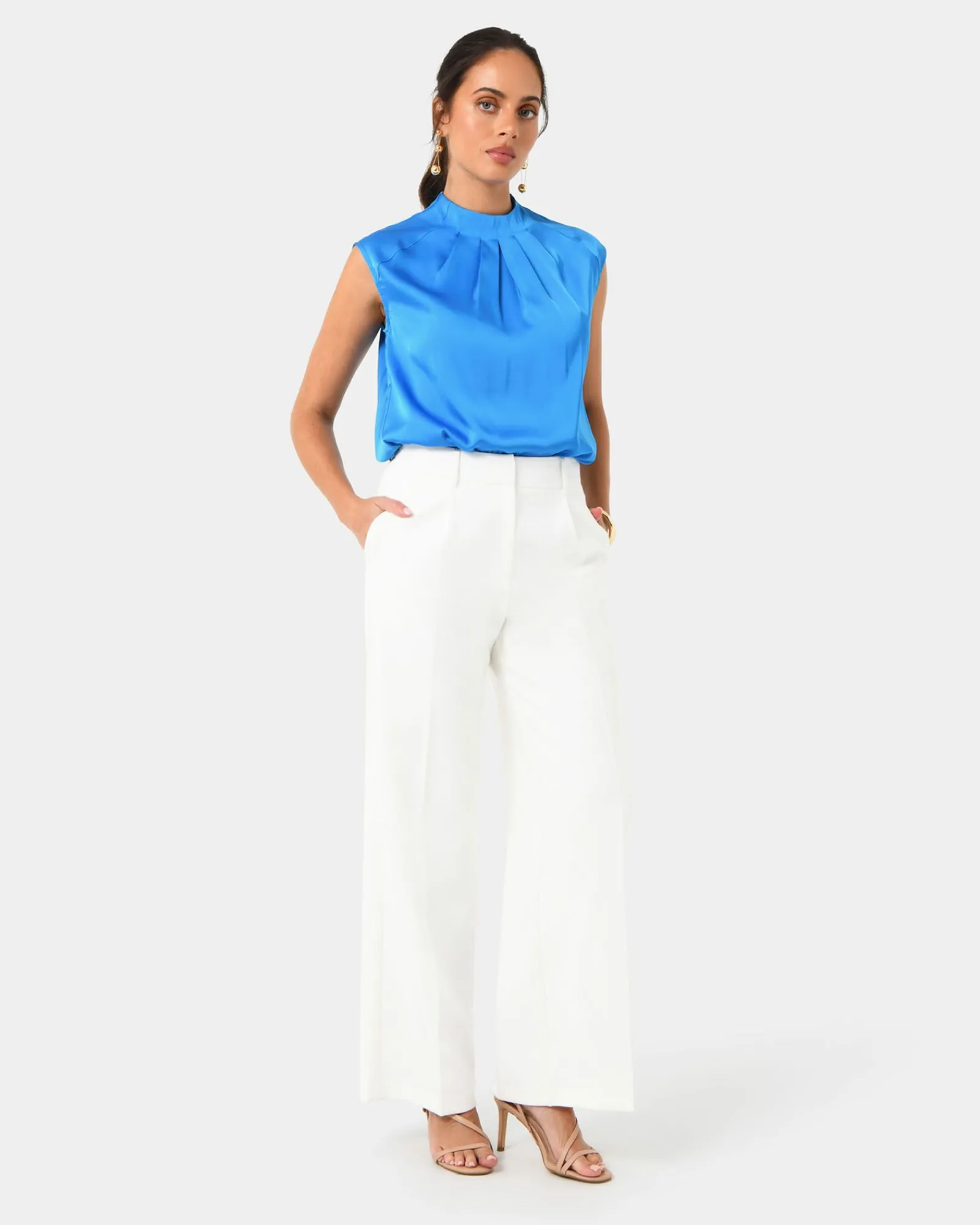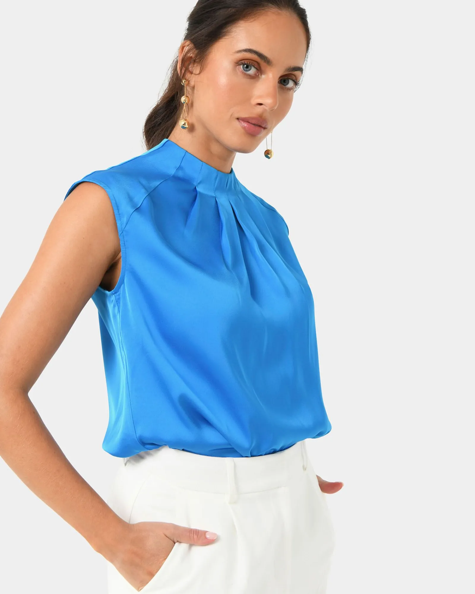 The Kiar Pleated Satin Top is a versatile wardrobe essential for anyone who values effortless style. Featuring a high neckline with subtle pleating, it creates a flattering silhouette. The delicate cap sleeves add a touch of femininity, while the relaxed silhouette pairs perfectly with high-waisted bottoms or skirts, offering a chic and modern look.