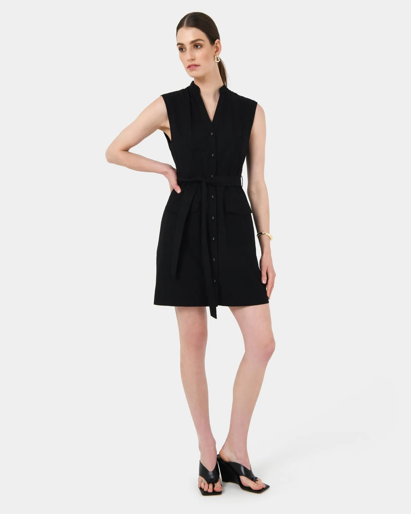 This Kiran Utility Tie Dress effortlessly combines versatility and style, making it a must-have for warm-weather outfits. Designed with a classic shirtwaist silhouette, it features a flattering belted waist and a timeless mandarin collar. Functional details like two front patch pockets makes it a practical wardrobe essential. Whether you’re headed to casual outings, workdays, or weekend brunches, this versatile piece adapts to any occasion. Dress it up with heels and statement jewelry for a night out or keep it laid-back with sandals.
