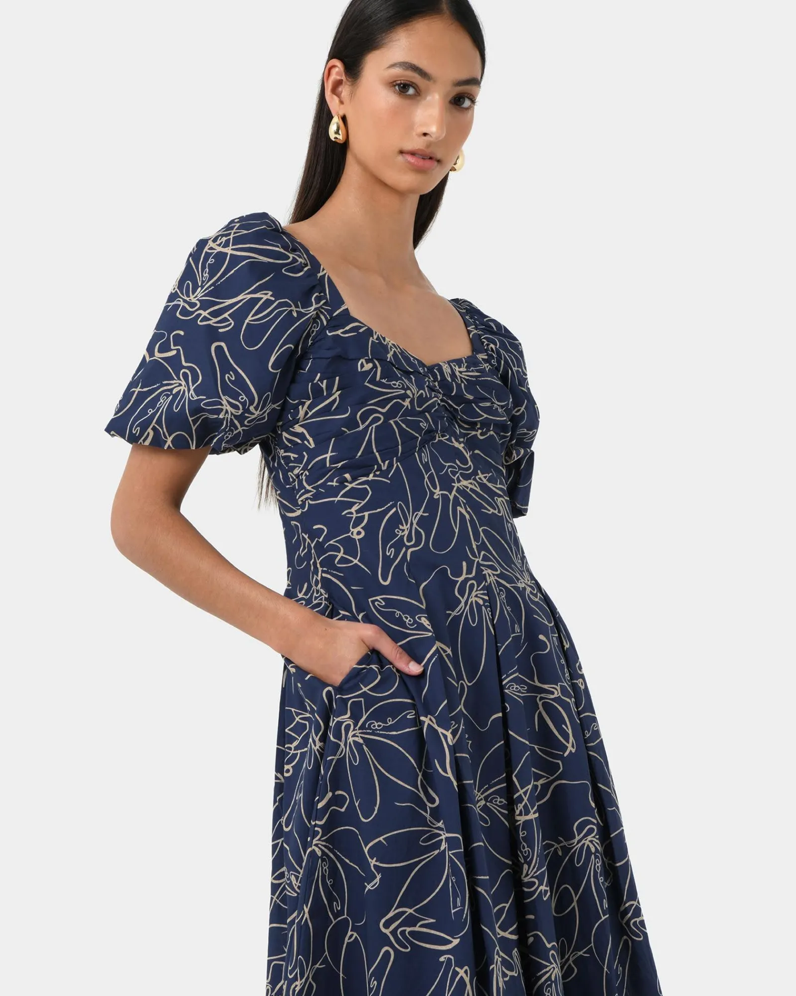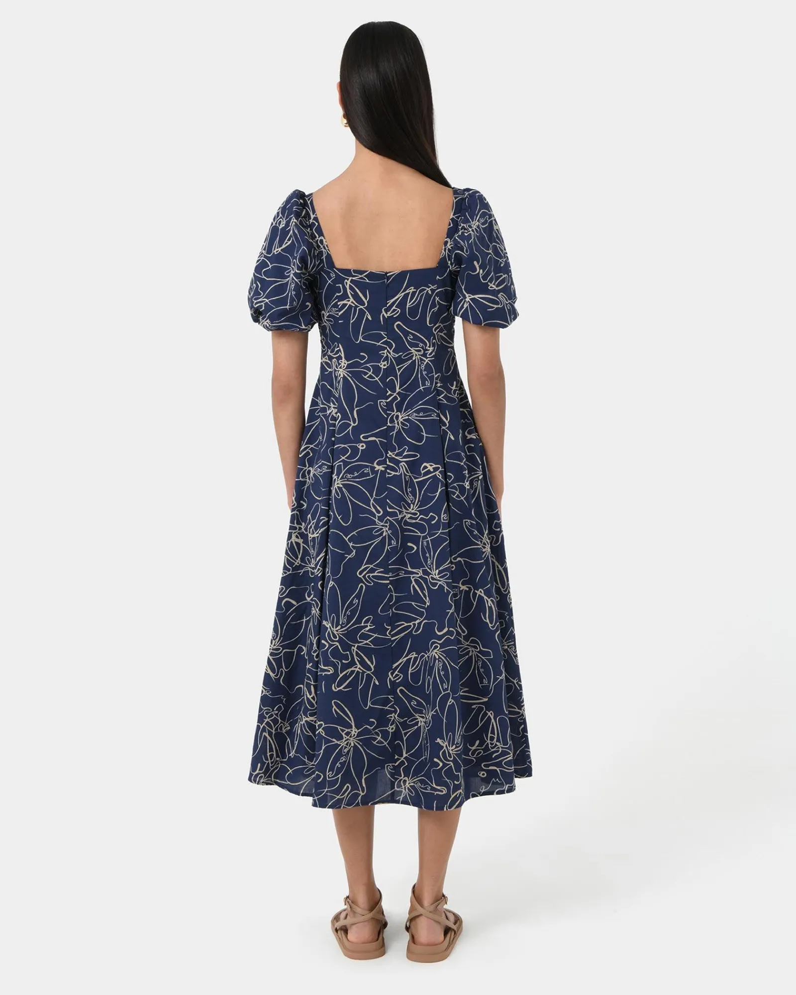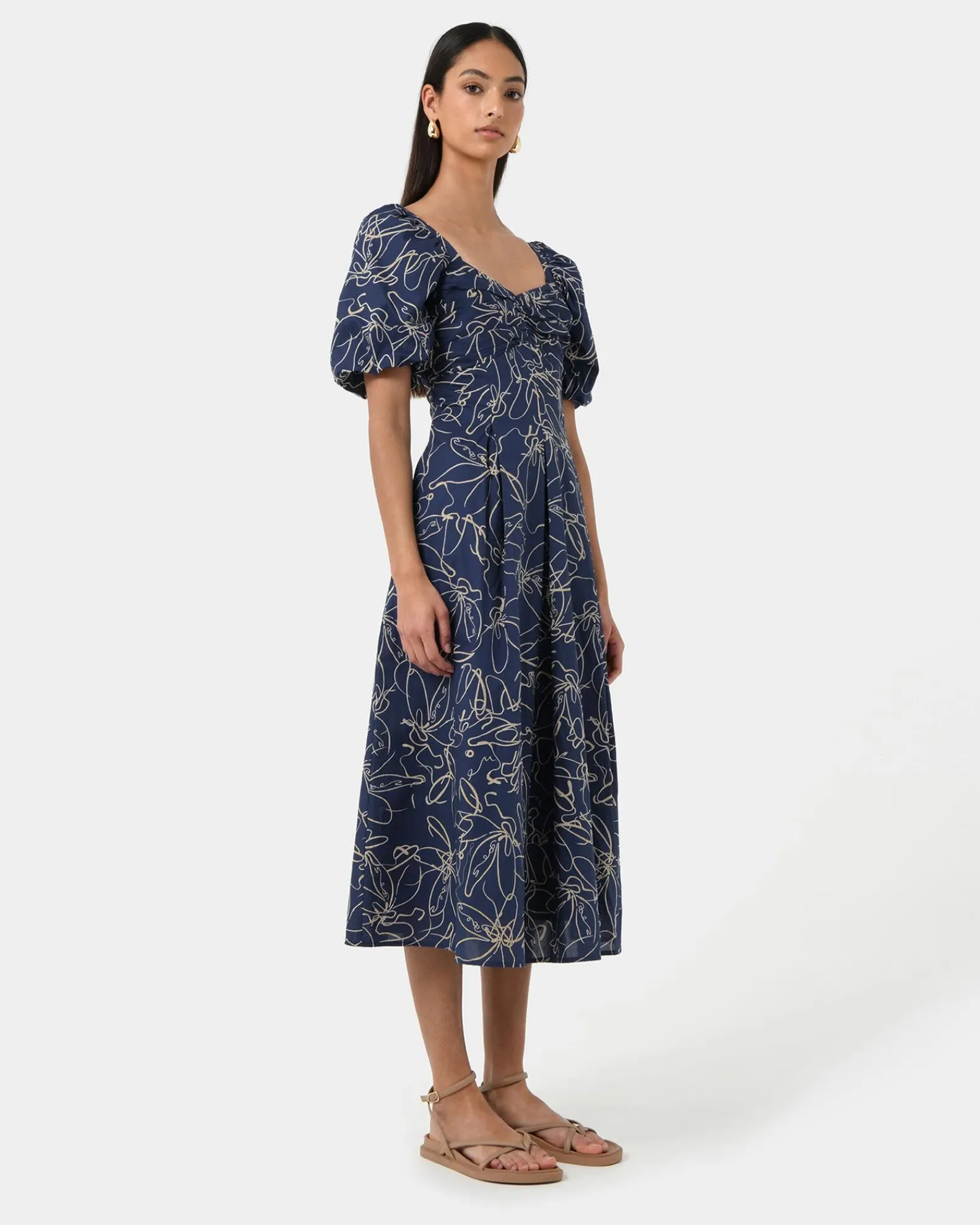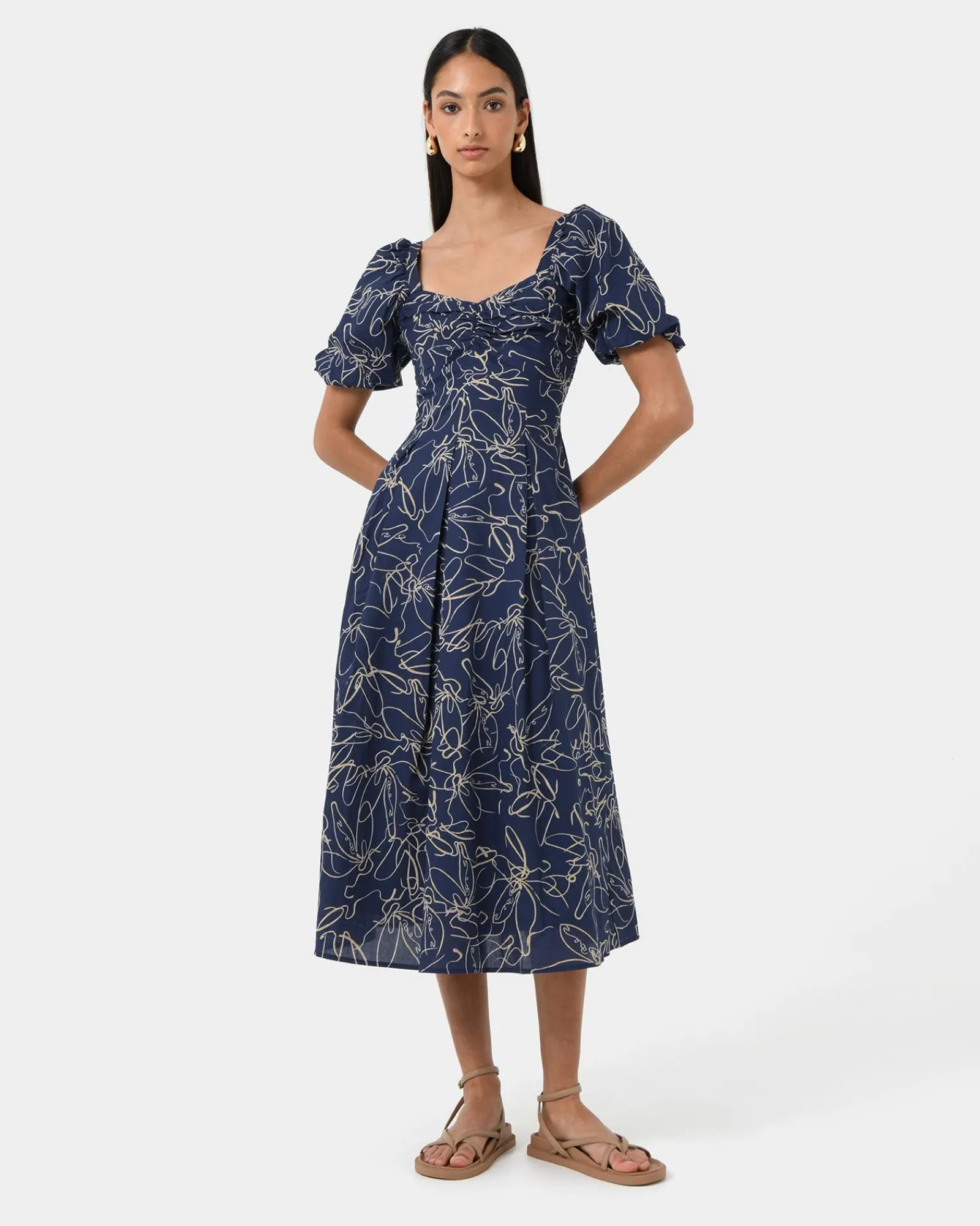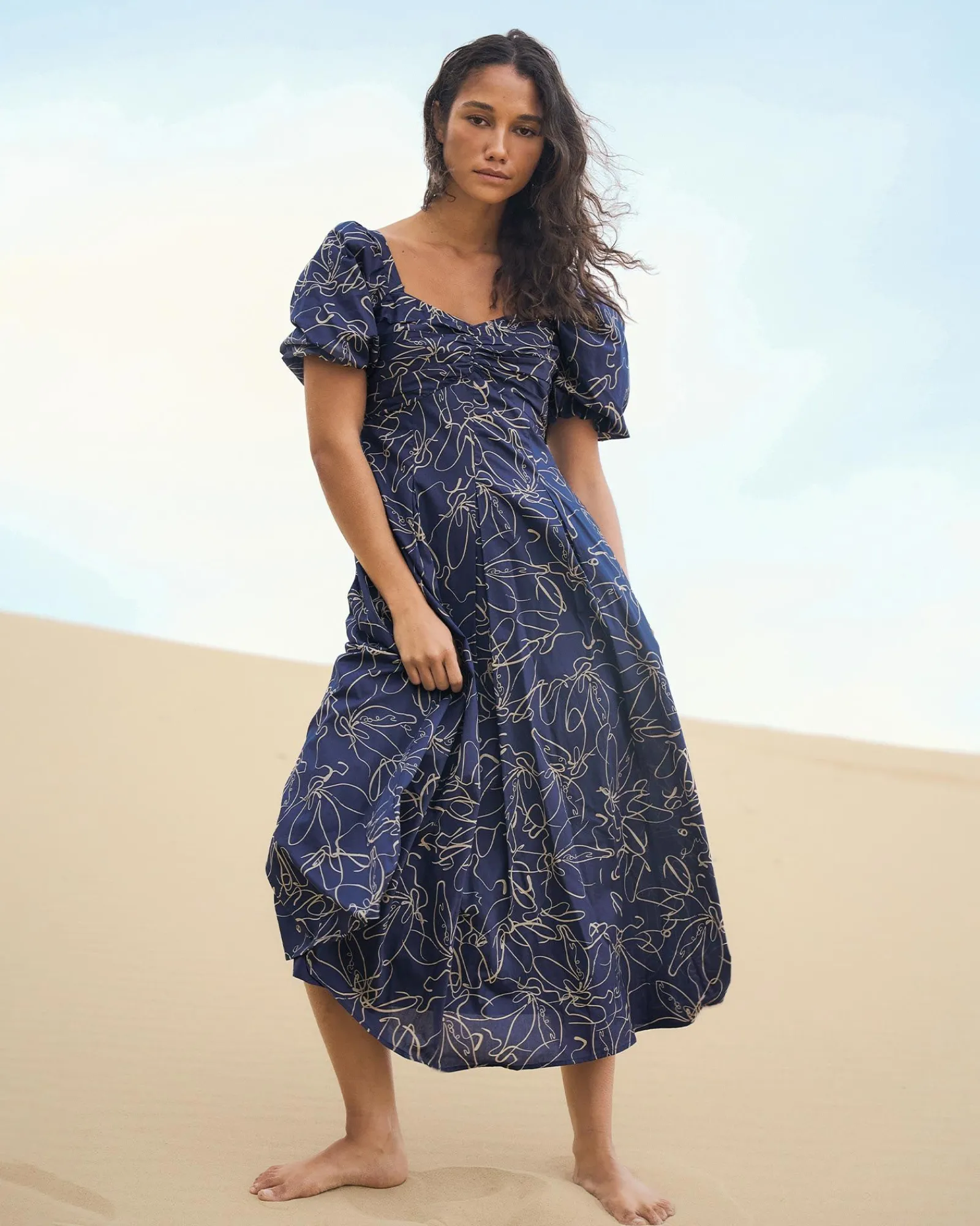 Introducing the Leen Puff Sleeve Midi Dress—a perfect blend of elegance and coastal charm. Featuring airy puff sleeves and a flattering silhouette, this summer dress transitions seamlessly from day to night, blending modern style with coastal charm.