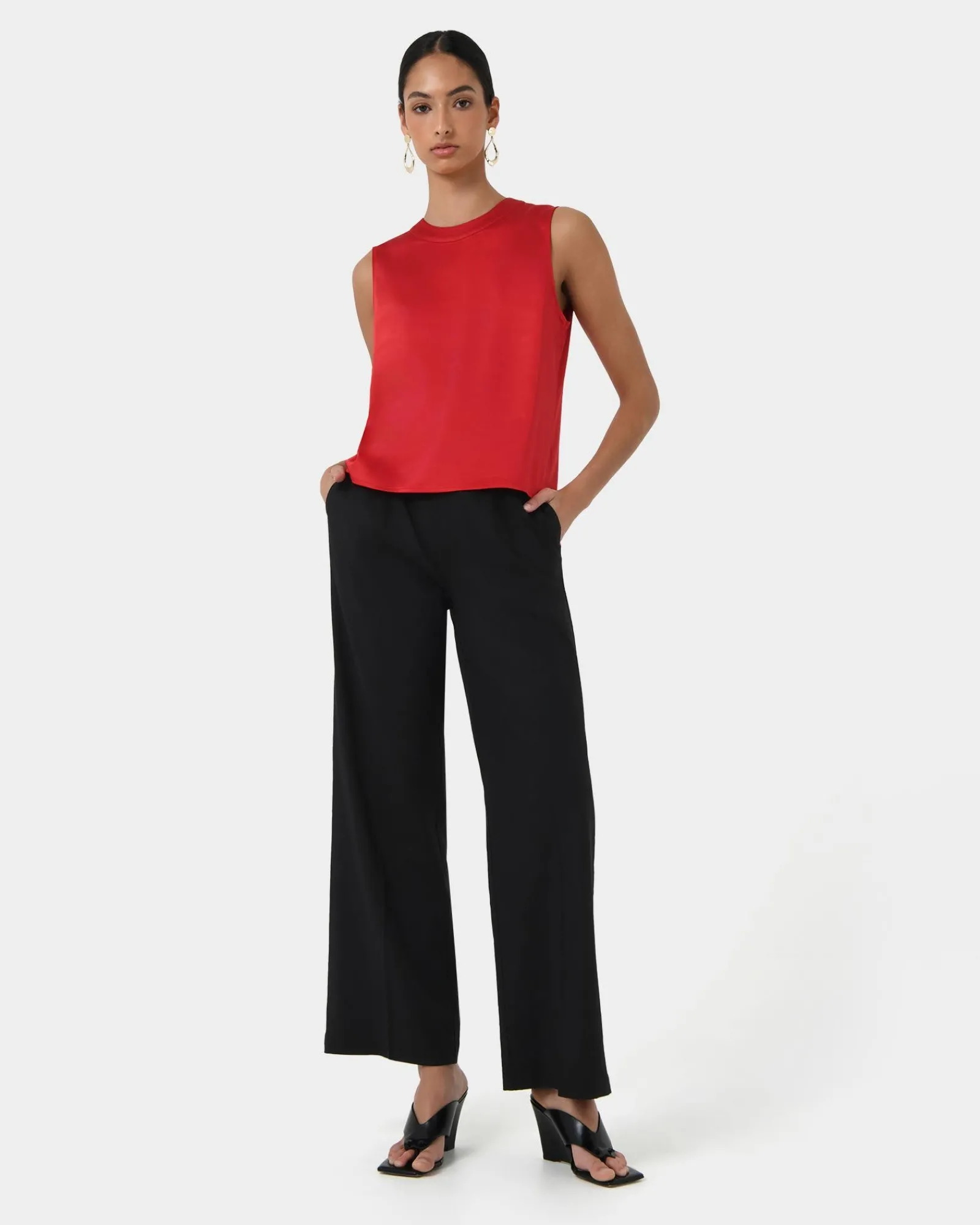 This sleek Louisa Round Neck Satin Top crafted from satin for a touch of effortless elegance. Features a classic crew neckline and a straight hemline, making it a versatile piece that can be dressed up or down. Dress it up with tailored trousers and heels or keep it casual with denim and flats.