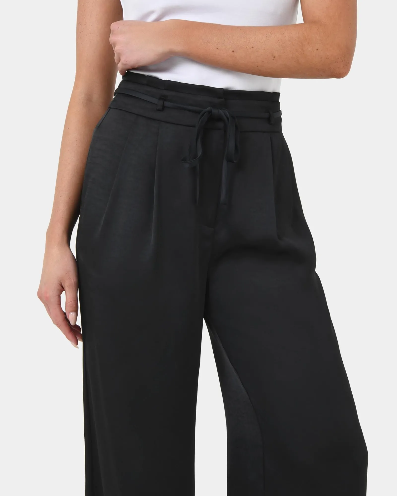 Elevate your everyday style with the Louisa Wide Leg Satin Pants, featuring a paper bag waist and a wide leg silhouette. These pants combine comfort and sophistication, making them ideal for both casual outings and evening events. Pair with a sleek blouse for an effortless chic look.