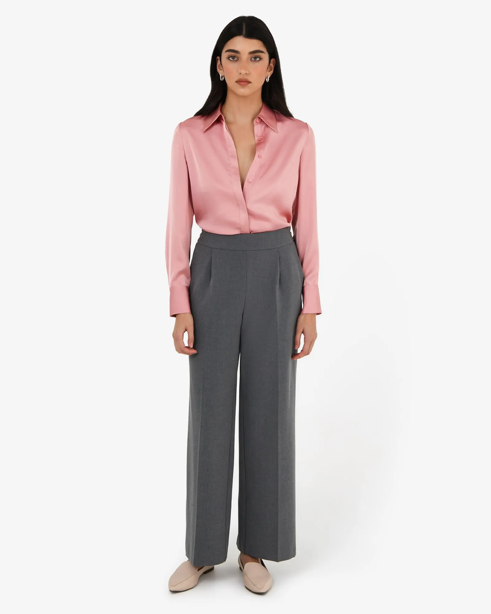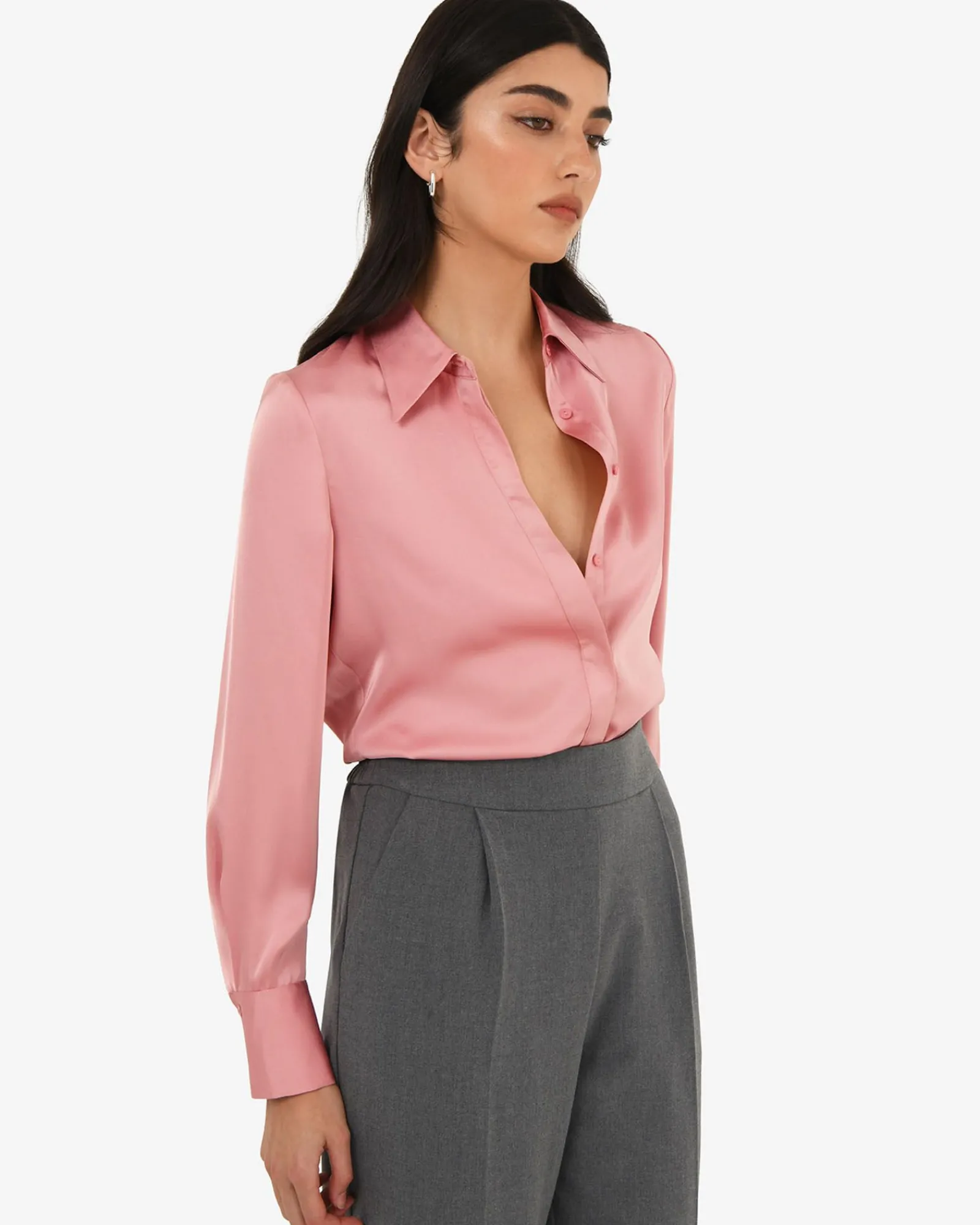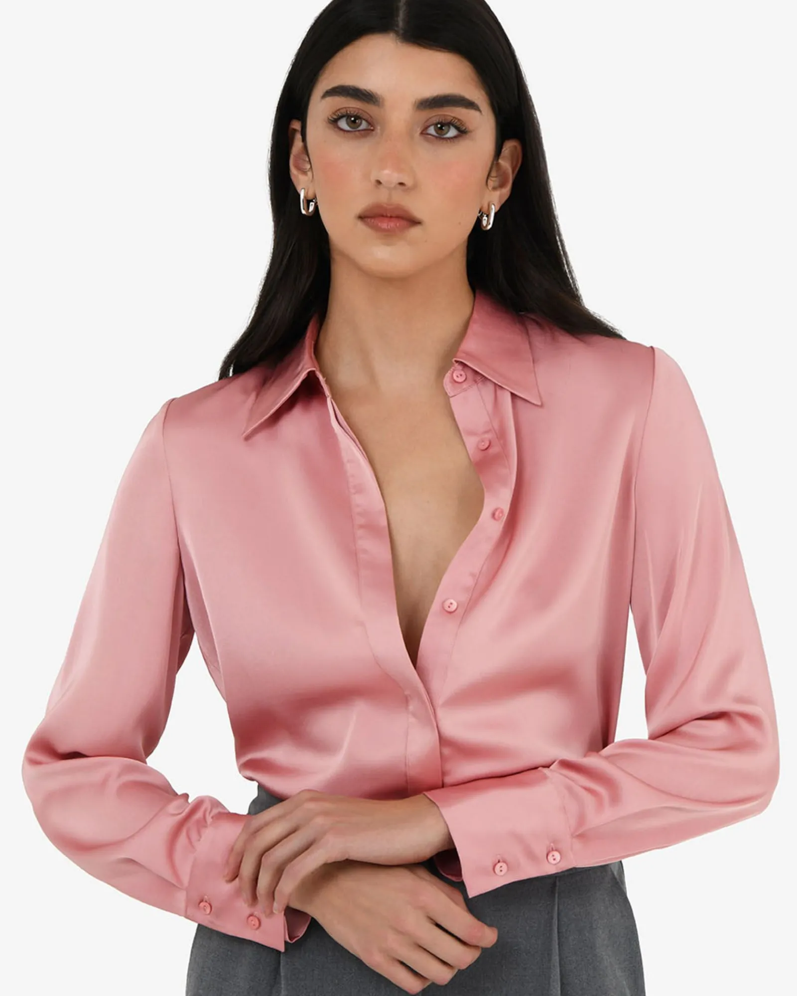 The Mae Satin Shirt is the satin shirt to invest in for your capsule wardrobe. Discover a newfound effortless elegance with Mae’s smooth satin finish and relaxed fit. This shirt adds a touch of luxe to any look. Perfect for day or night, it’s a versatile wardrobe staple that shines in every setting.