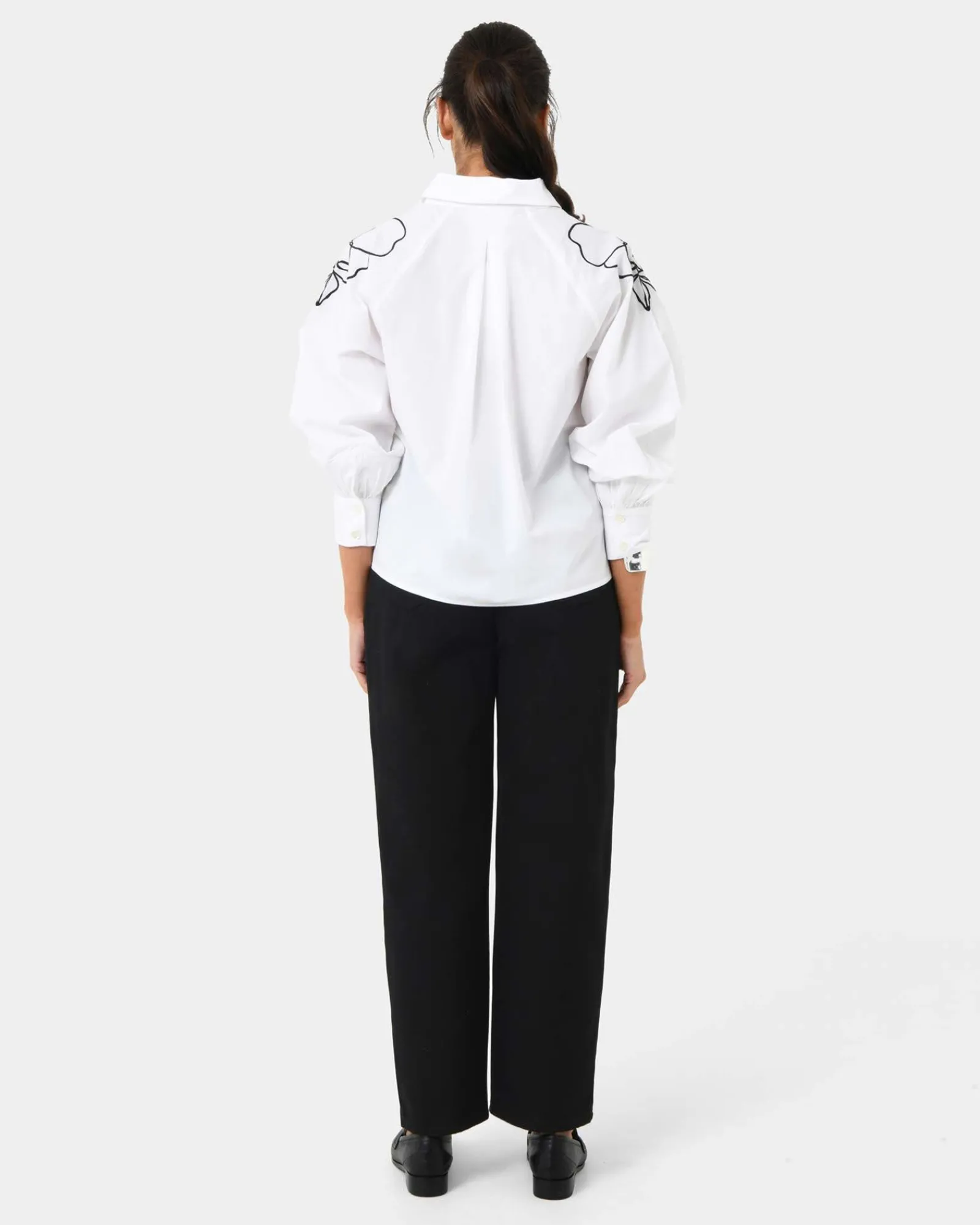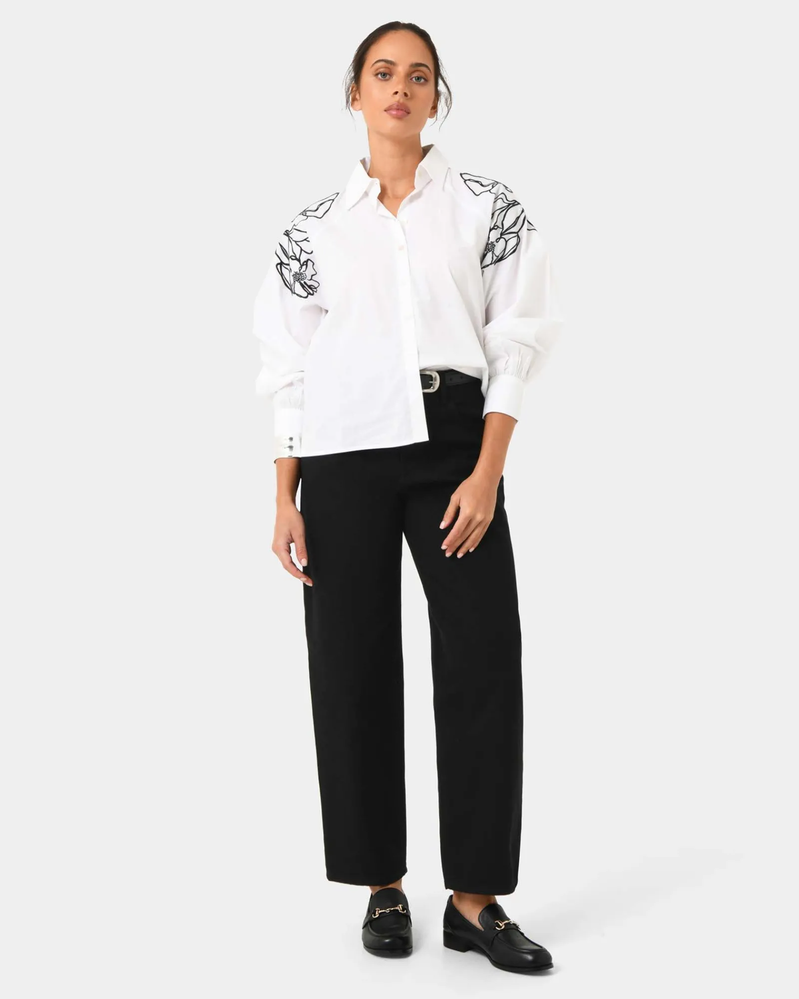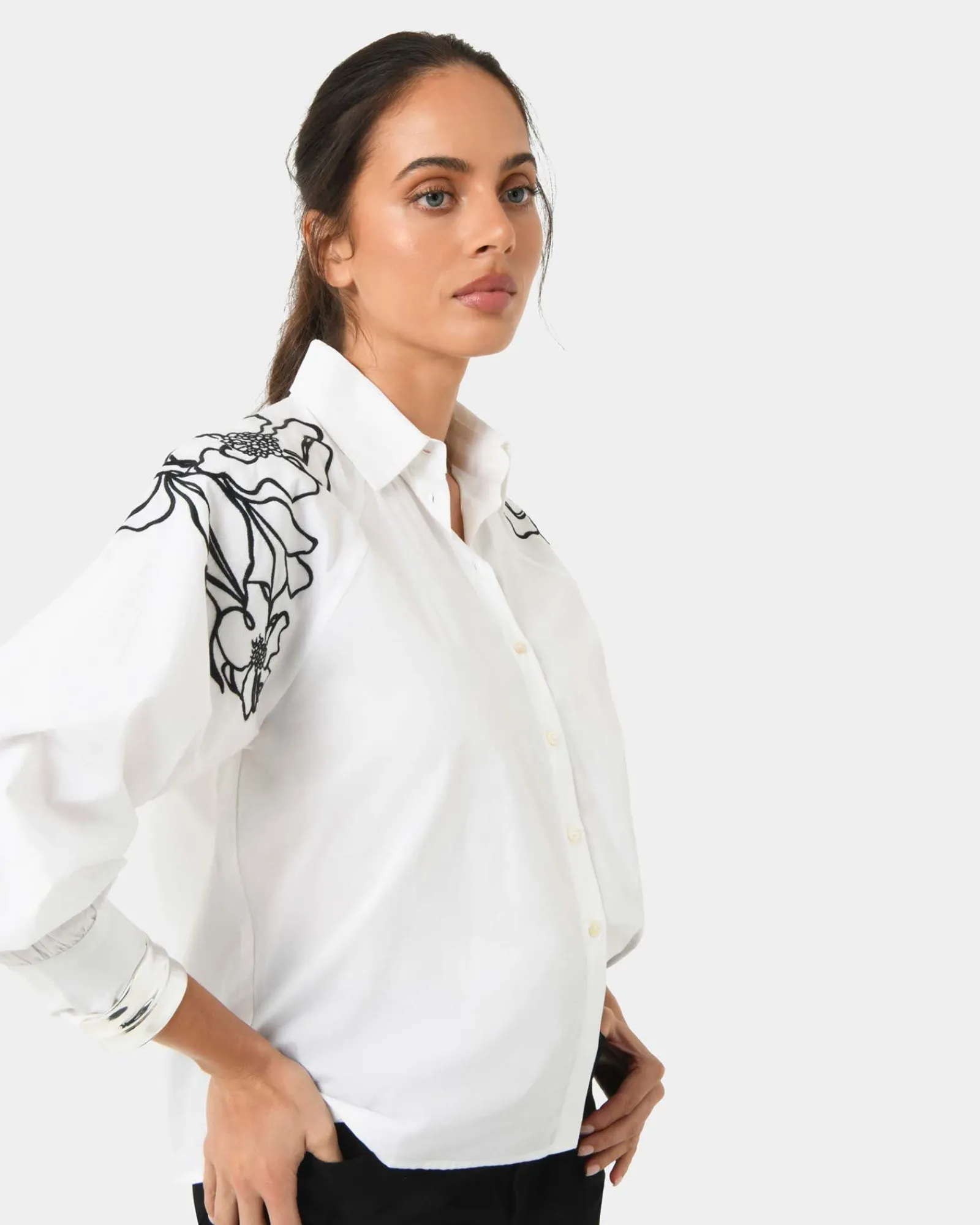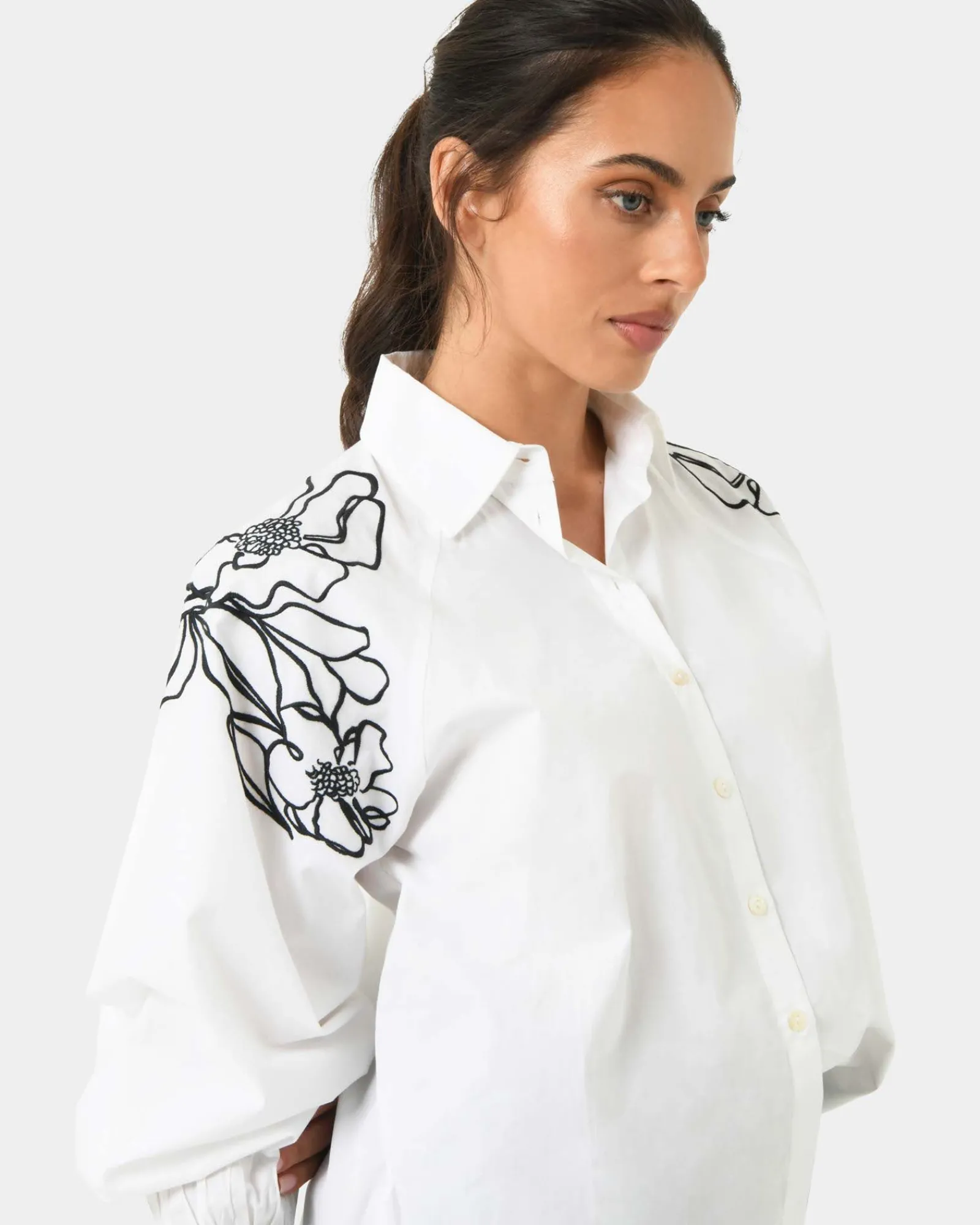 Timeless, breathable, and beautifully detailed, the Maren Embroidered Cotton Shirt is made from 100% soft, airy cotton for all-day comfort with a slightly relaxed fit. It features floral embroidery, a button-down front, long sleeves and button cuffs. This classic white shirt effortlessly pairs with both casual and dressy looks.