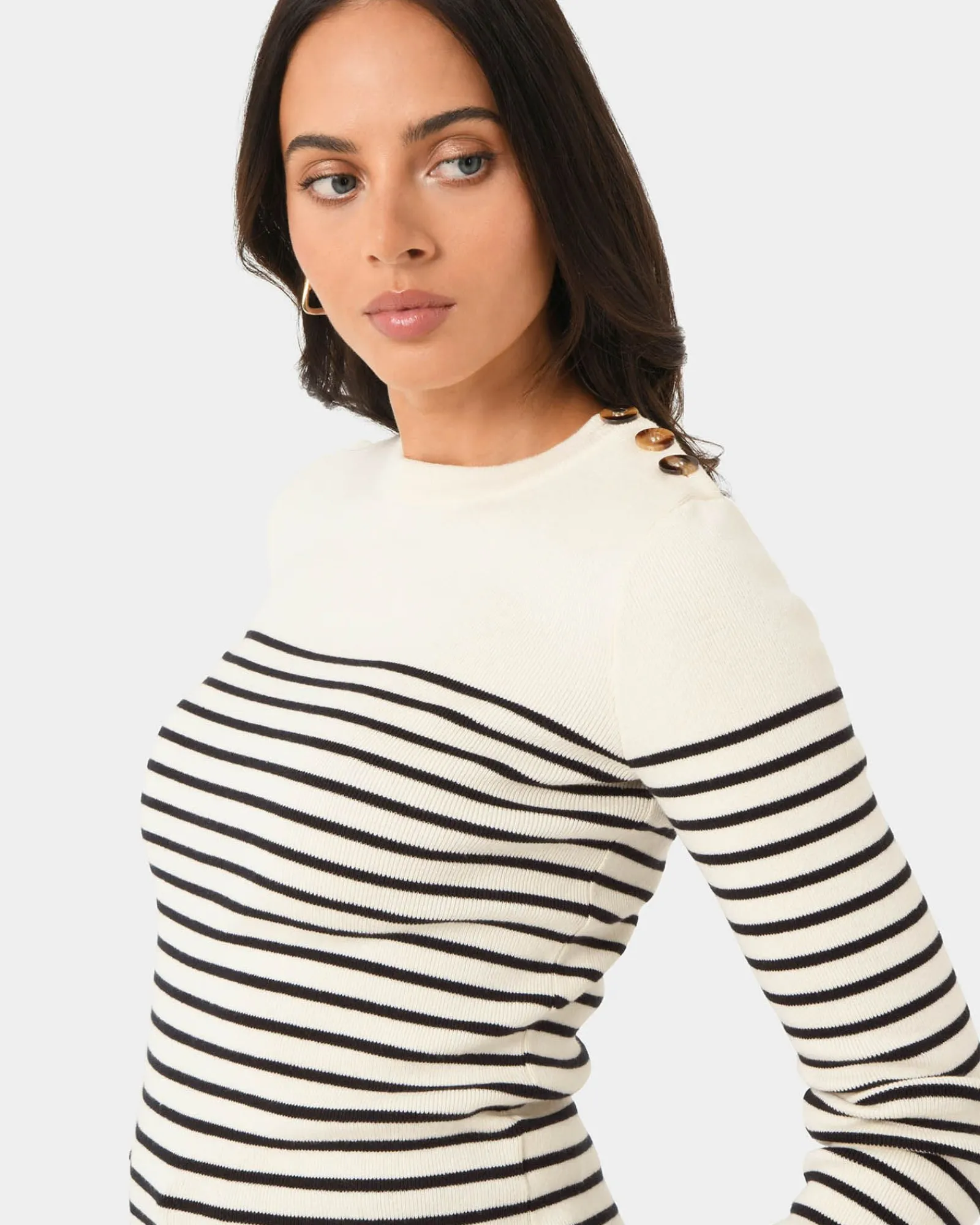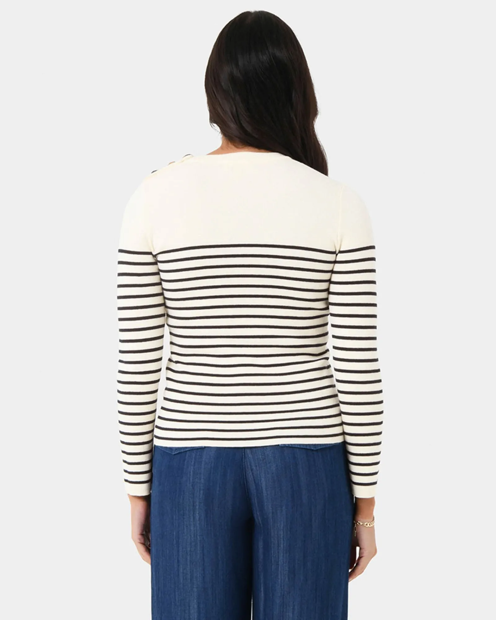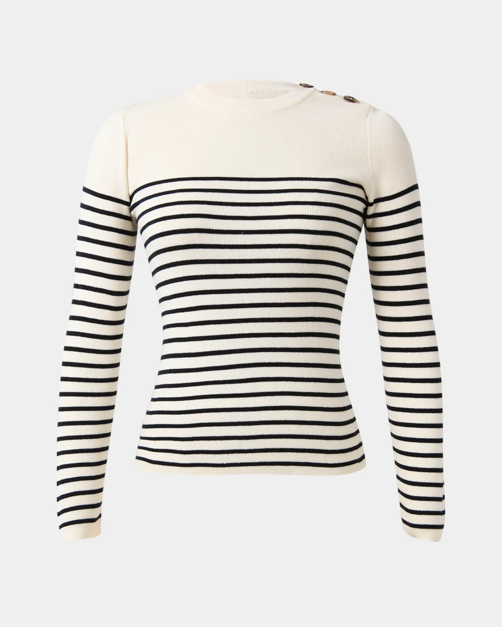Timeless and chic essential, the Margot Long Sleeve Knit is a must-have staple. Made from a soft cotton blend, it features a classic crew neckline and long sleeves for a comfortable feel. The striped details is nautical inspired, while the functional buttons on the left shoulder offer a subtle stylish accent to the top.