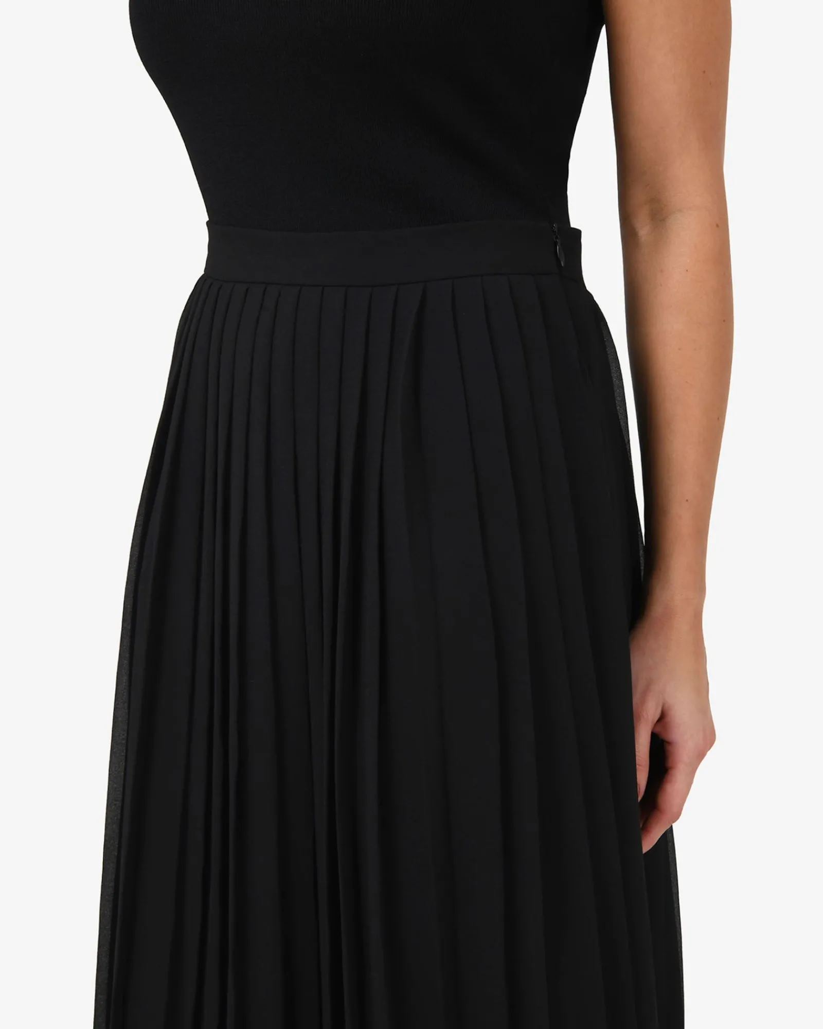 - Knife pleated, volumised skirt
