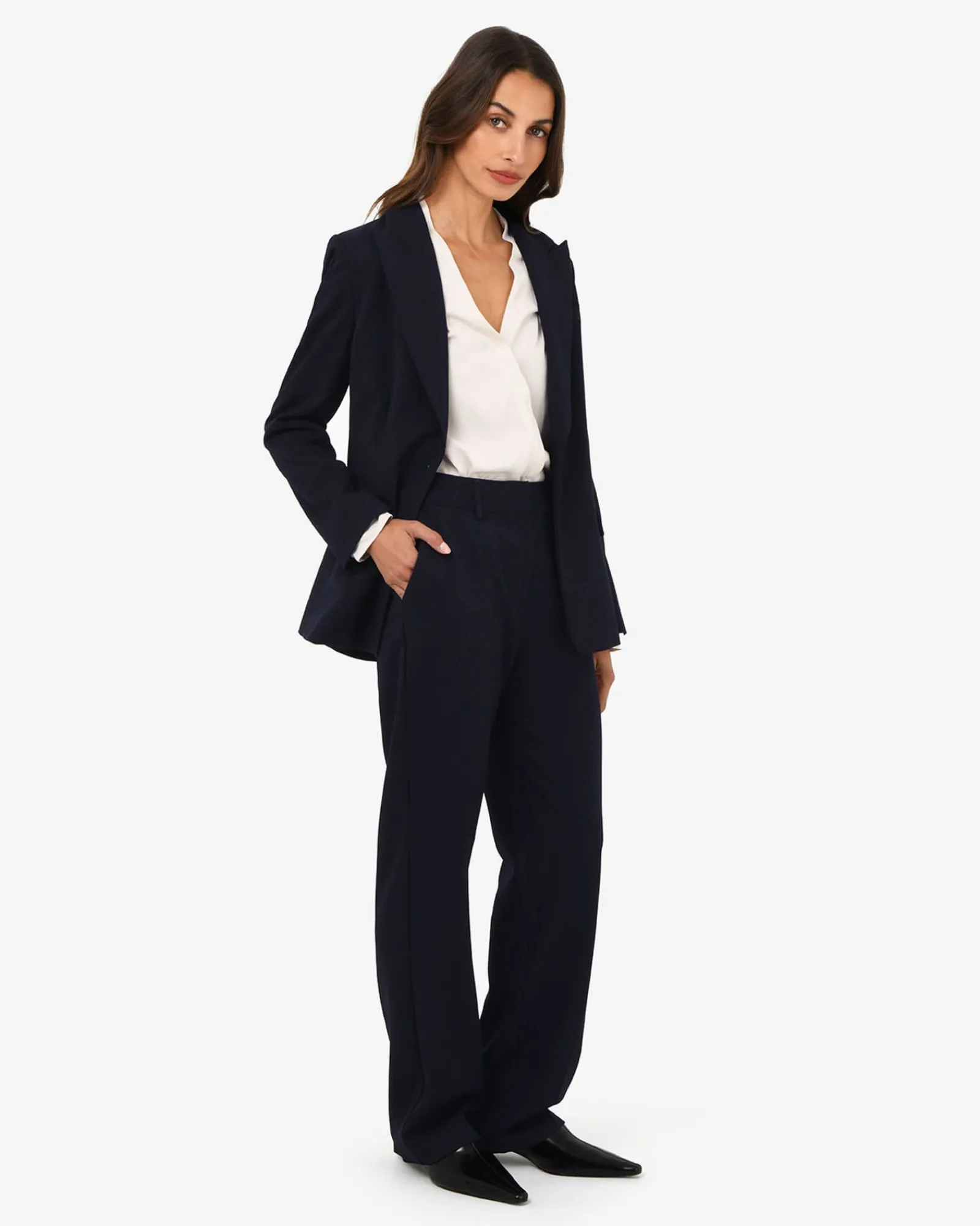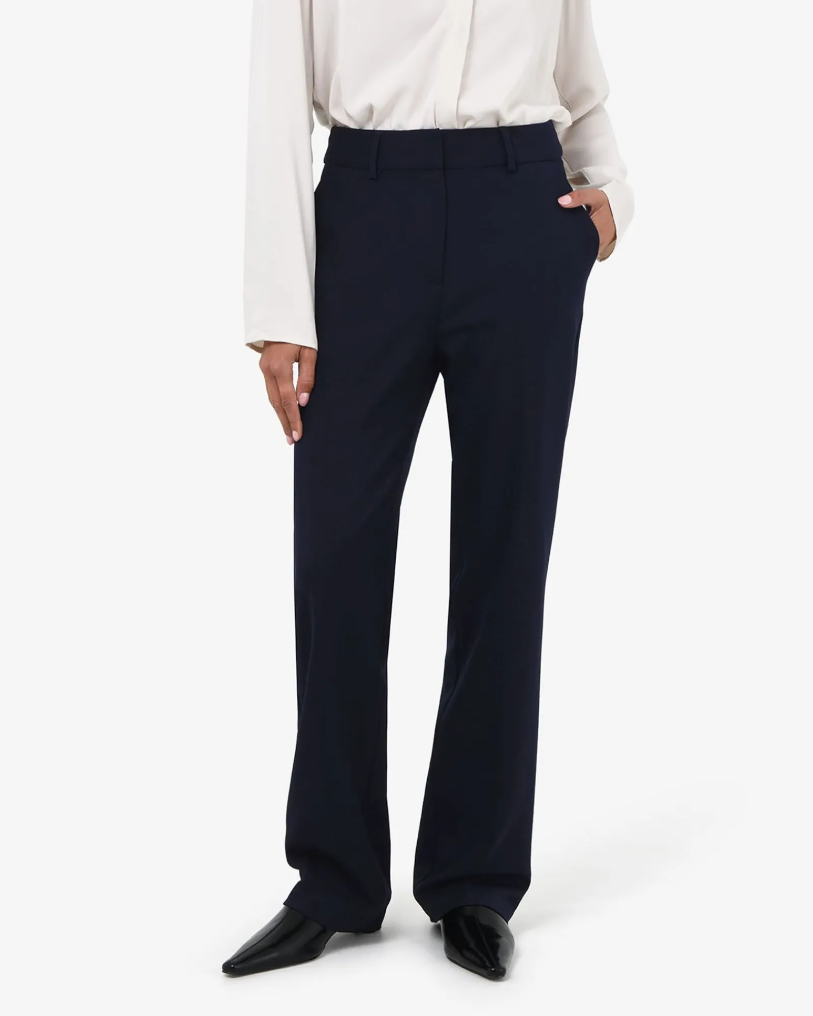Smart and sleek, your everyday power pants. The Merid Tailored Pants bring ease to professional dressing with a clean, straight-leg silhouette structured feel. Featuring a fixed waistband, belt loops, and functional pockets, pair them with the matching Merid Double Breasted Blazer for a sharp set, or dress them down with a relaxed knit and loafers for effortless weekday style.