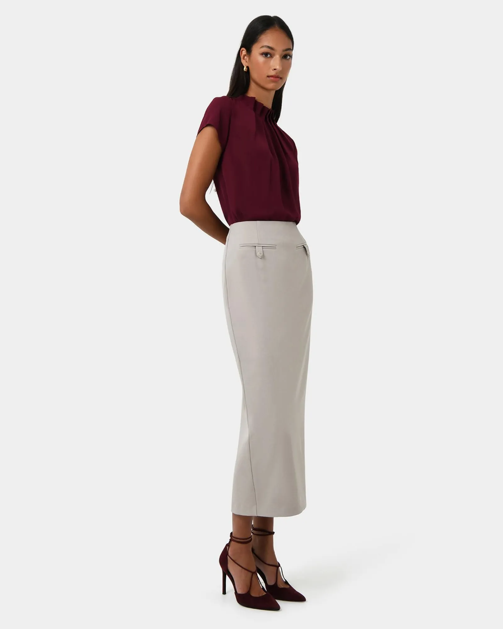 The Mila Column Midi Skirt is the perfect work skirt for your capsule collection. Designed to flatter your figure with its sleek column silhouette and midi length, the Mila features two front pocket details, with an invisible back zipper and a back vent split for ease of movement.