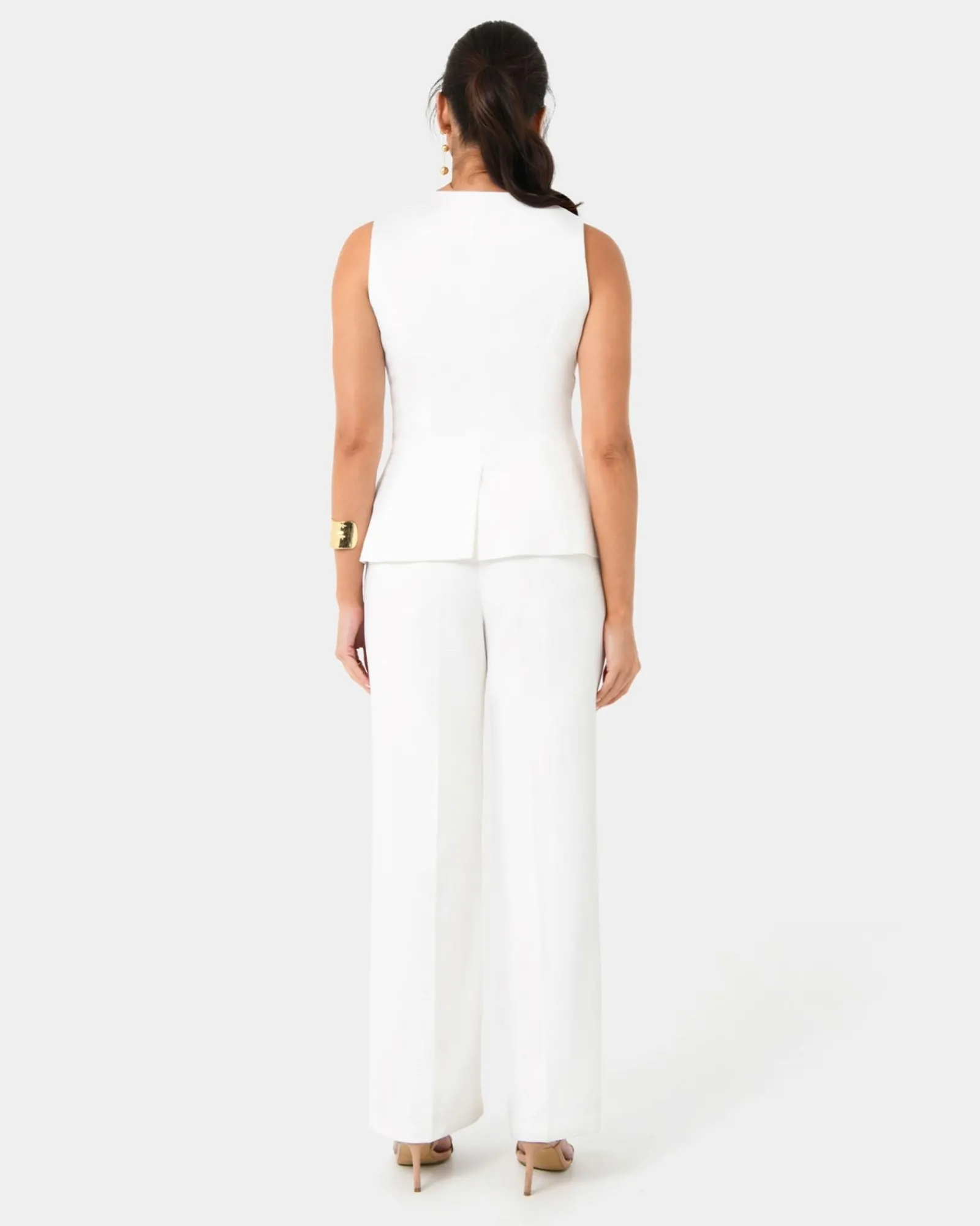 Stay sharp and stylish in this Nikki Longline Vest. Its tailored design and premium fabric make it perfect for work or casual outings. Complete the look by pairing it with the matching Nikki Tailored Wide Leg Pants.