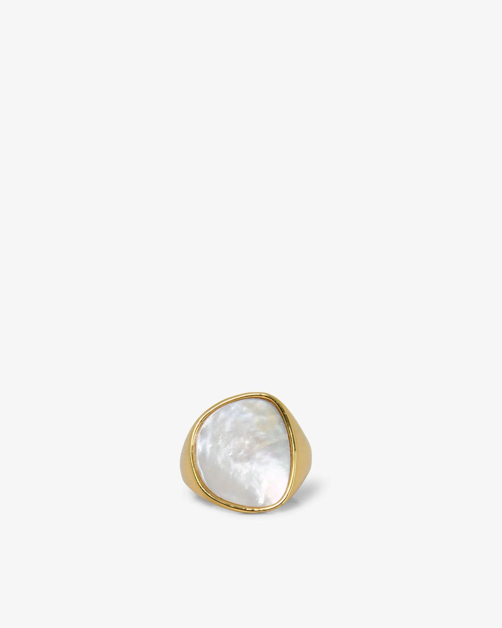 Make a striking impression with the Pearl Mirage Statement Ring. Centered around a large, oval-shaped pearl, this adjustable open-back ring combines bold elegance with effortless wearability, making it a versatile addition to any jewelry collection.