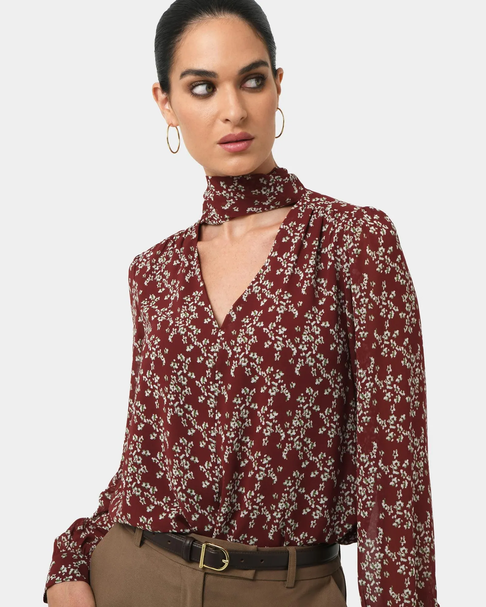 The Rema Floral Tie Blouse featuring a delicate floral print and a flattering tie neckline. Dress it up with tailored pants or keep it casual with denim, either way, you’re blooming with style.