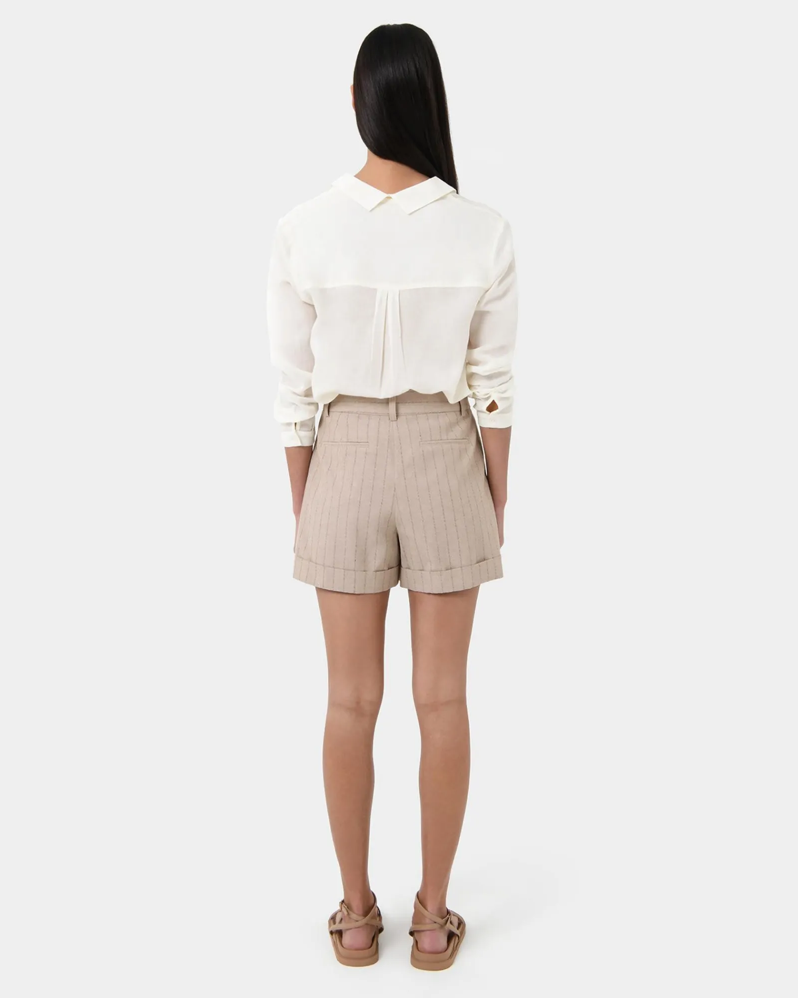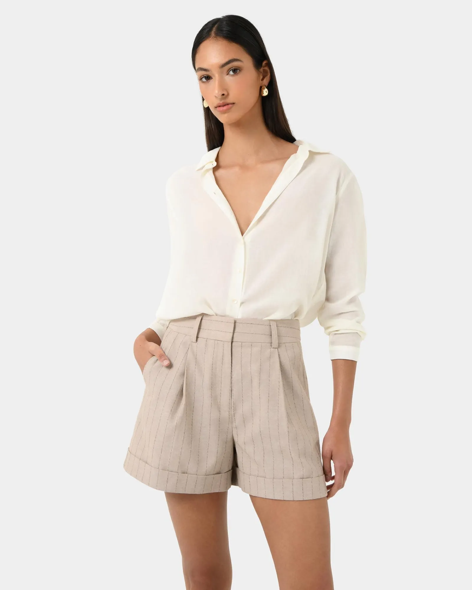 Stay cool and polished in the Ria Stripe Cotton Shorts. The perfect combination of casual comfort and chic stripes, these shorts are your summer essential. Pair them with the matching vest or jacket for a fresh, put-together look.