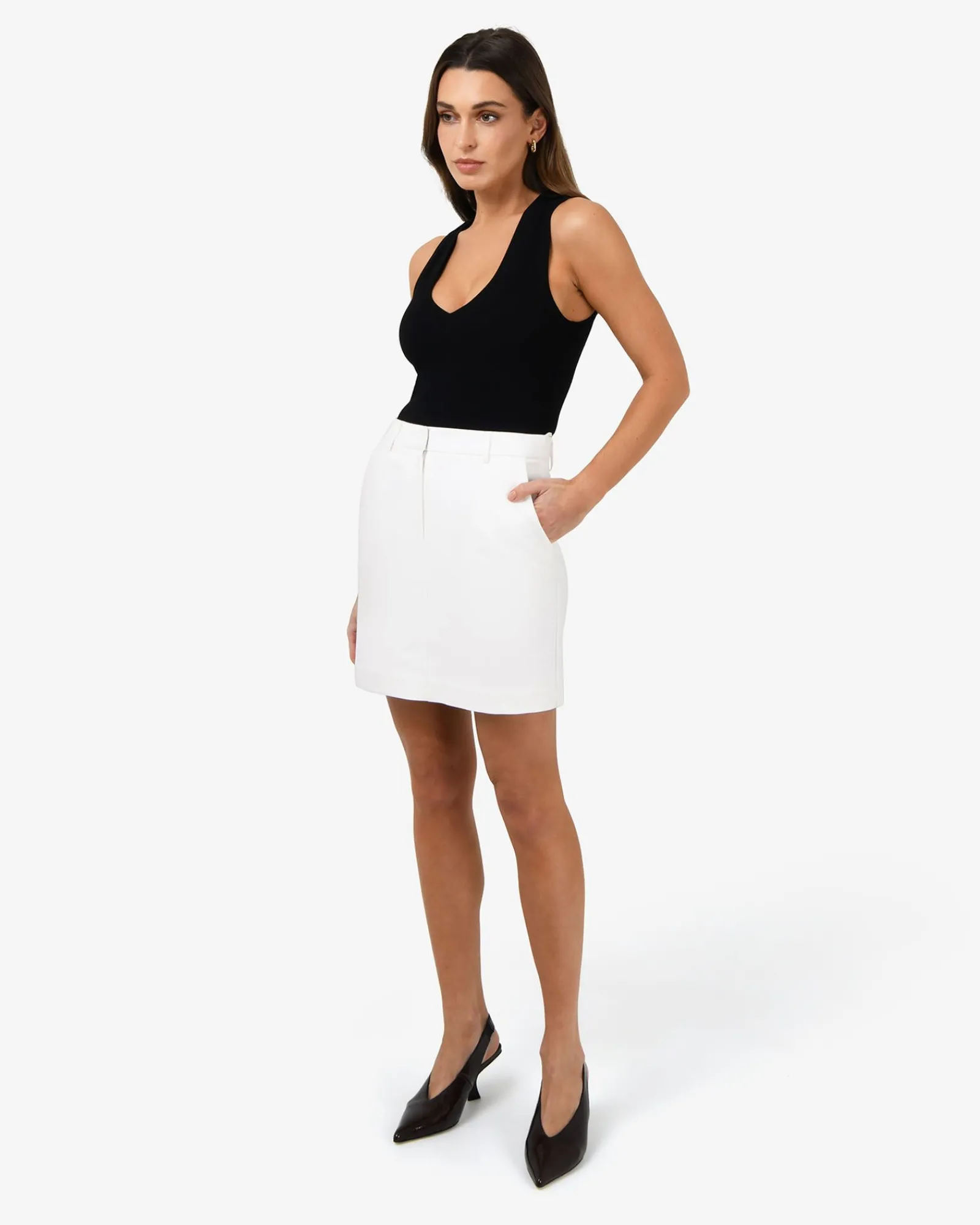 Effortlessly chic, the Safira Mini Skirt is a must-have for modern style. With a sleek, minimalist design, this high-waisted mini skirt is perfect for any occasion.