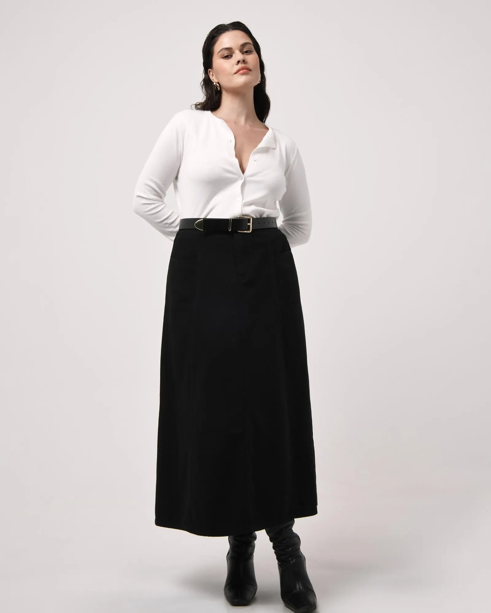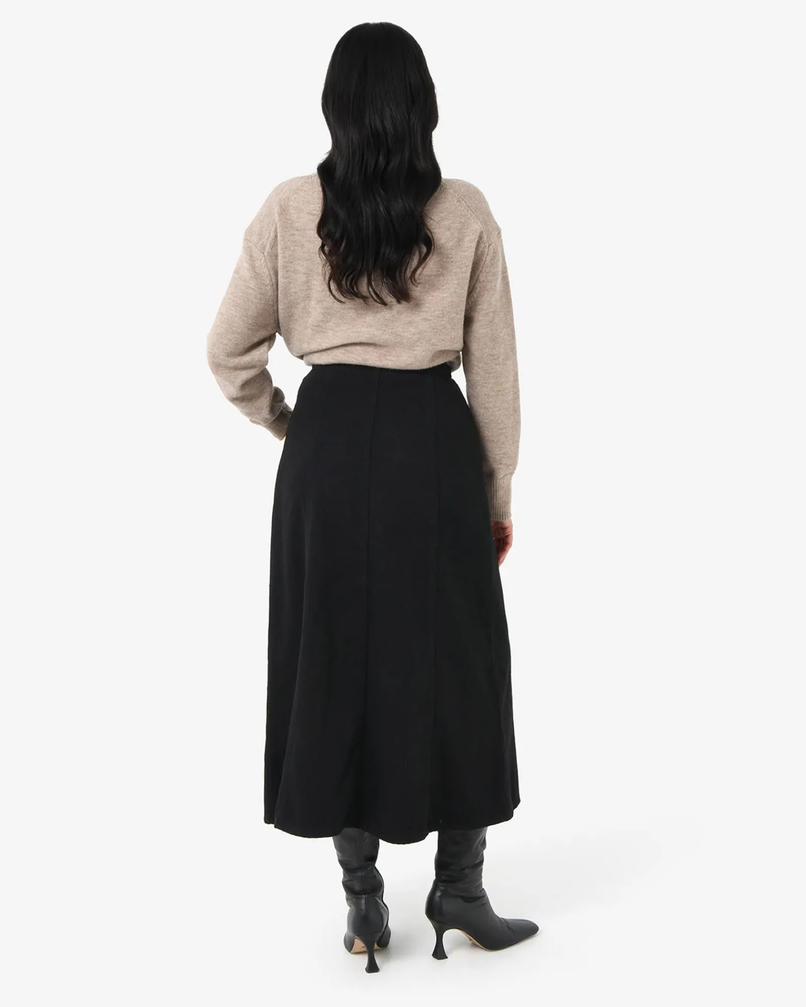 - Midi length A-line silhouette skirt