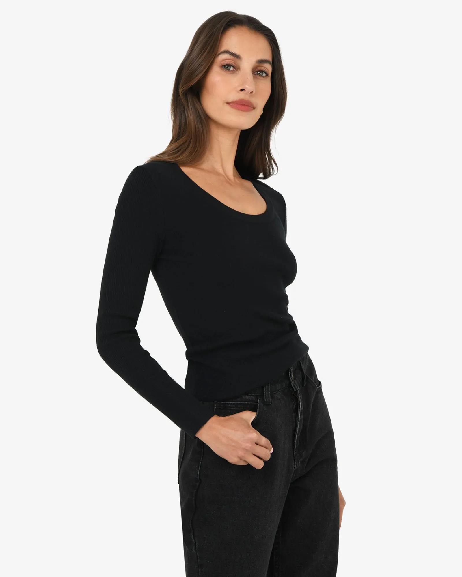 A foundation piece with quiet confidence, the Samira Scoop Neck Knit is an elevated essential for cool weather layering and beyond. With a scoop neckline and ribbed long sleeves, it is versatile for workdays, weekends, and everything in between.