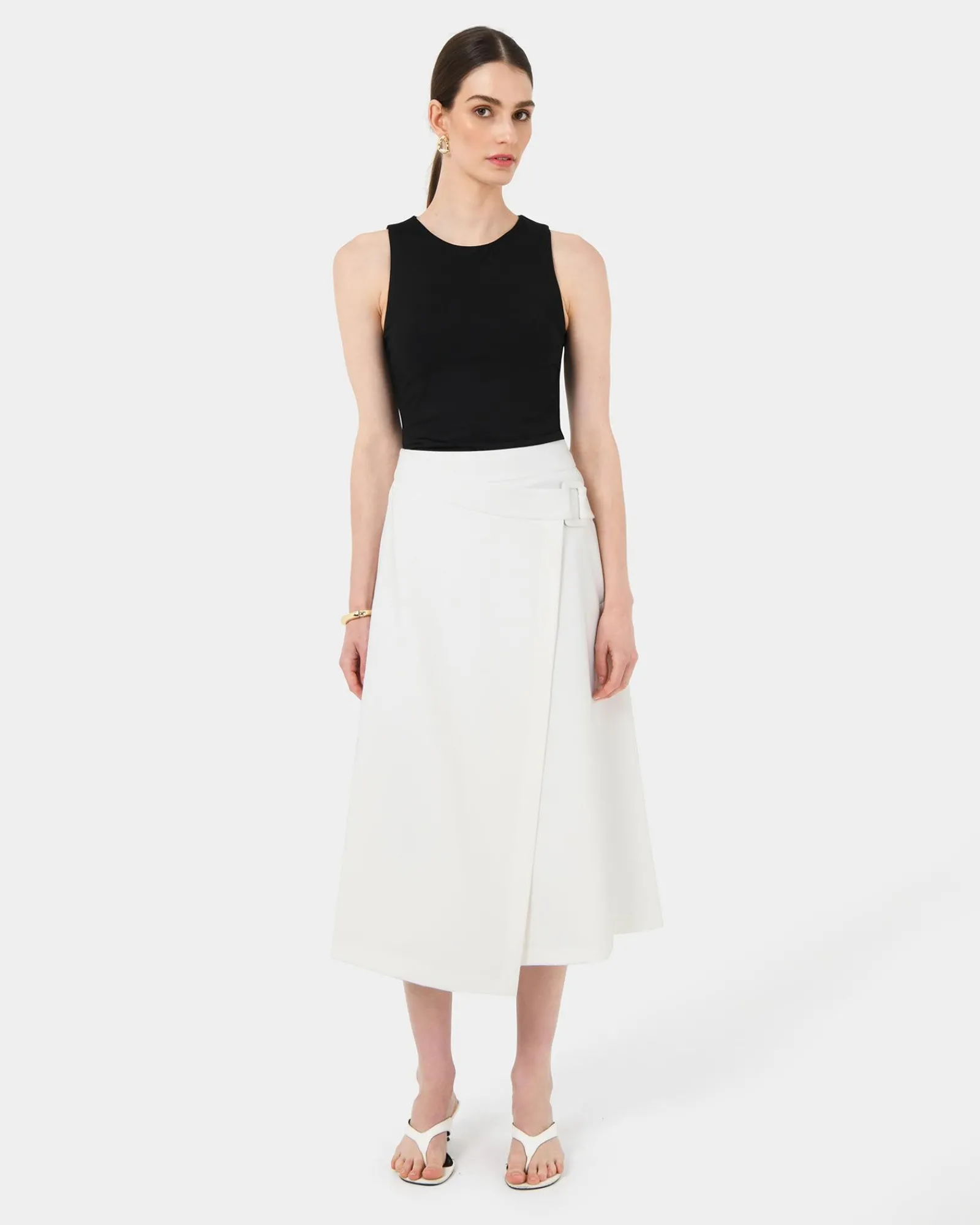 Gracefully chic, the Sofia Wrap Midi Skirt blends style with a polished touch. Softly structured and flattering, its midi length is the perfect balance between relaxed and elegant, making it ideal for a variety of occasions.