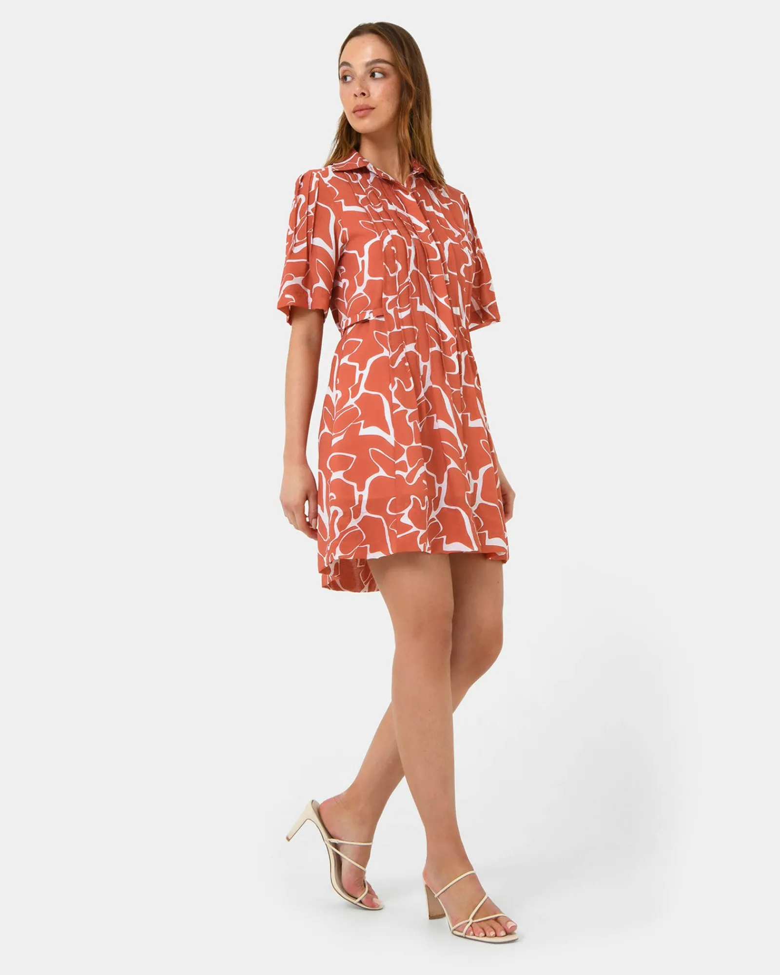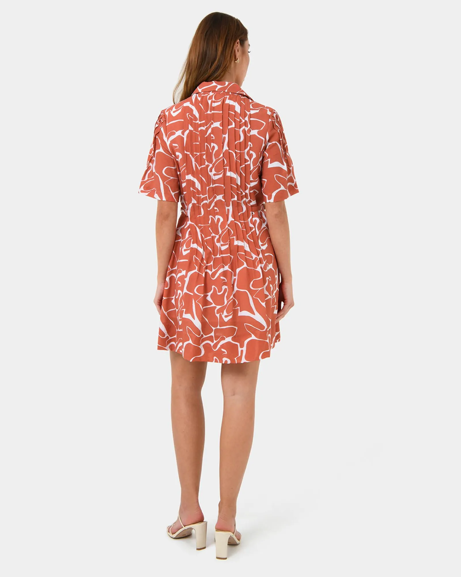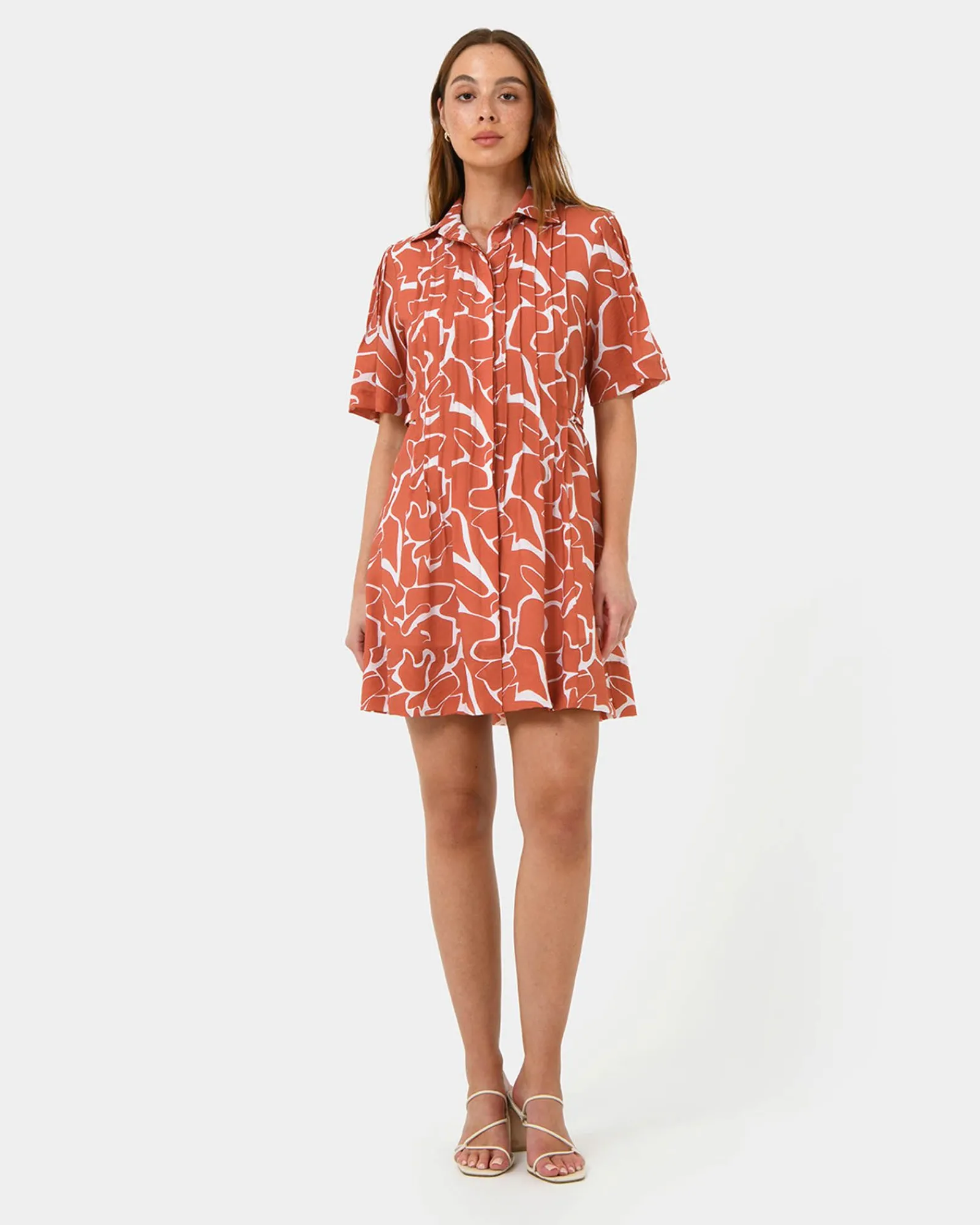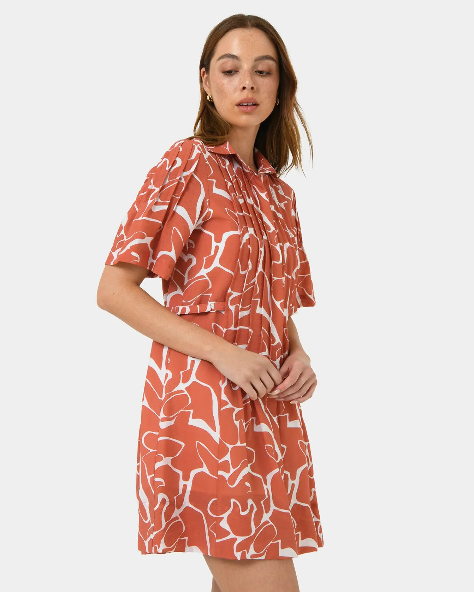 Make a statement with the Sunshine Pleated Dress. The flowing pleats add movement and grace, while the vibrant coral print brings a pop of color to your wardrobe. This dress is perfect for summer events or a sunny day out, offering a radiant and feminine look.