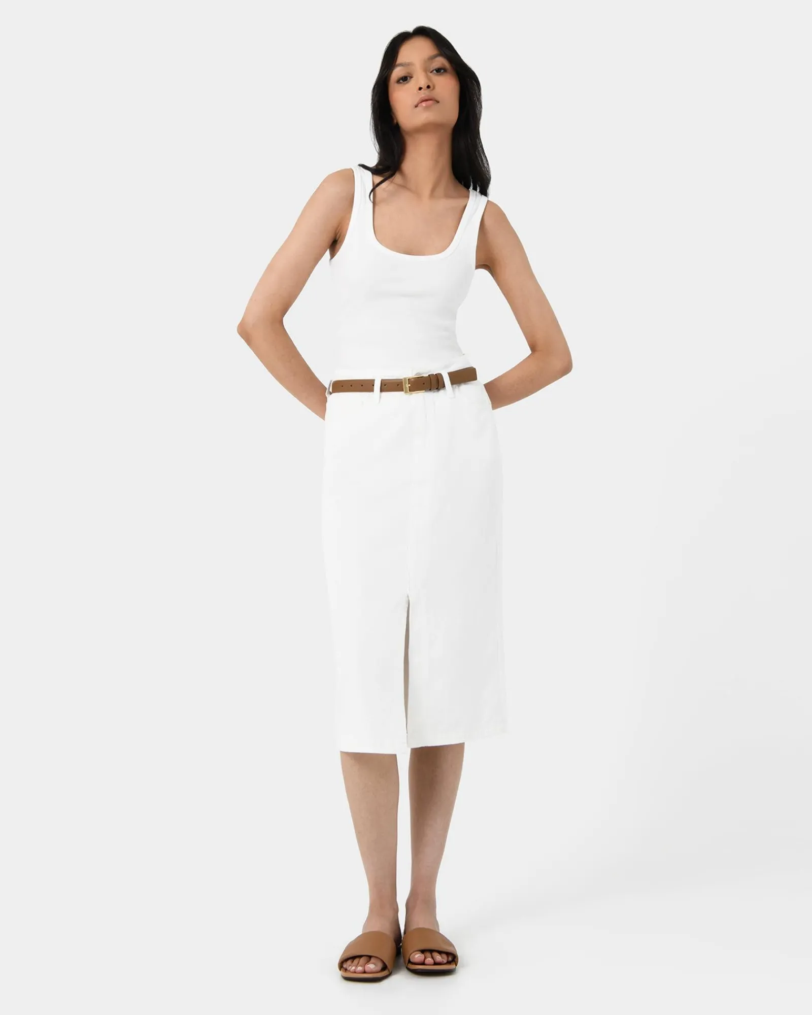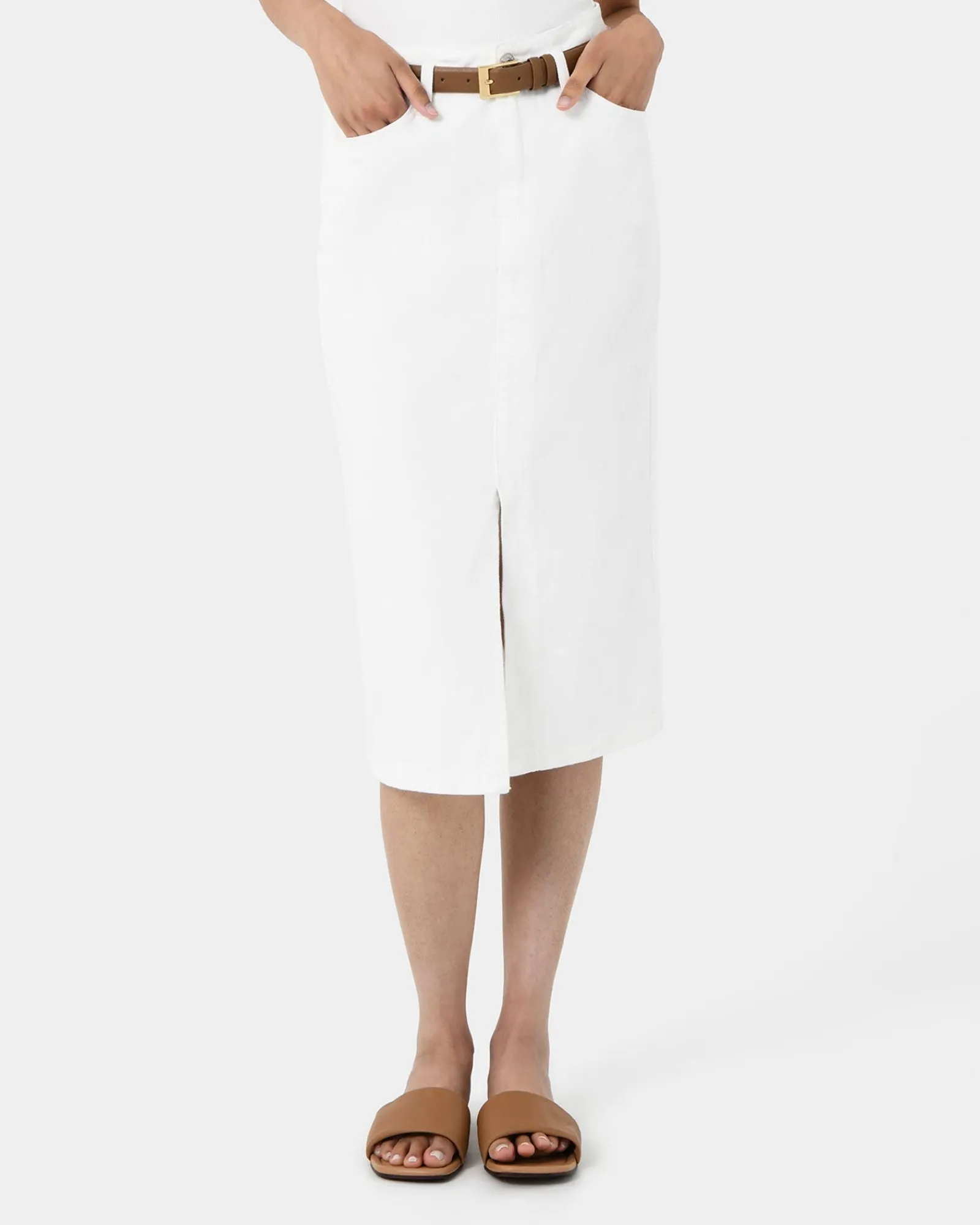 Look effortlessly chic in the Veronique Midi Denim Skirt. This simple and modern design is versatile and perfect for a casual day-to-night outing.